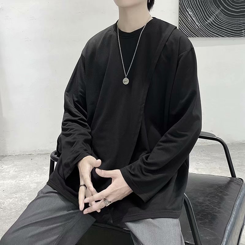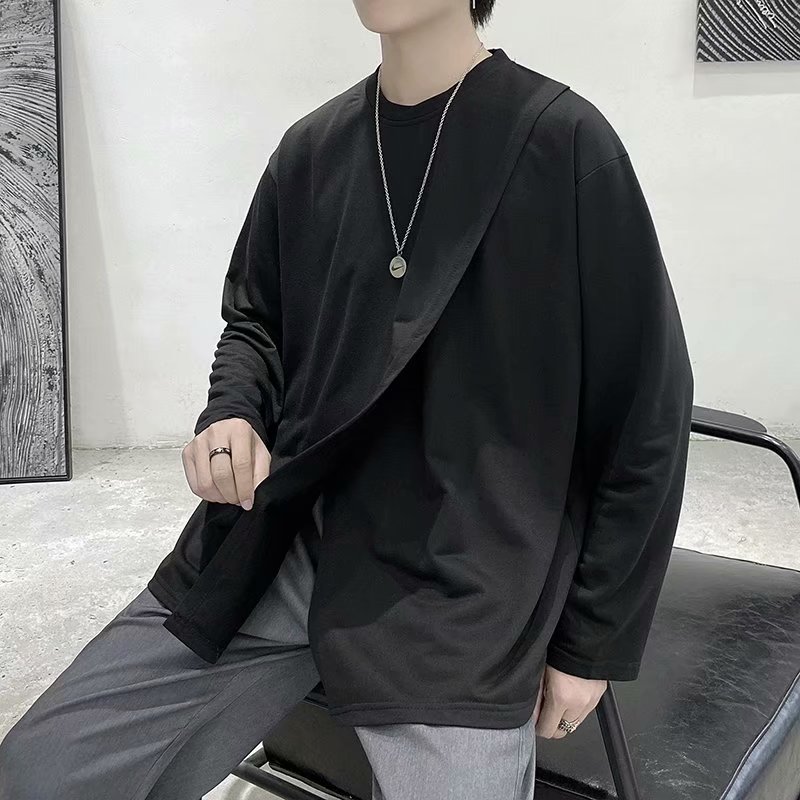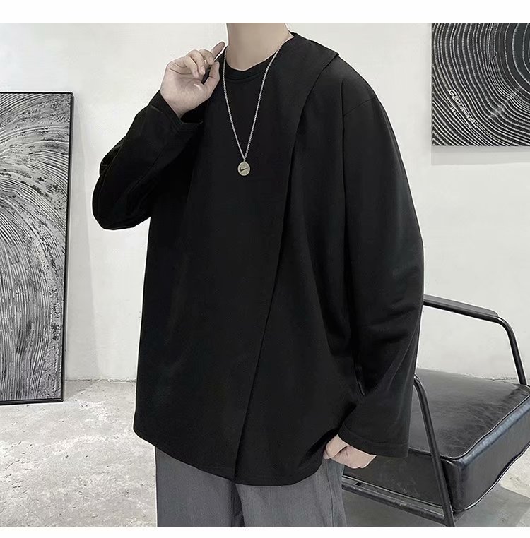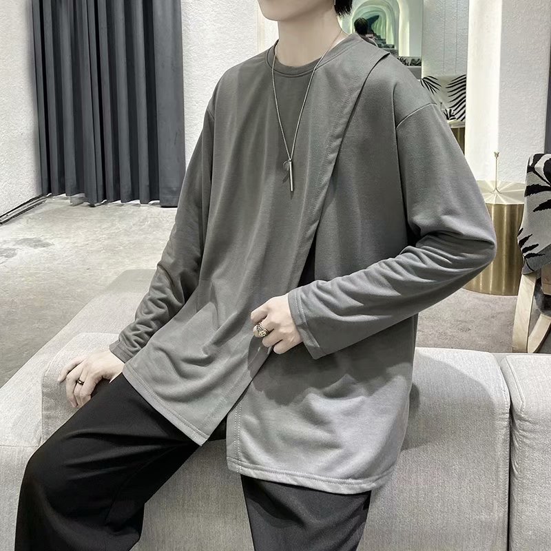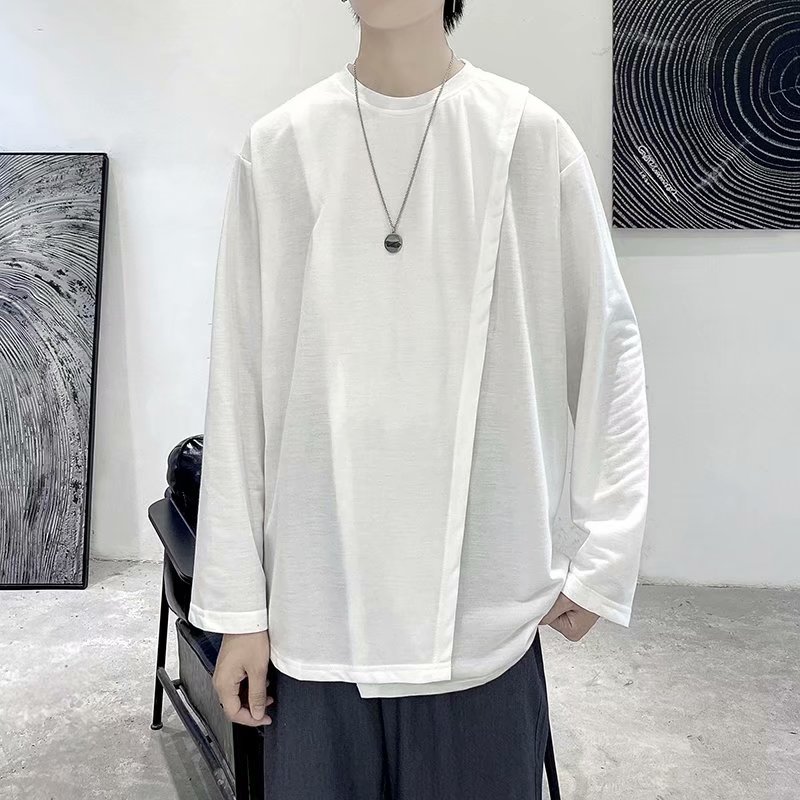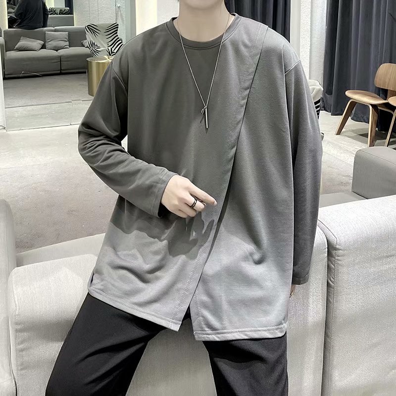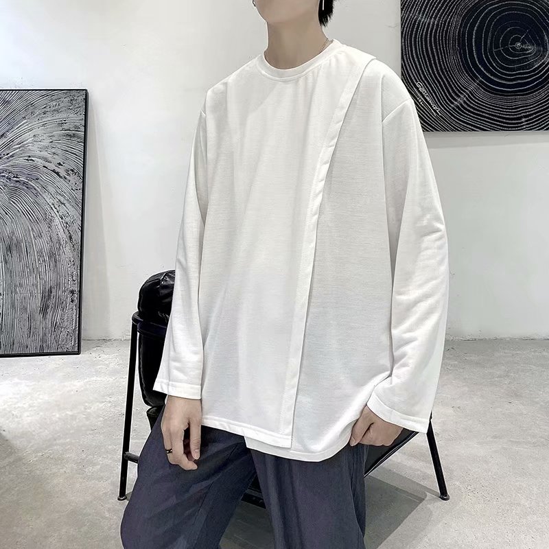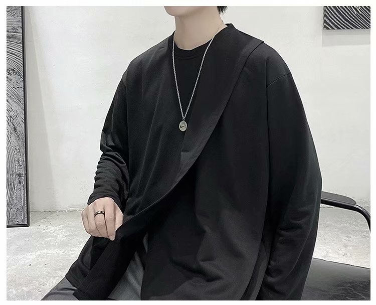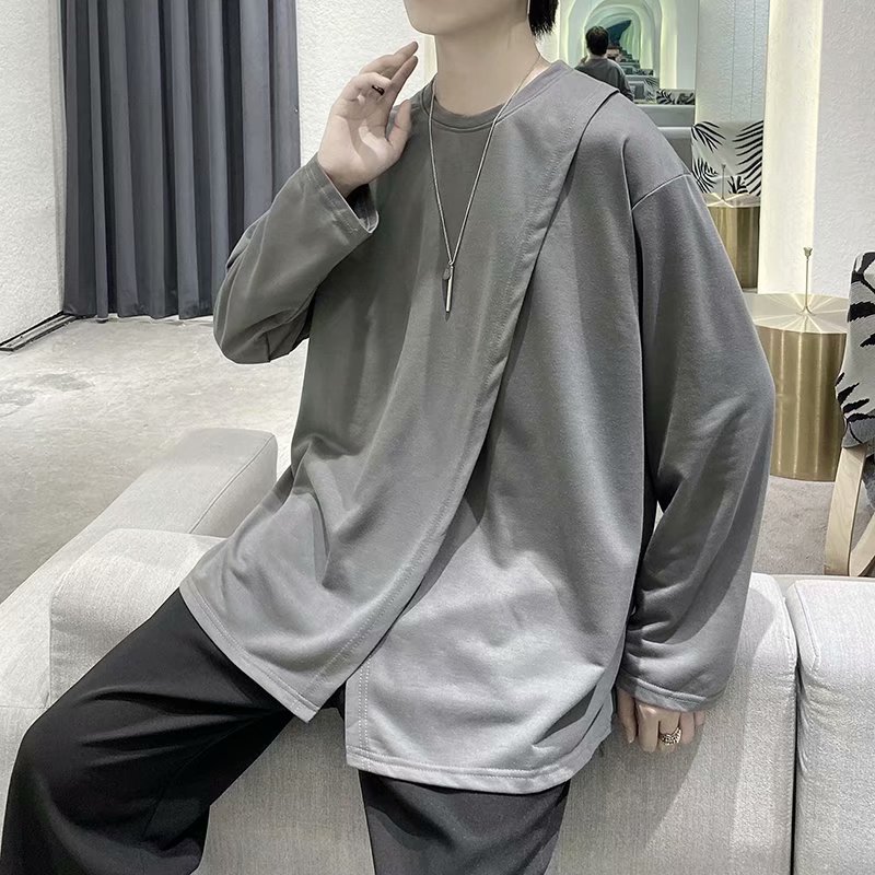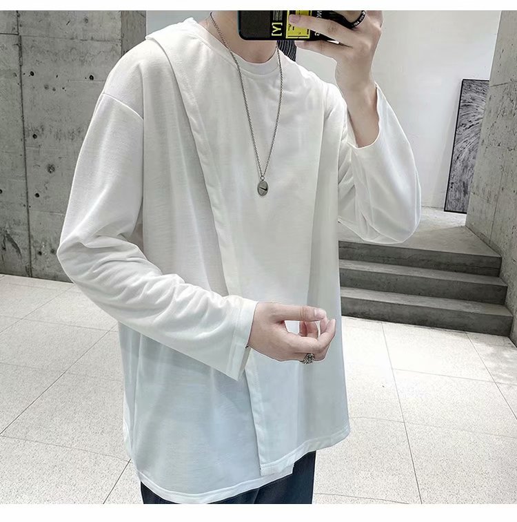 实拍 韩版潮流宽松百搭上衣港风街头复古纯色学生T恤圆领男