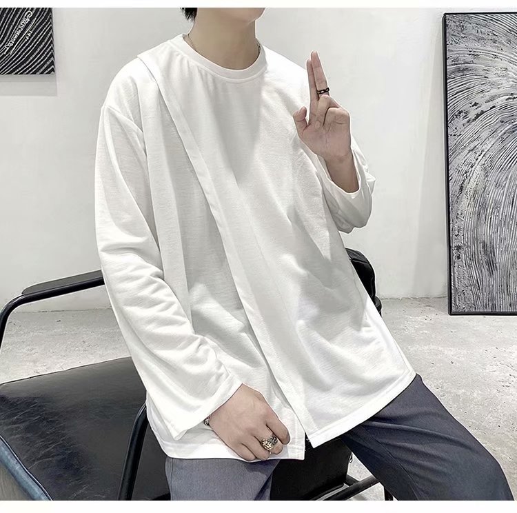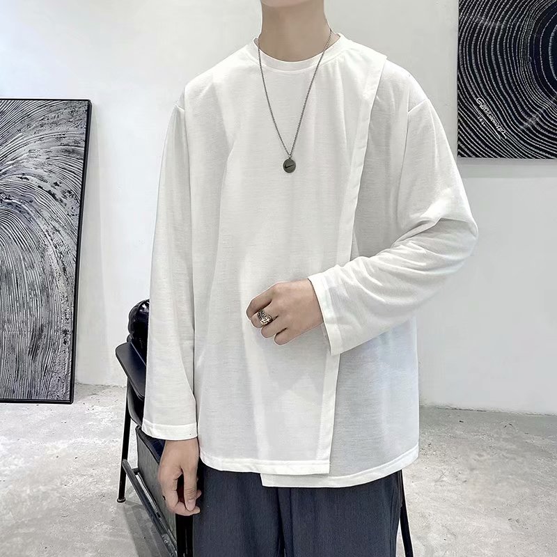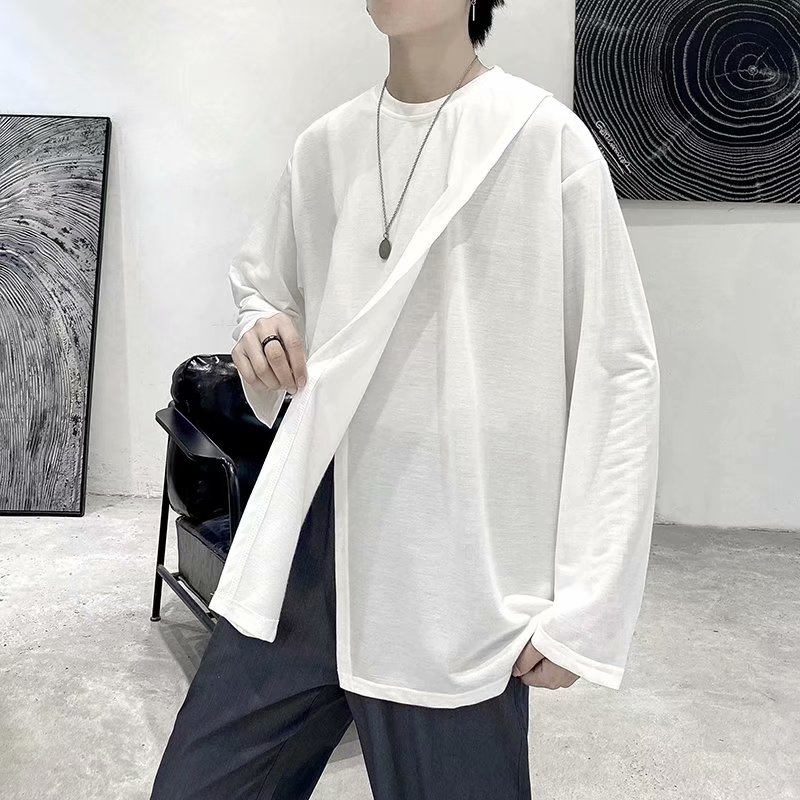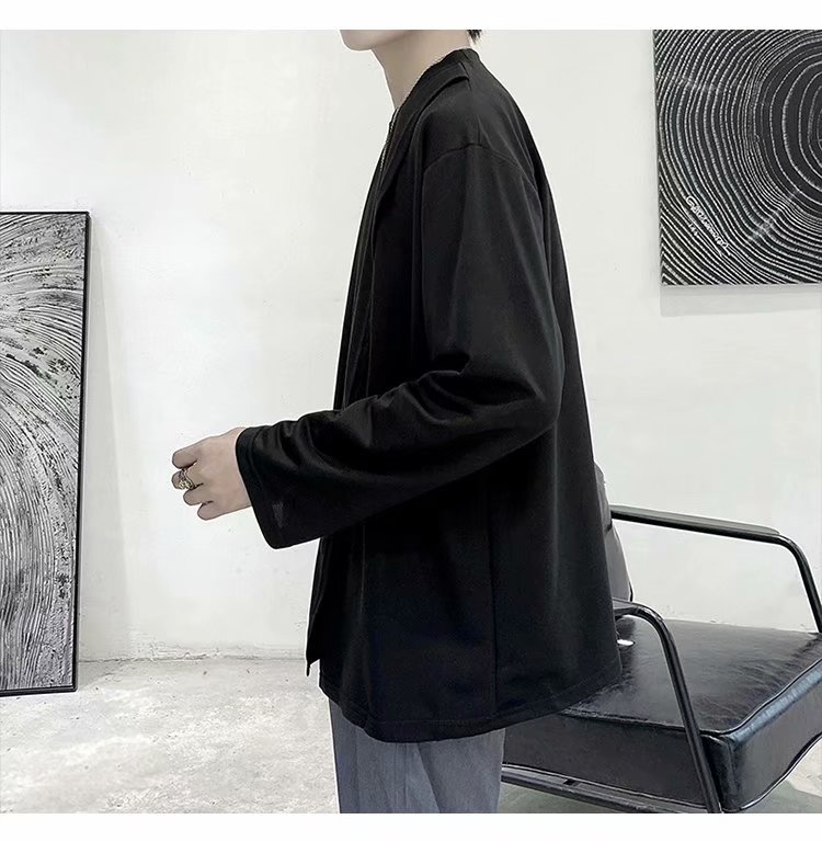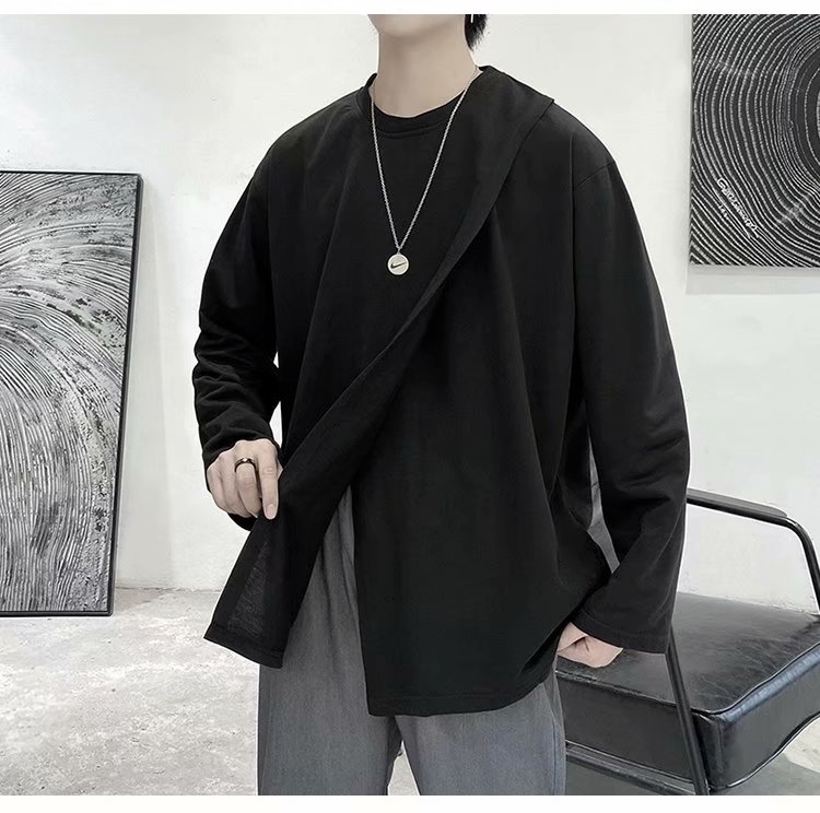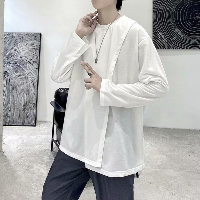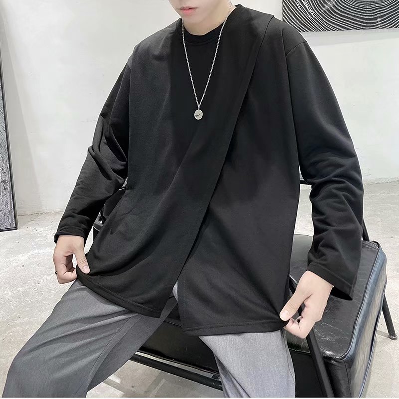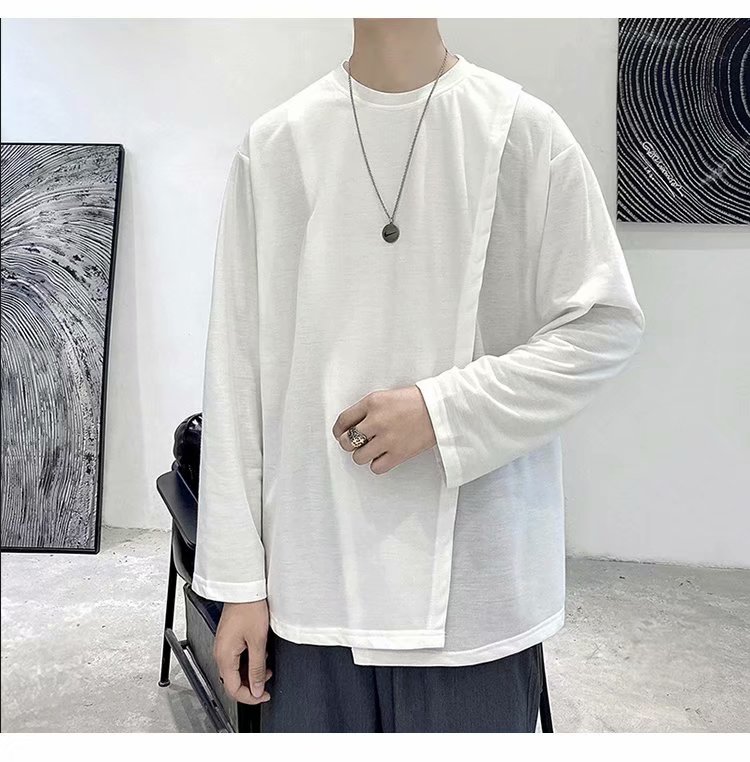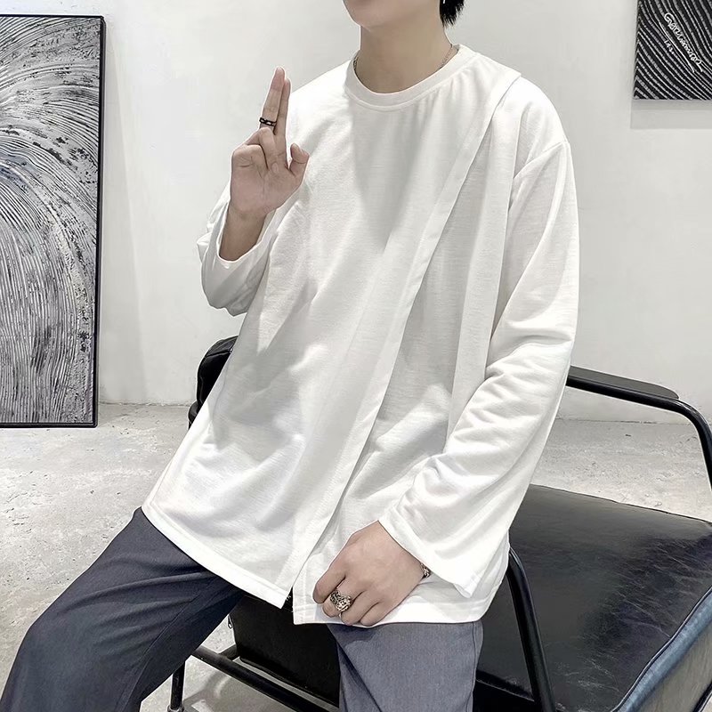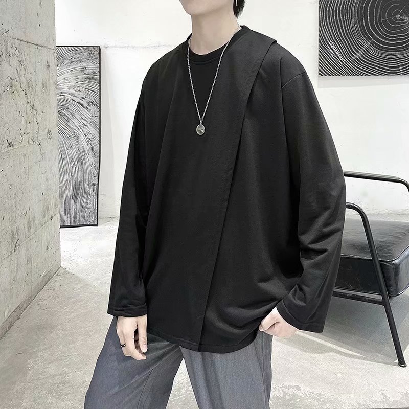 实拍 韩版潮流宽松百搭上衣港风街头复古纯色学生T恤圆领男