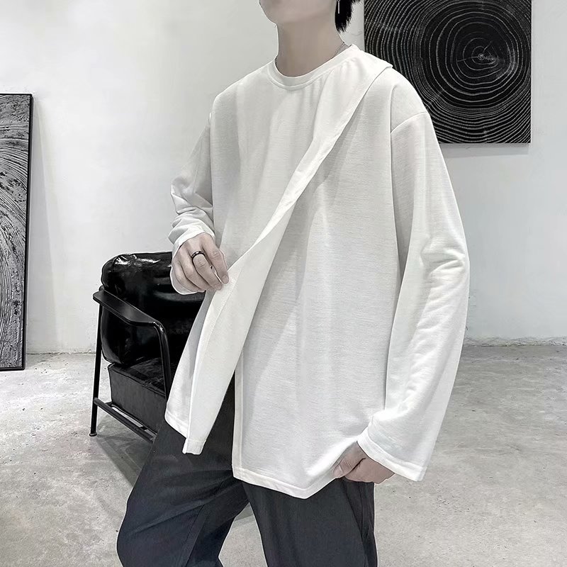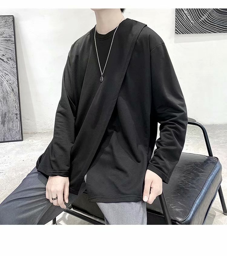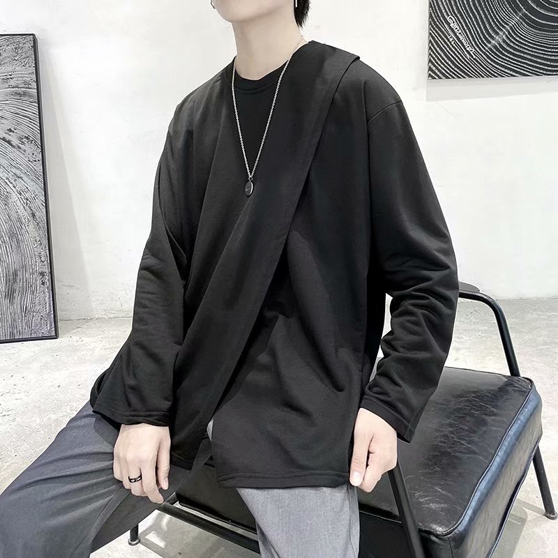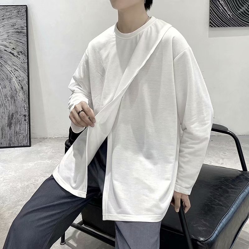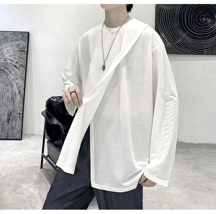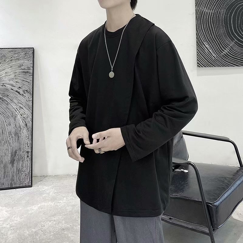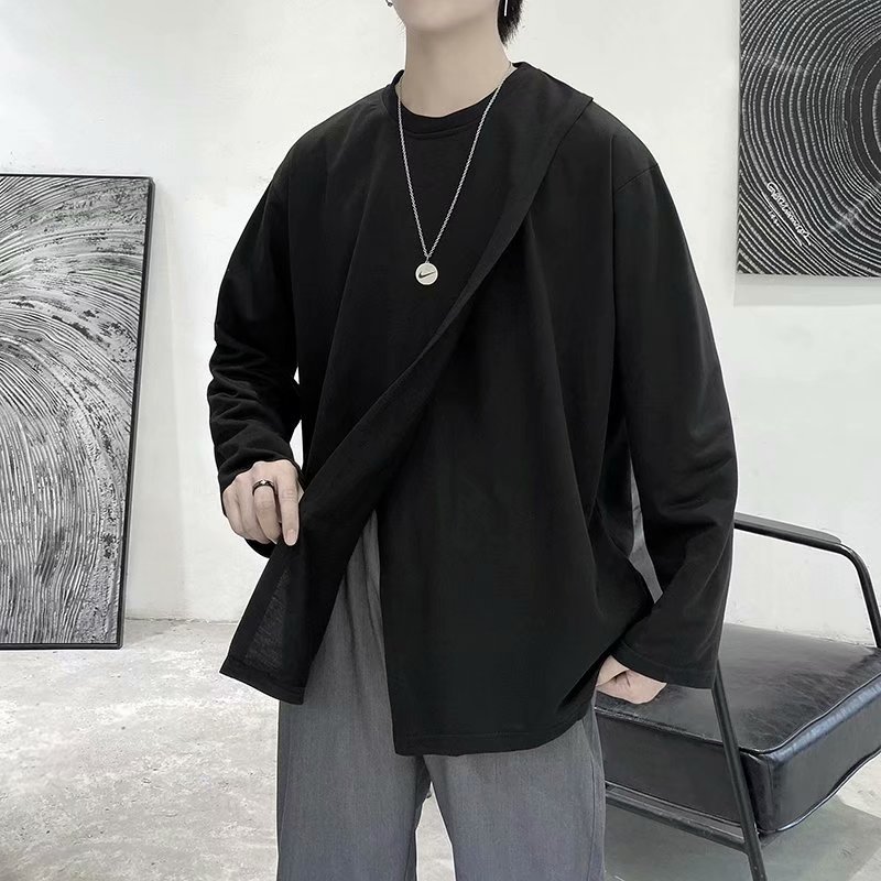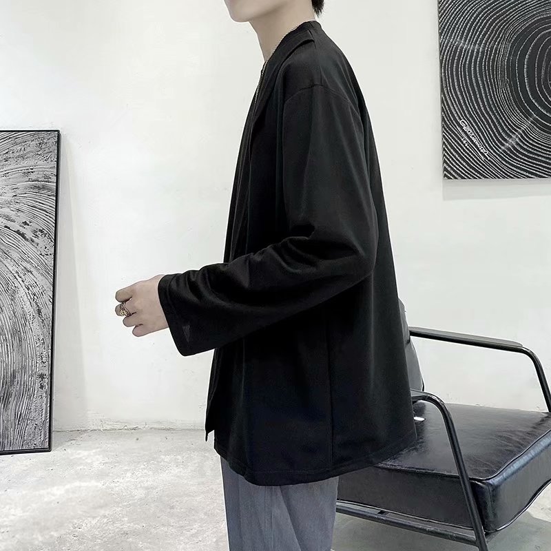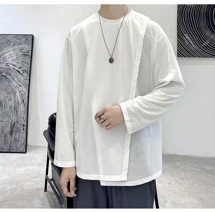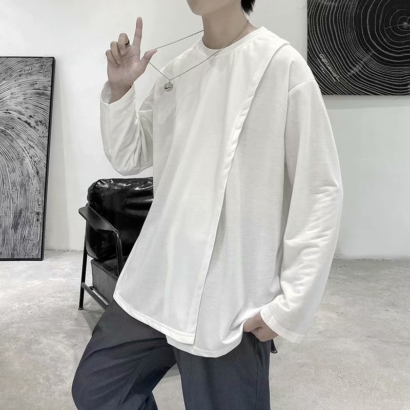 实拍 韩版潮流宽松百搭上衣港风街头复古纯色学生T恤圆领男