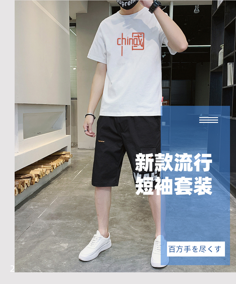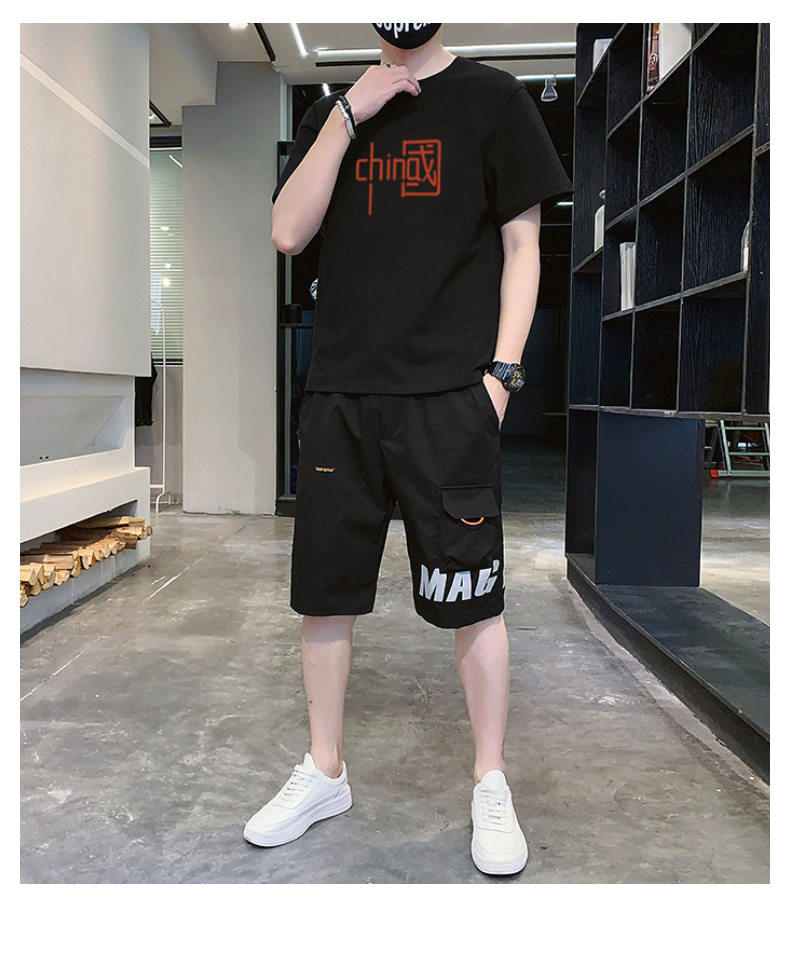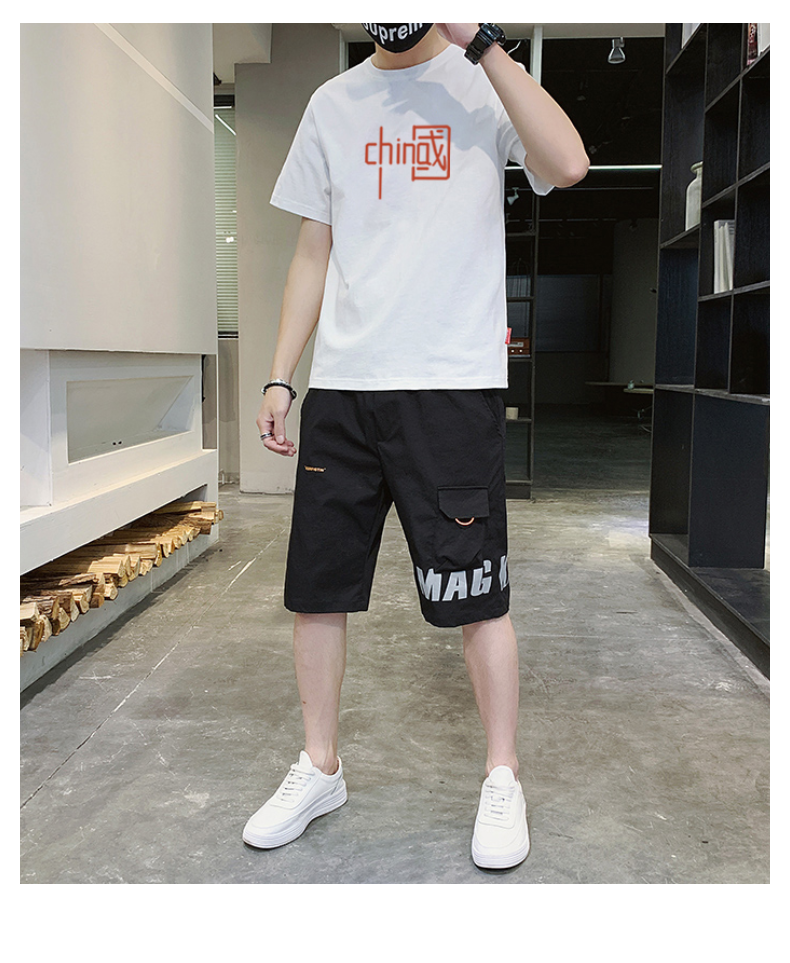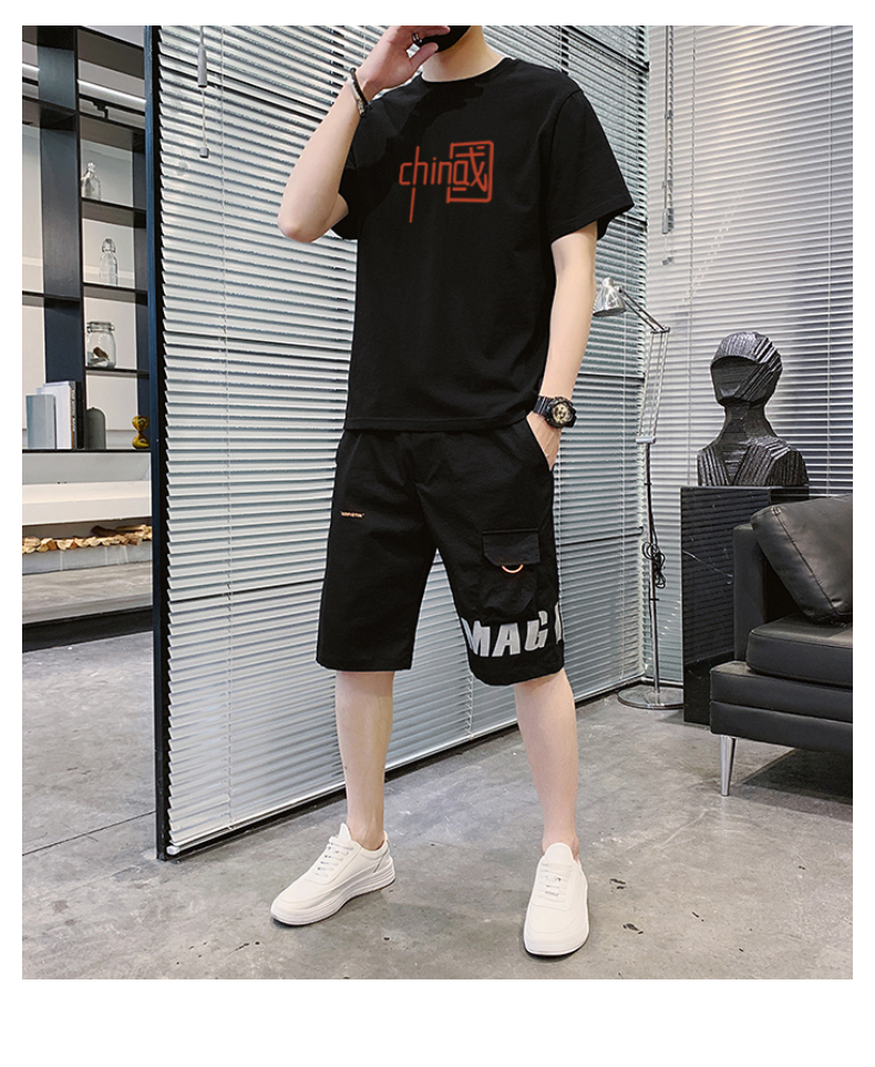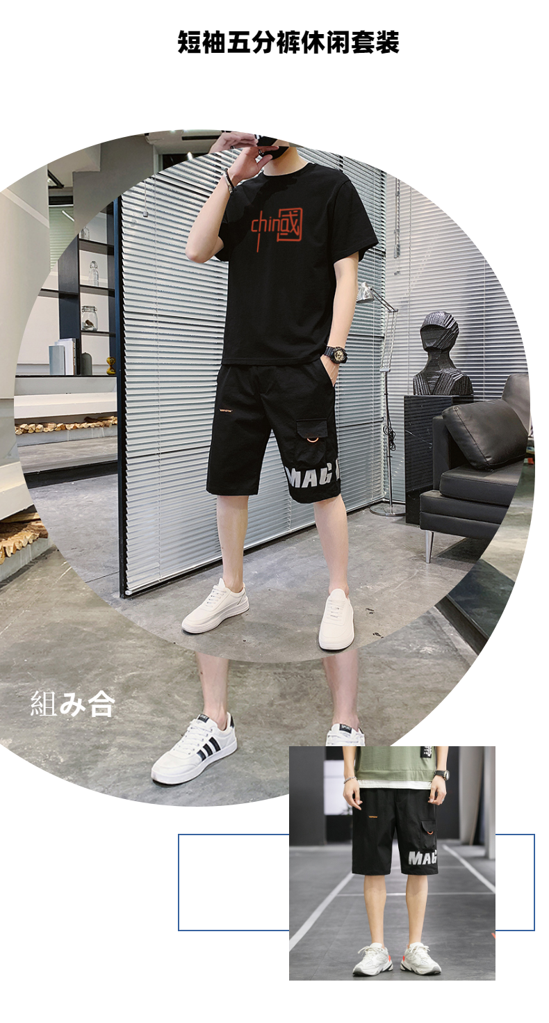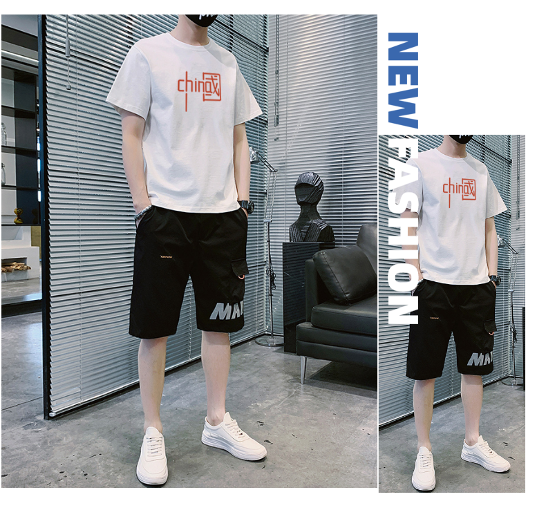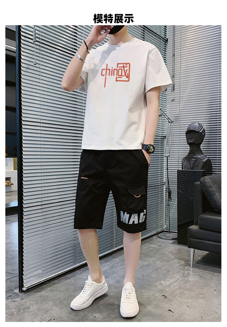 短袖t恤男士夏季新款潮牌潮流搭配帅气青少年运动休闲短裤套装