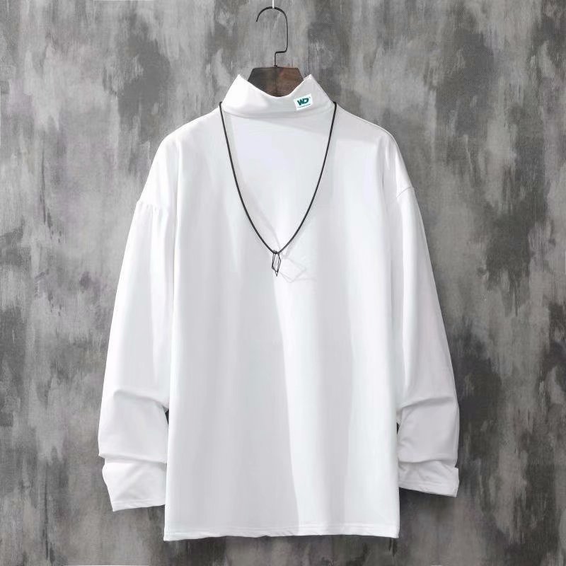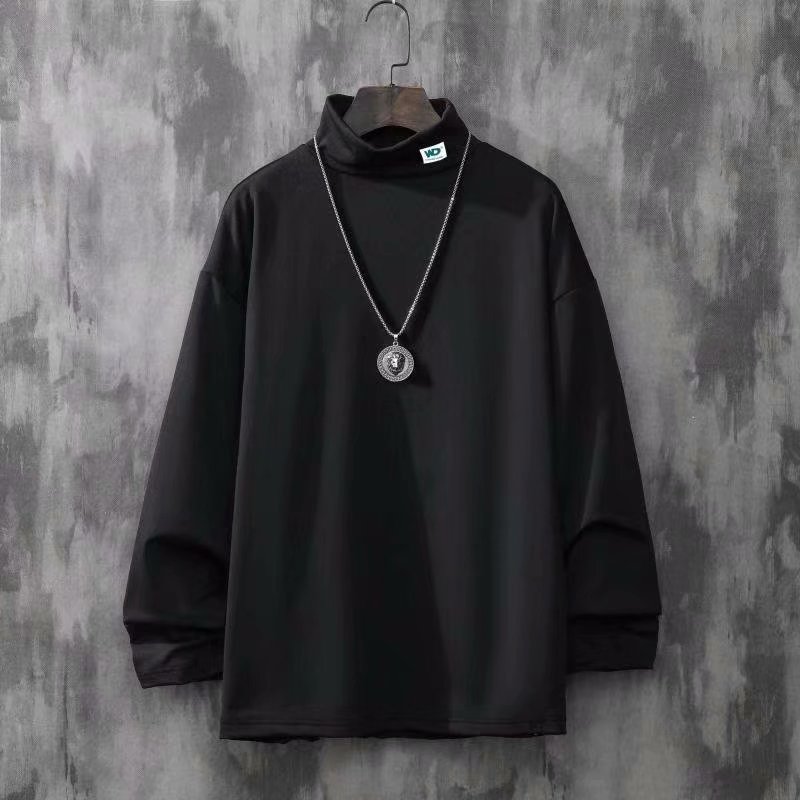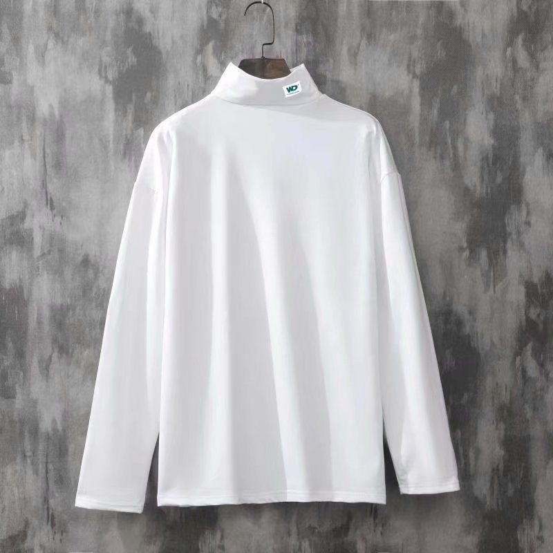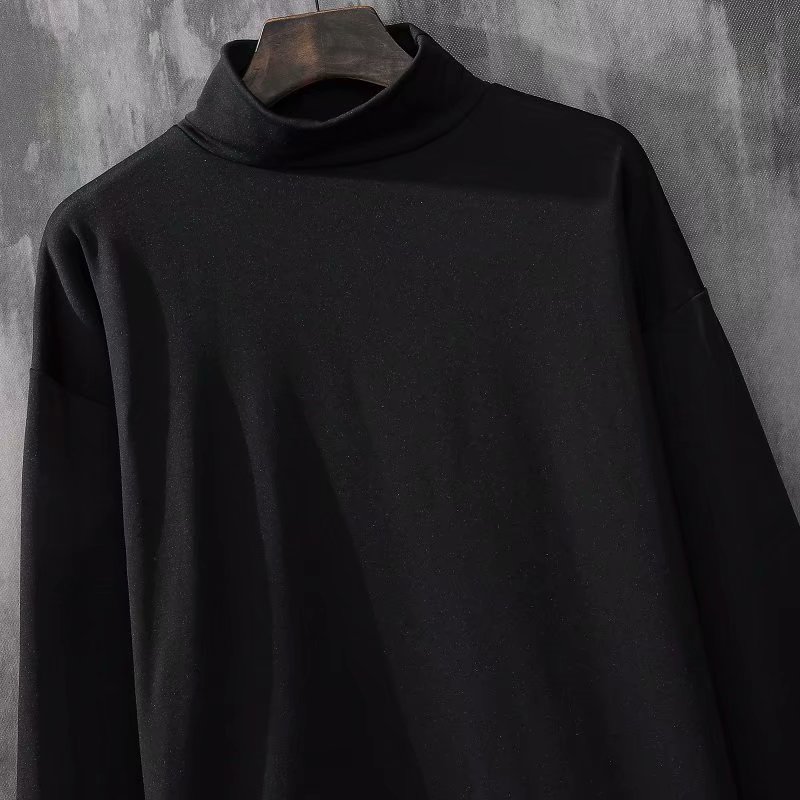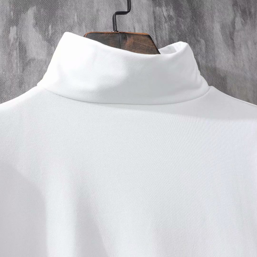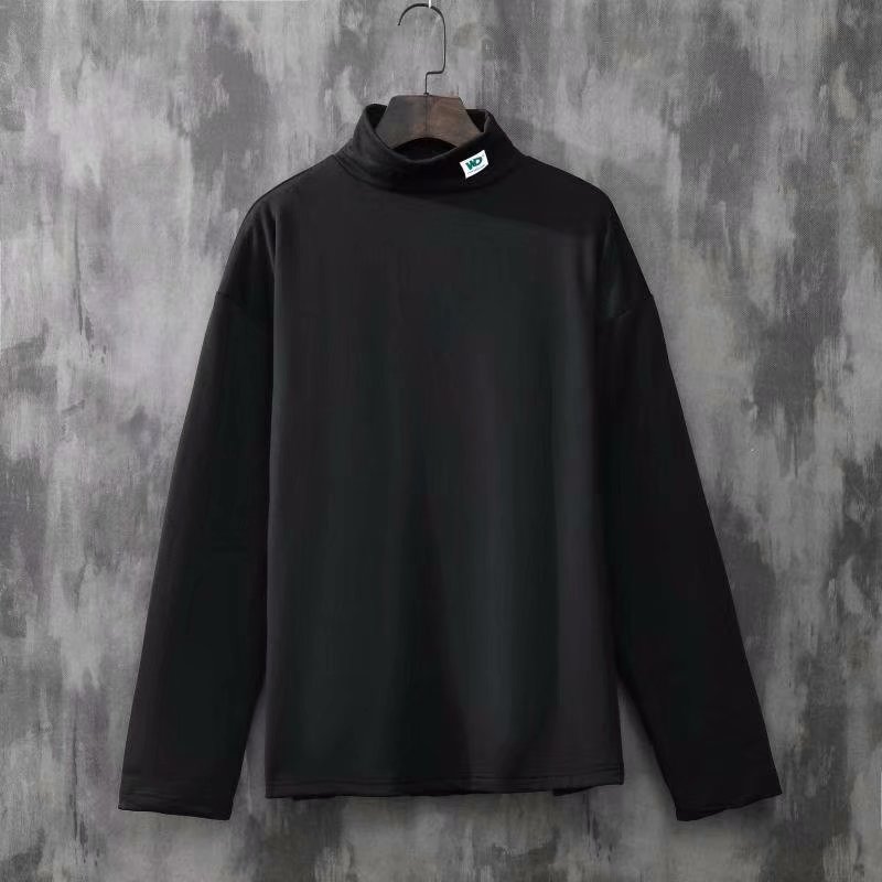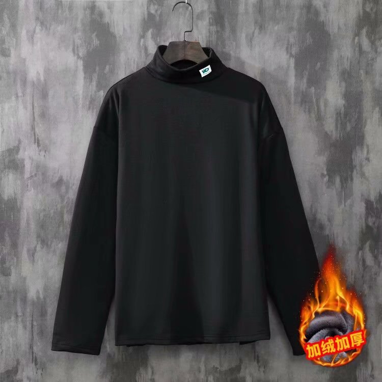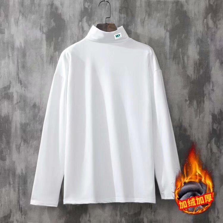 实拍长袖日系港风青年原宿潮流修身高领加绒长袖T恤ins高领印花男
