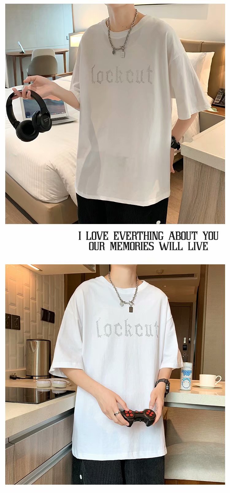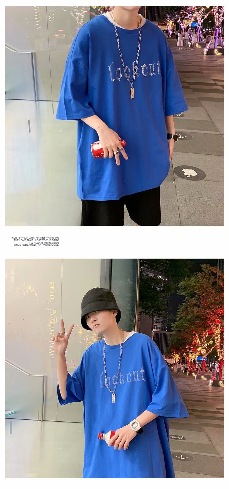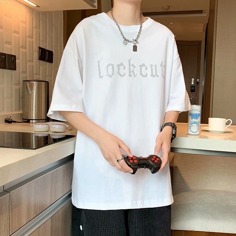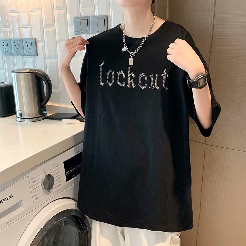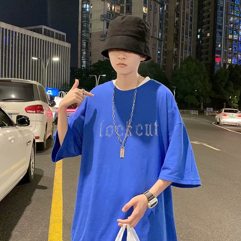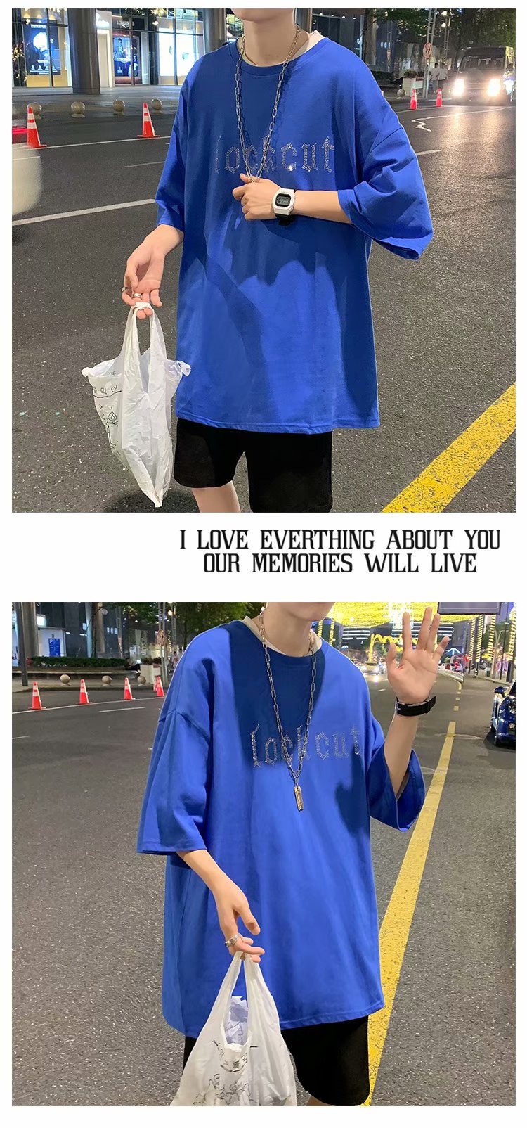 实拍短袖T恤男士国潮夏季潮流宽松港风半袖日系潮牌情侣衣服男装