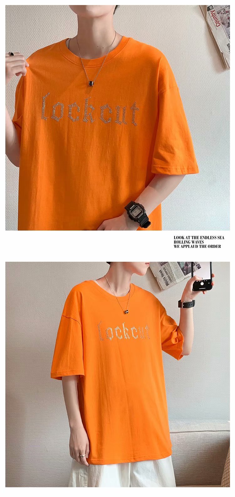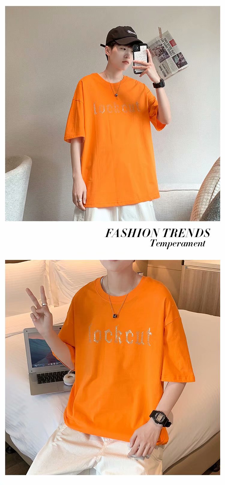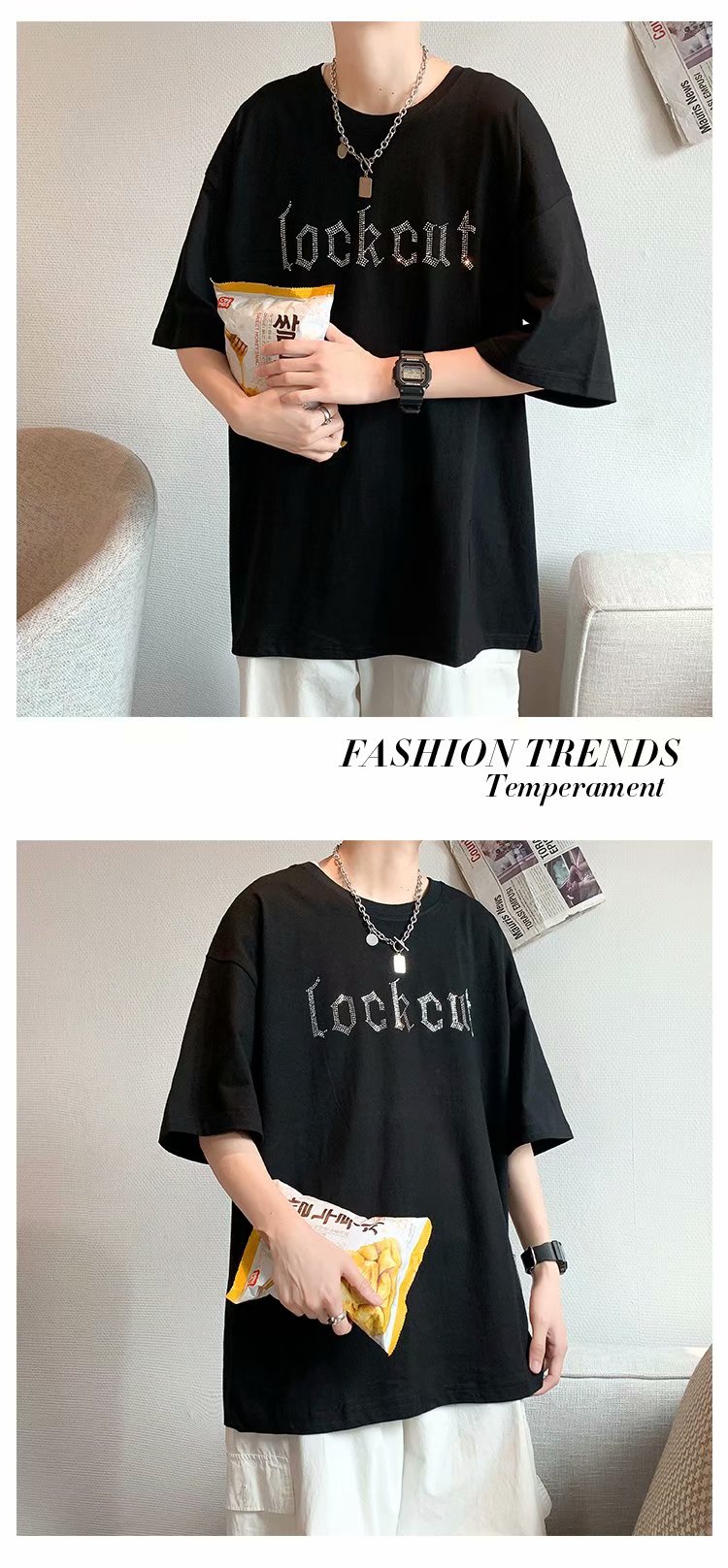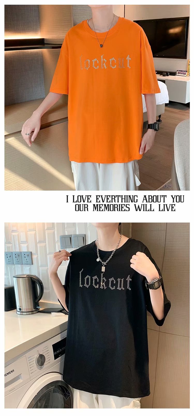 实拍短袖T恤男士国潮夏季潮流宽松港风半袖日系潮牌情侣衣服男装