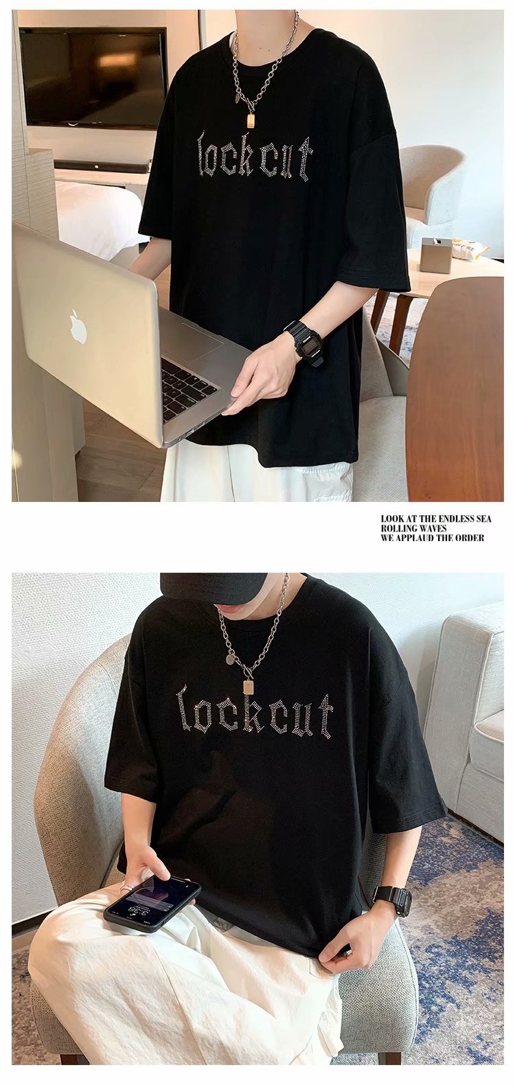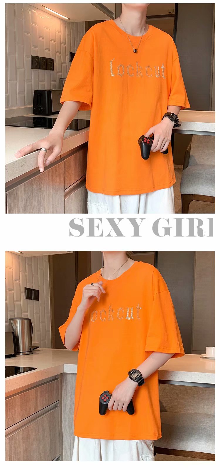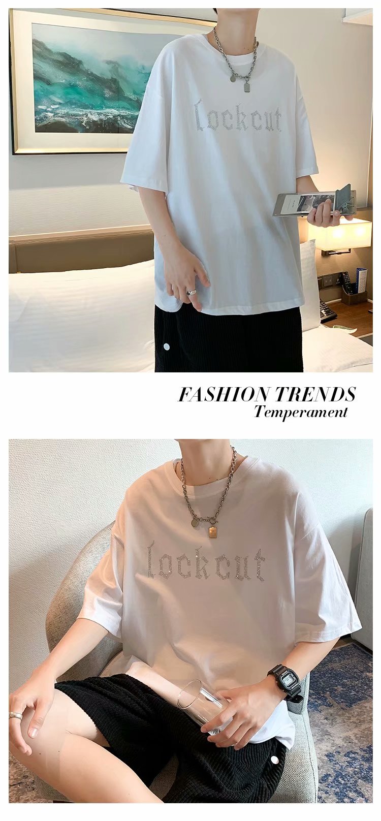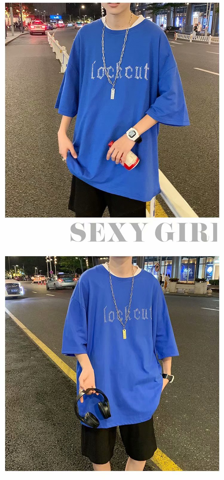 实拍短袖T恤男士国潮夏季潮流宽松港风半袖日系潮牌情侣衣服男装