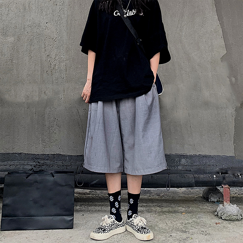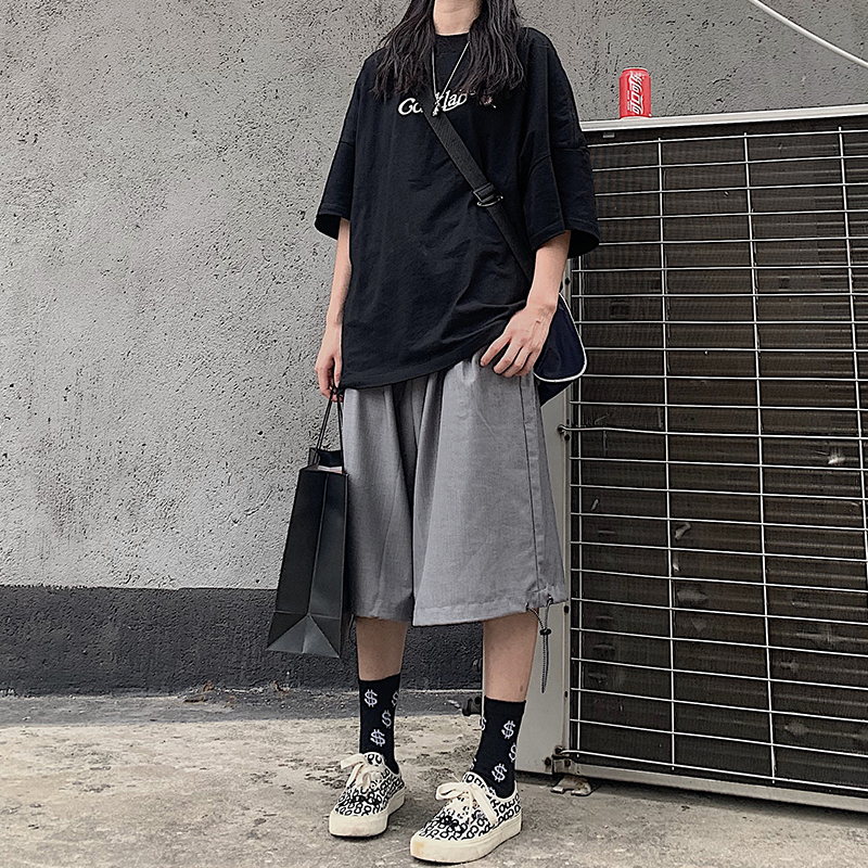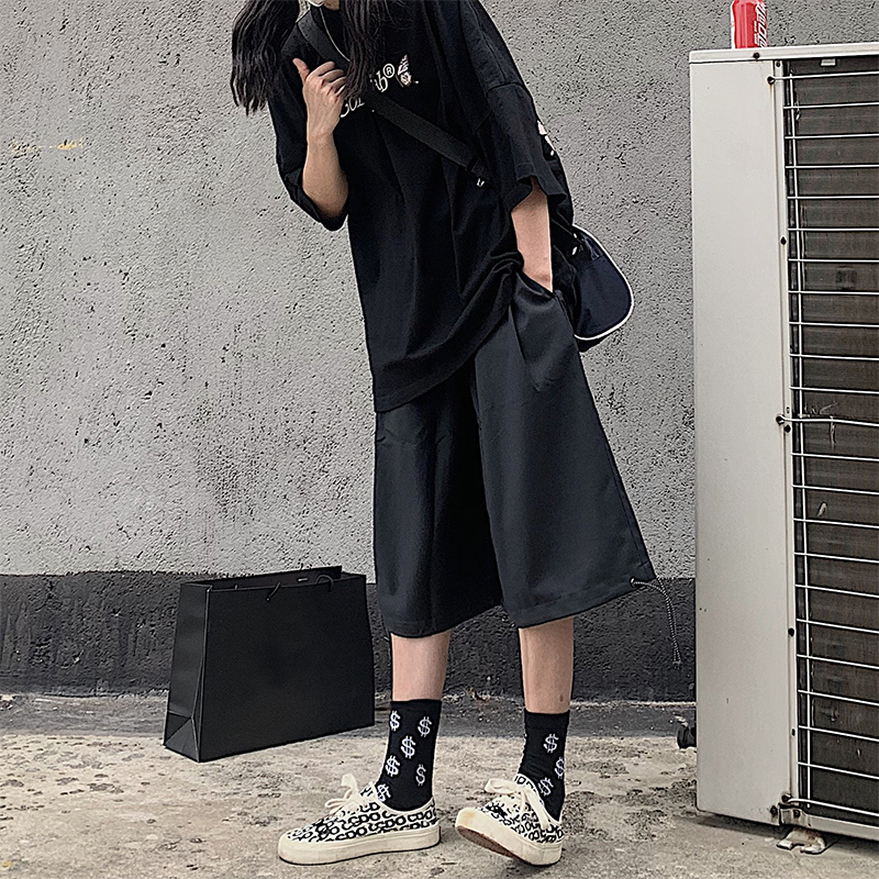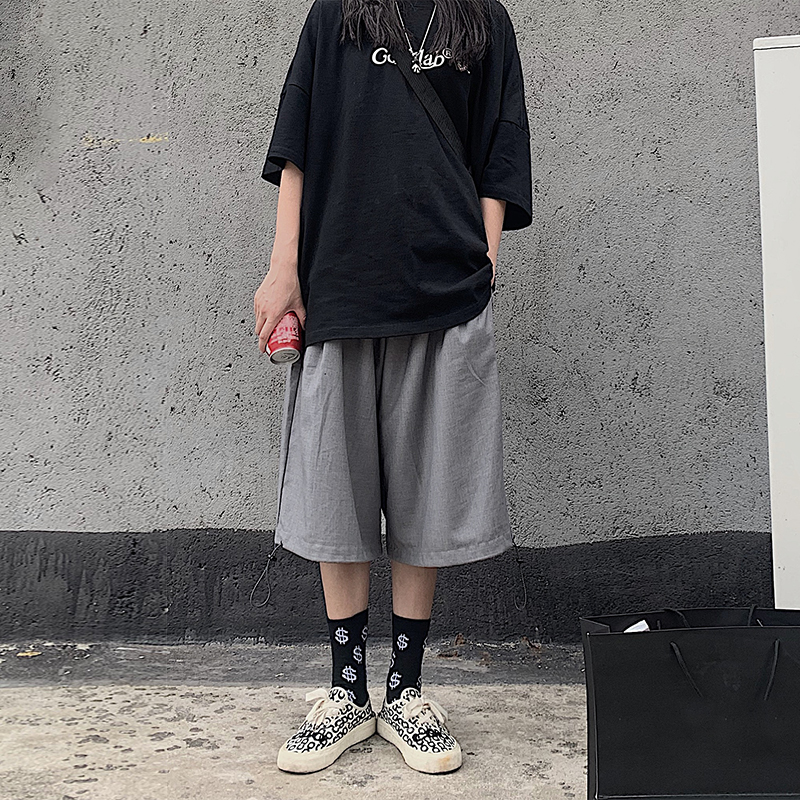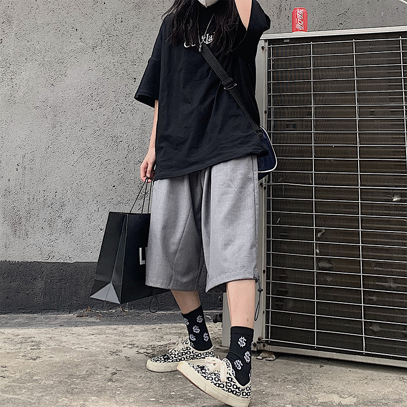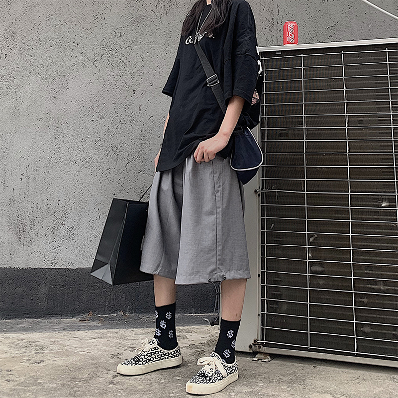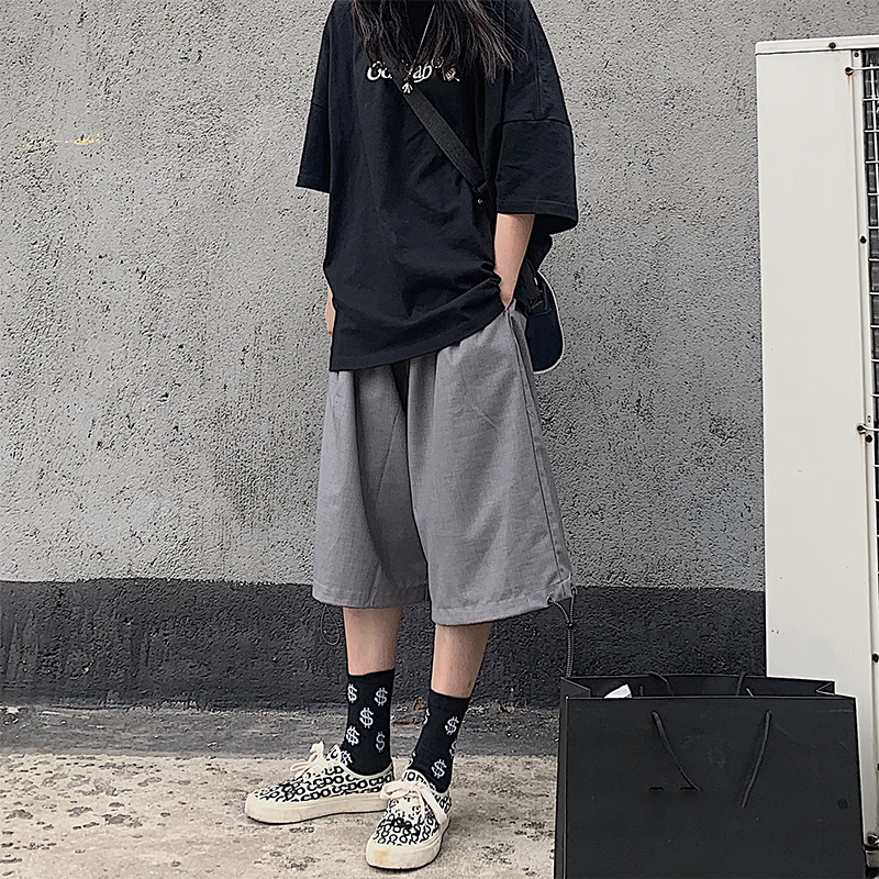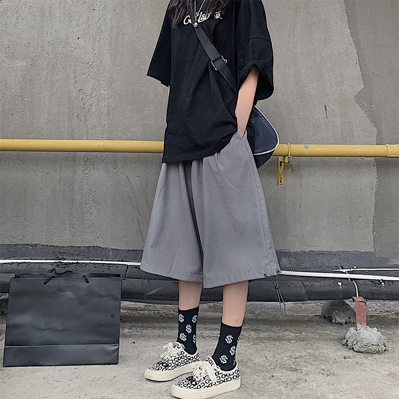 韩国INS夏季日系复古百搭纯色休闲五分阔腿裤女西裤实拍实价控26