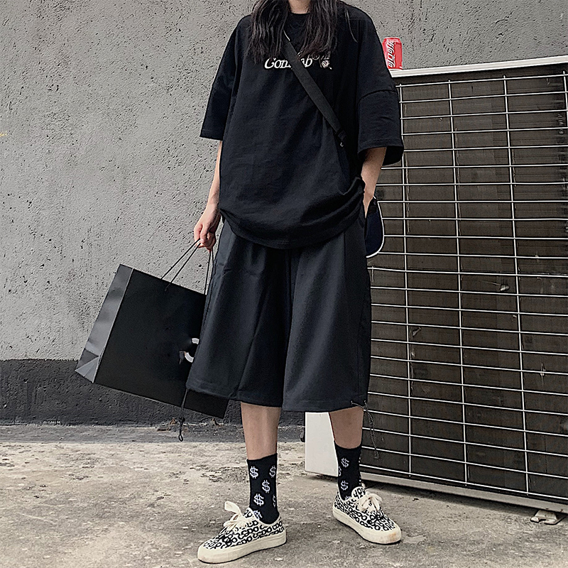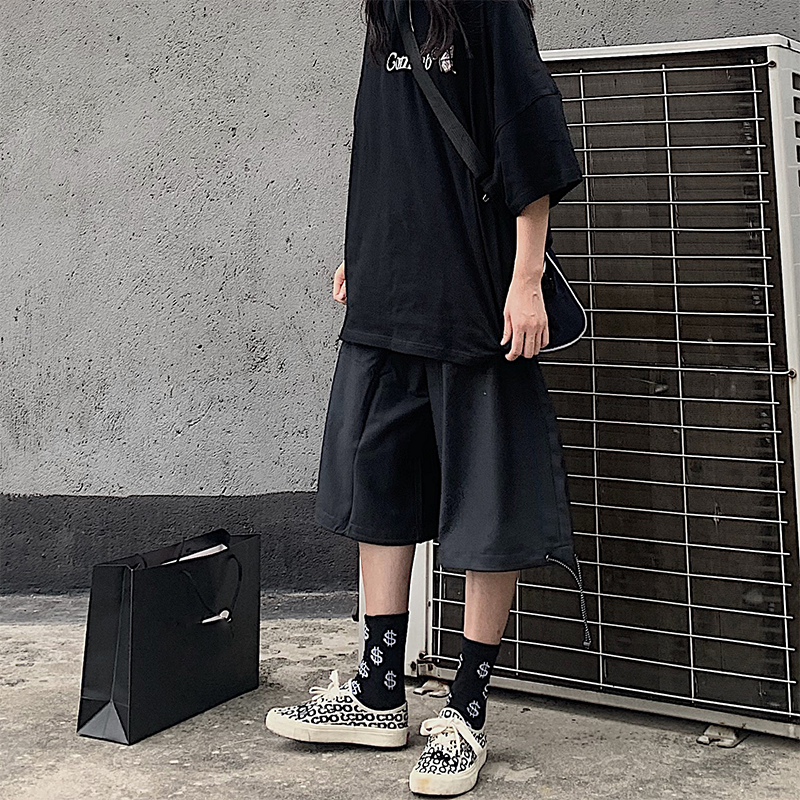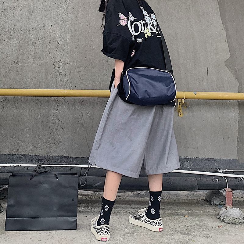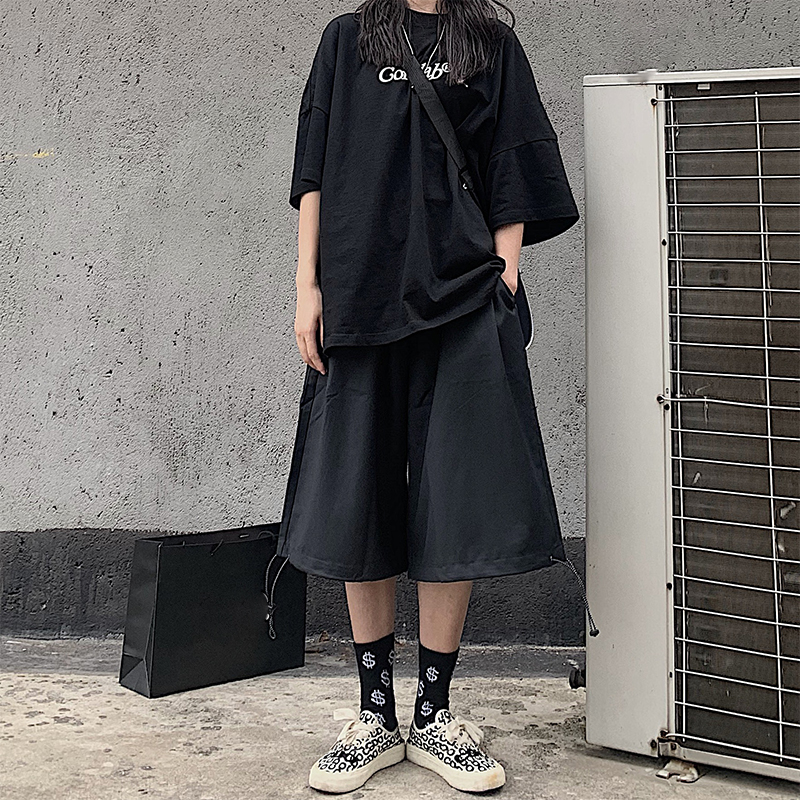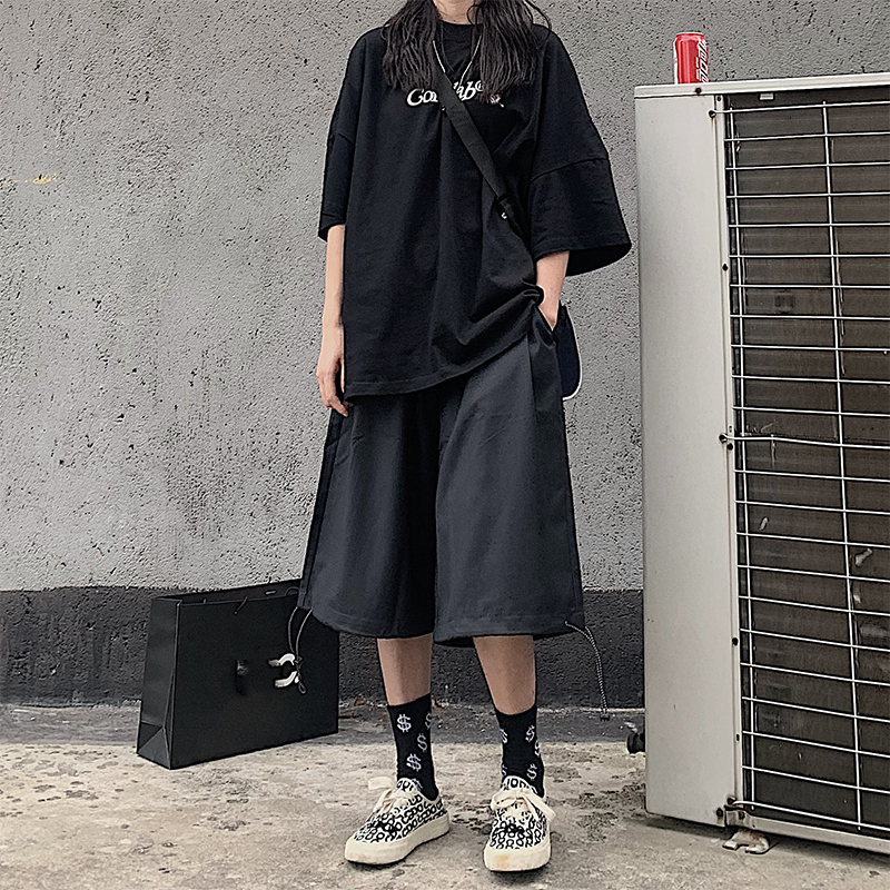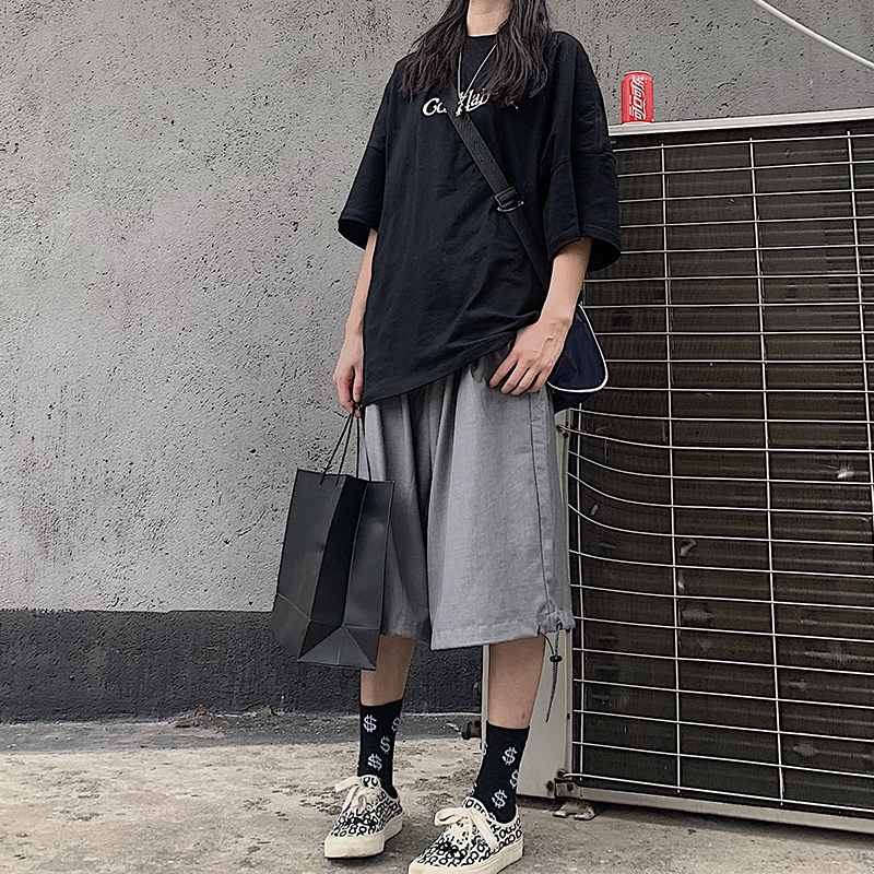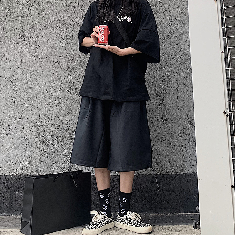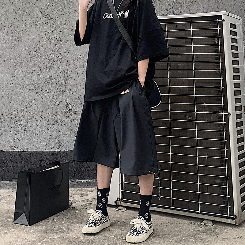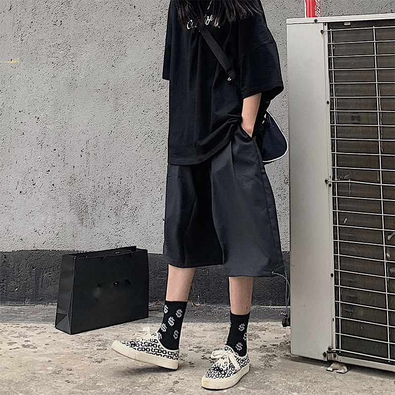 韩国INS夏季日系复古百搭纯色休闲五分阔腿裤女西裤实拍实价控26
