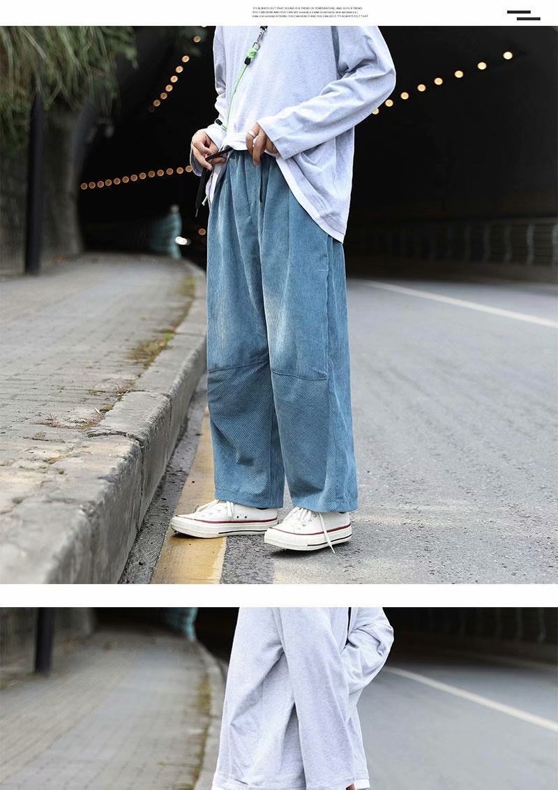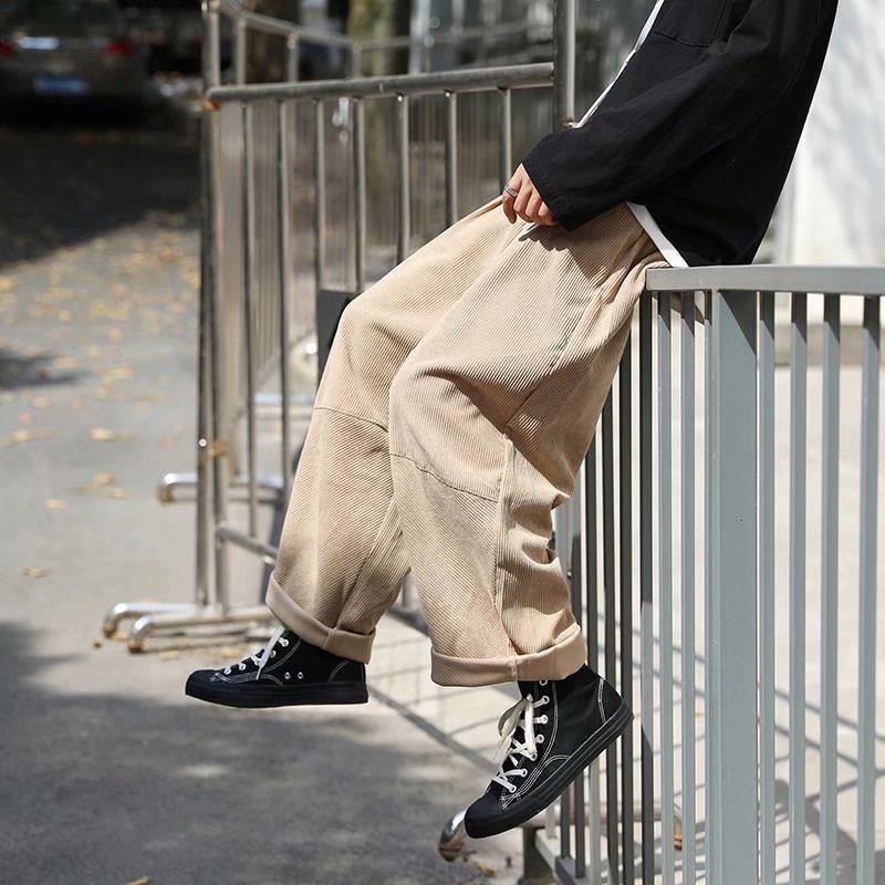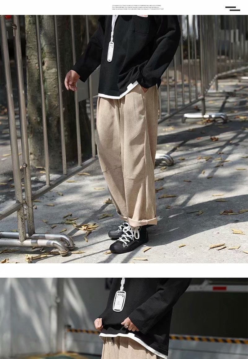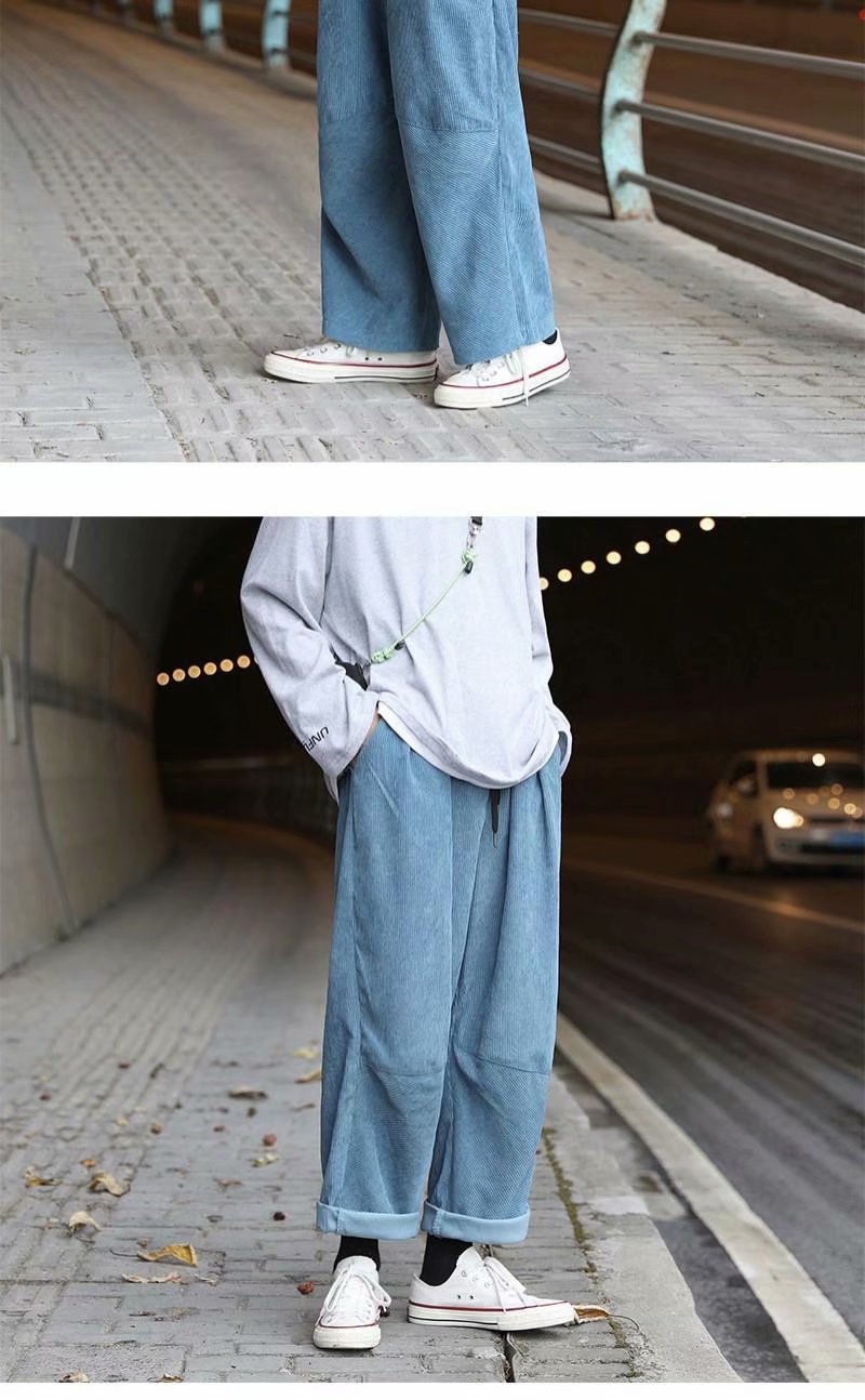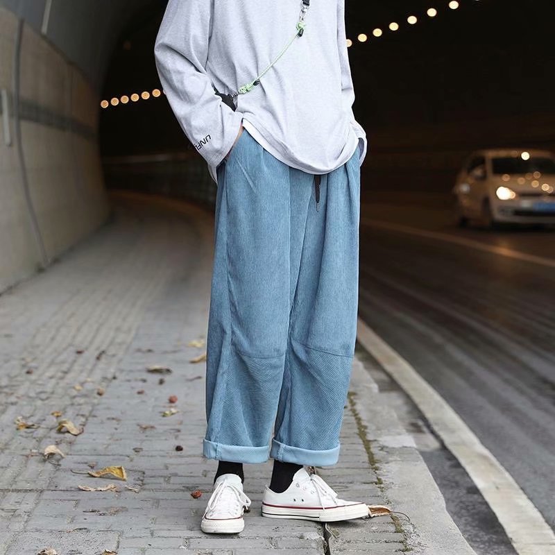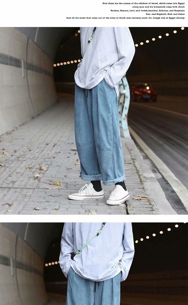 实拍 日系简约宽松百搭街头港风九分裤男韩版潮流纯色休闲直筒裤