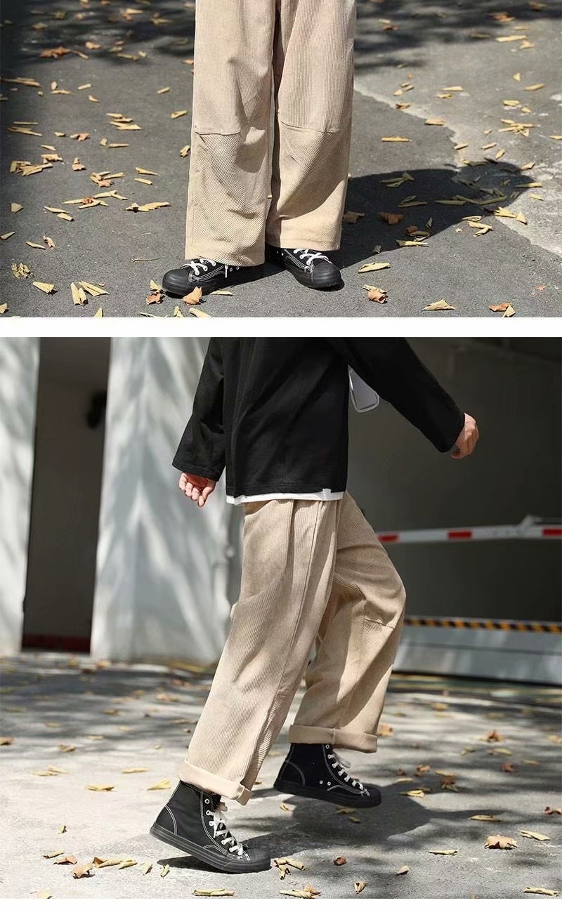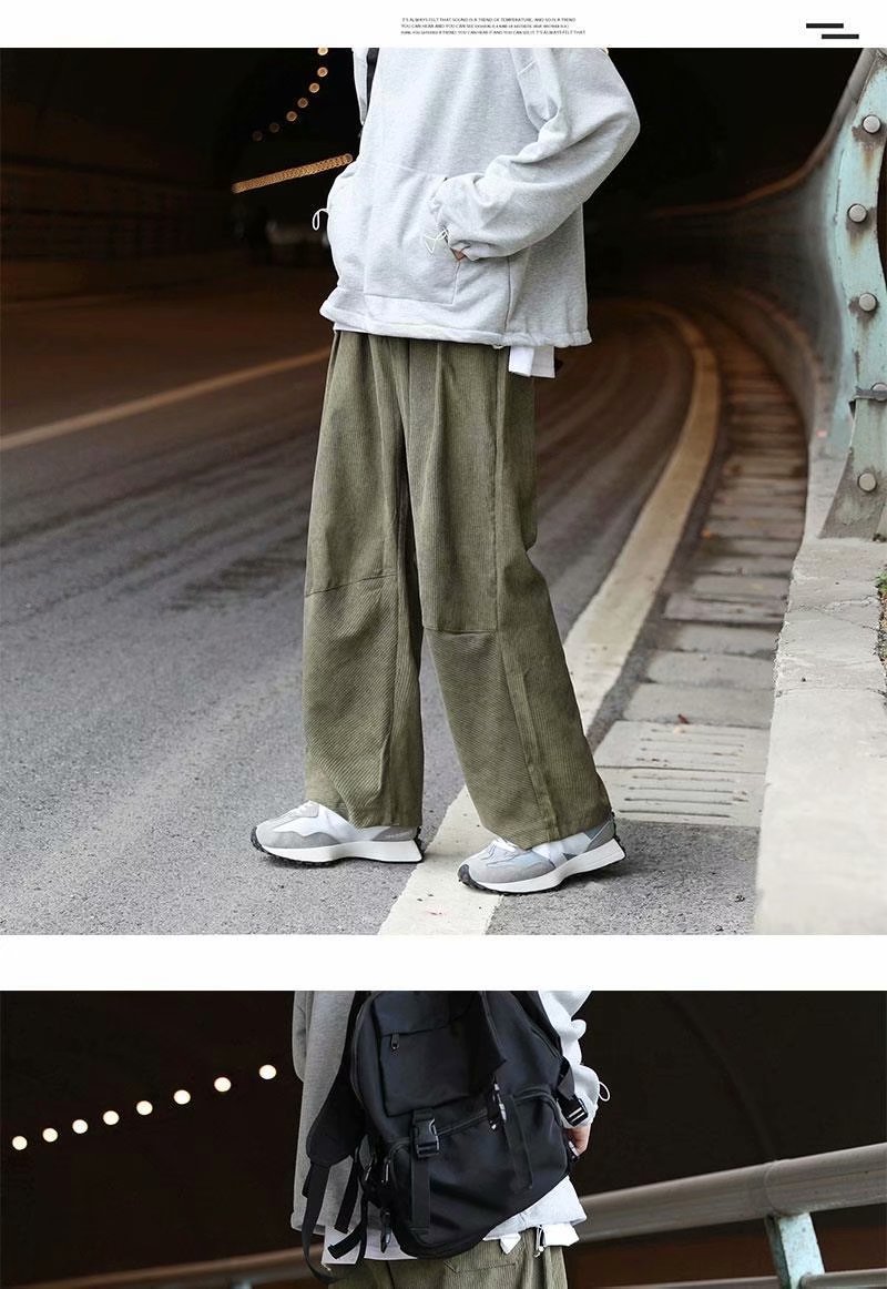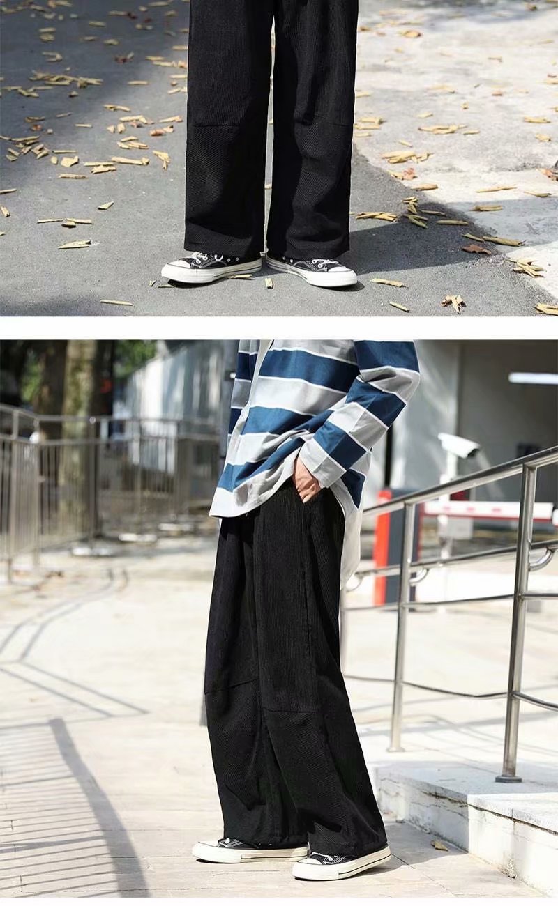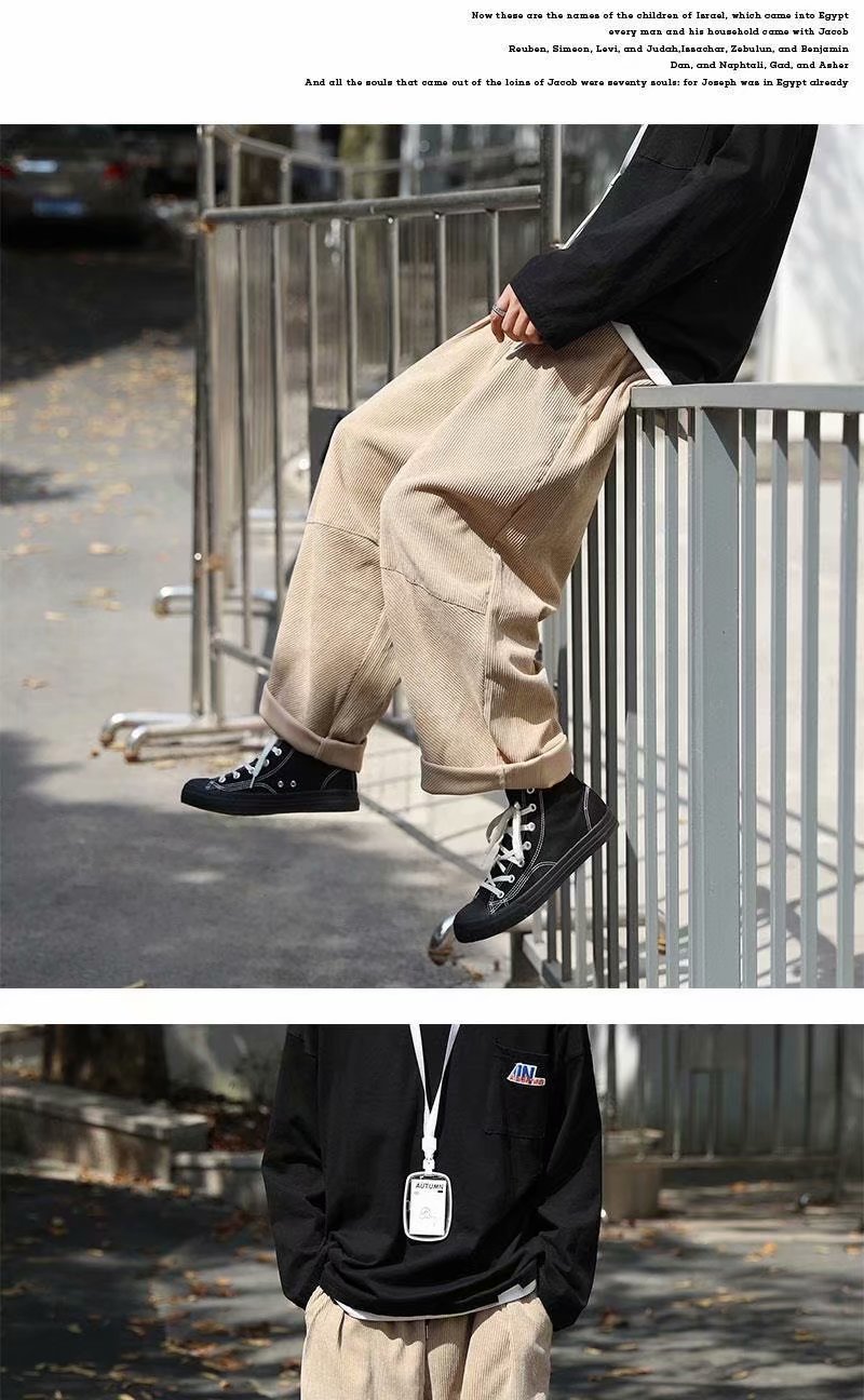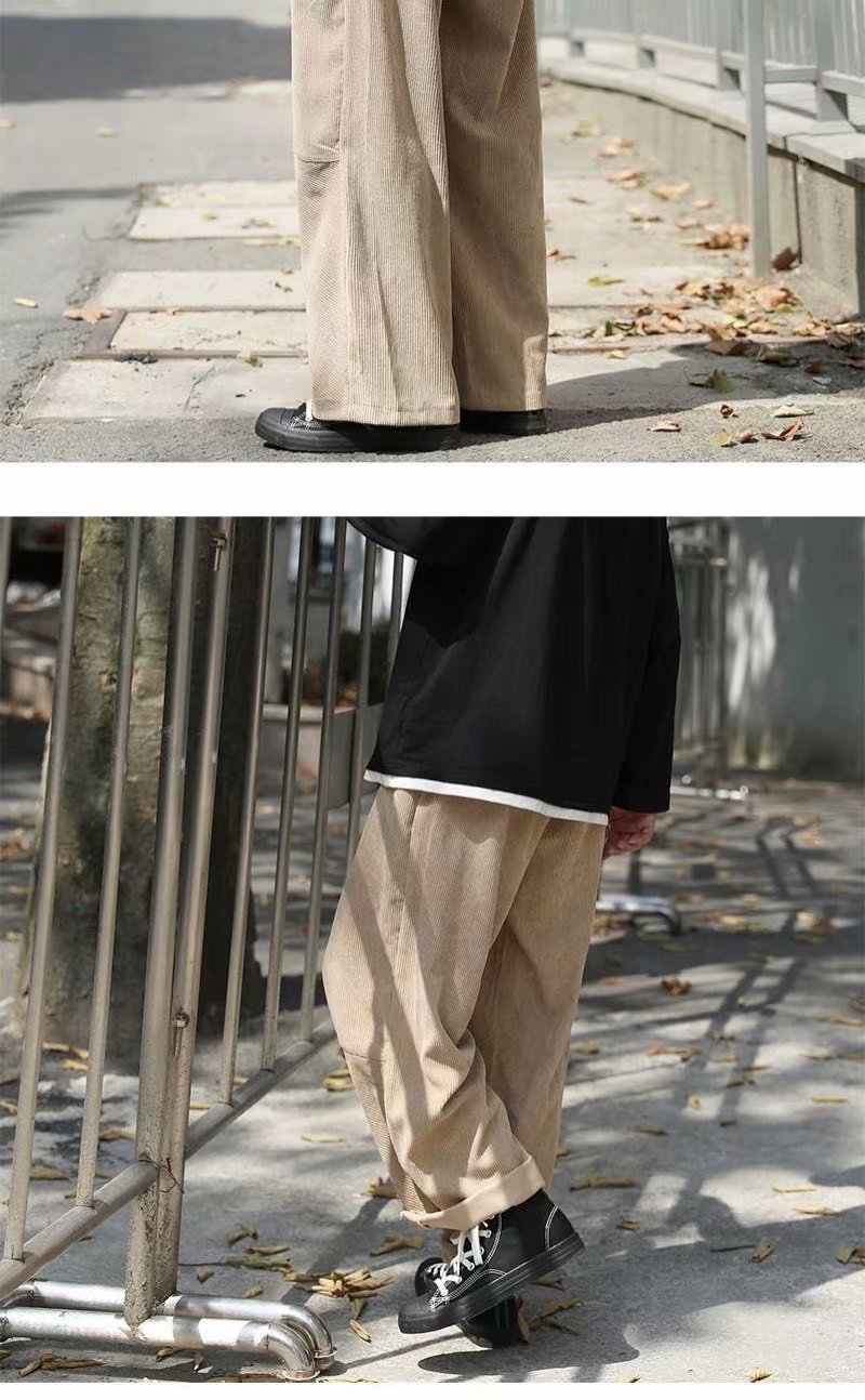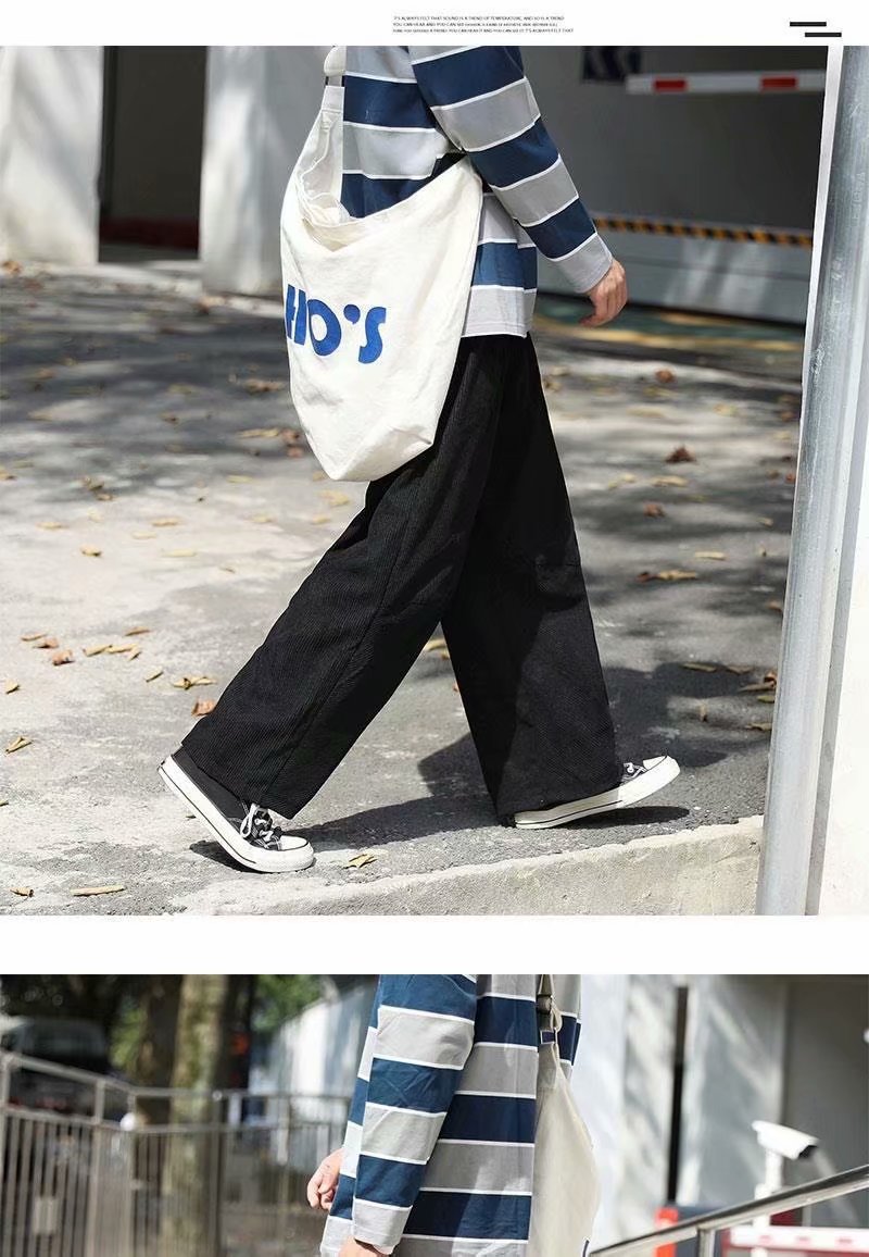 实拍 日系简约宽松百搭街头港风九分裤男韩版潮流纯色休闲直筒裤