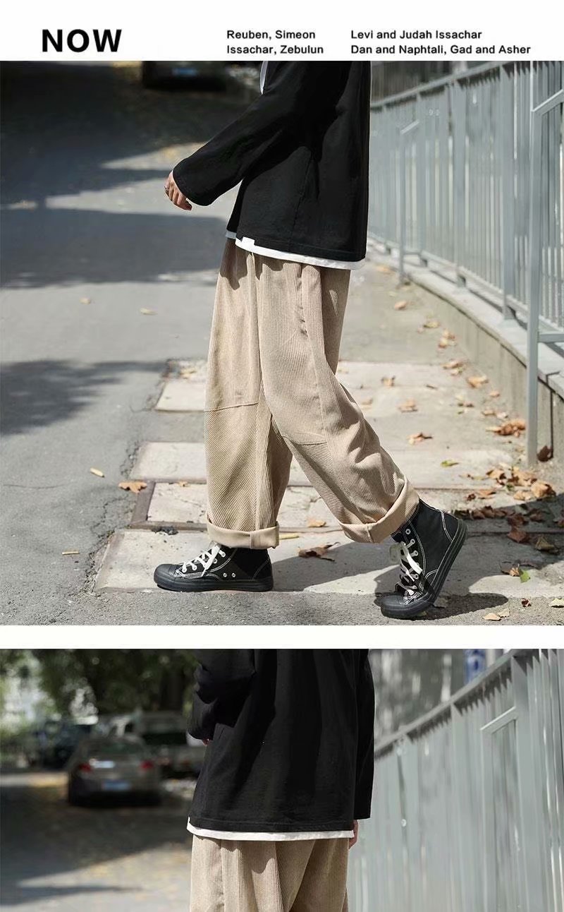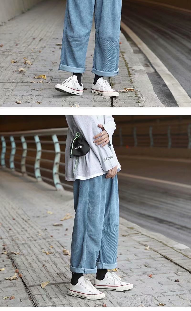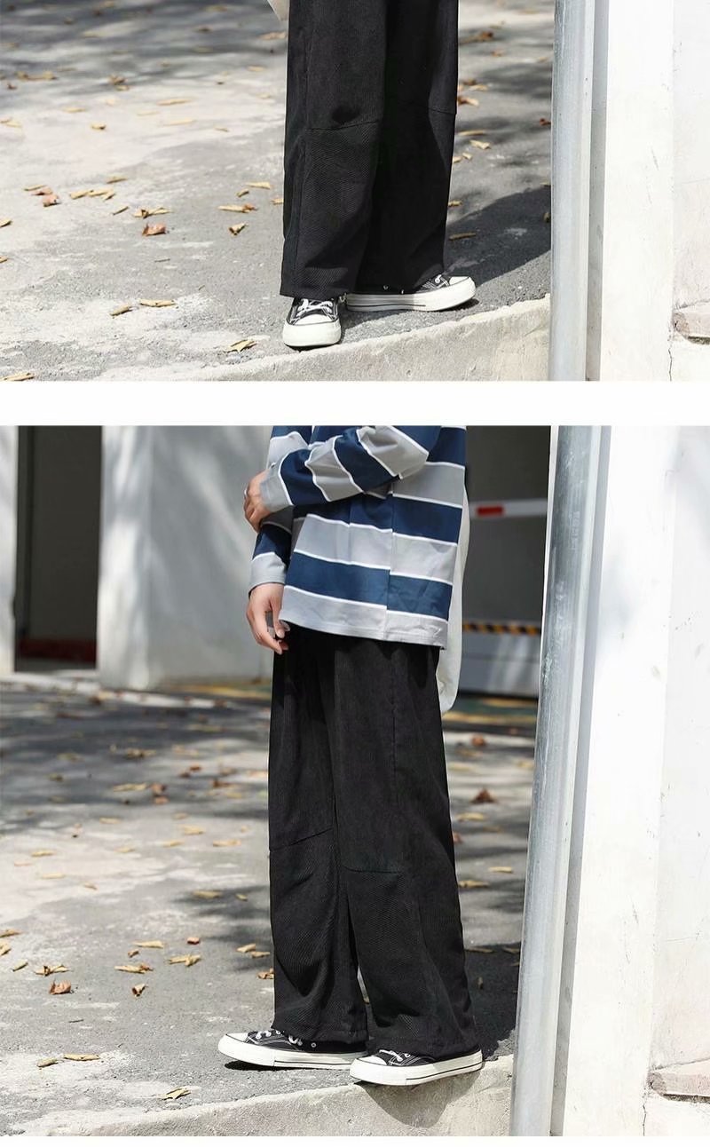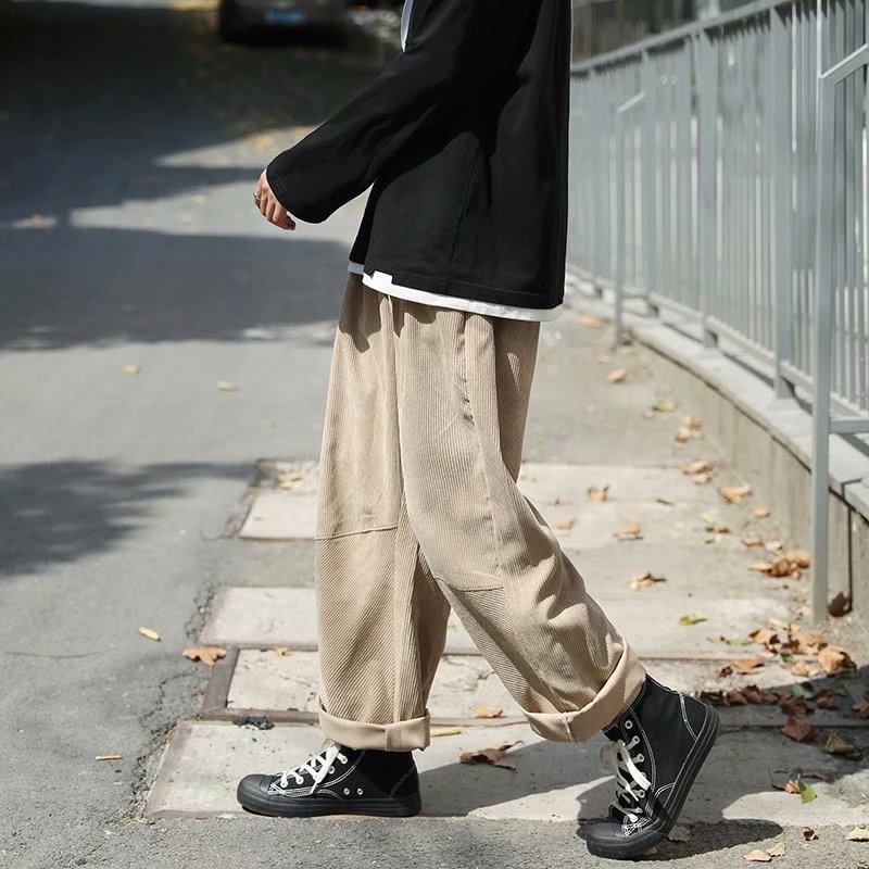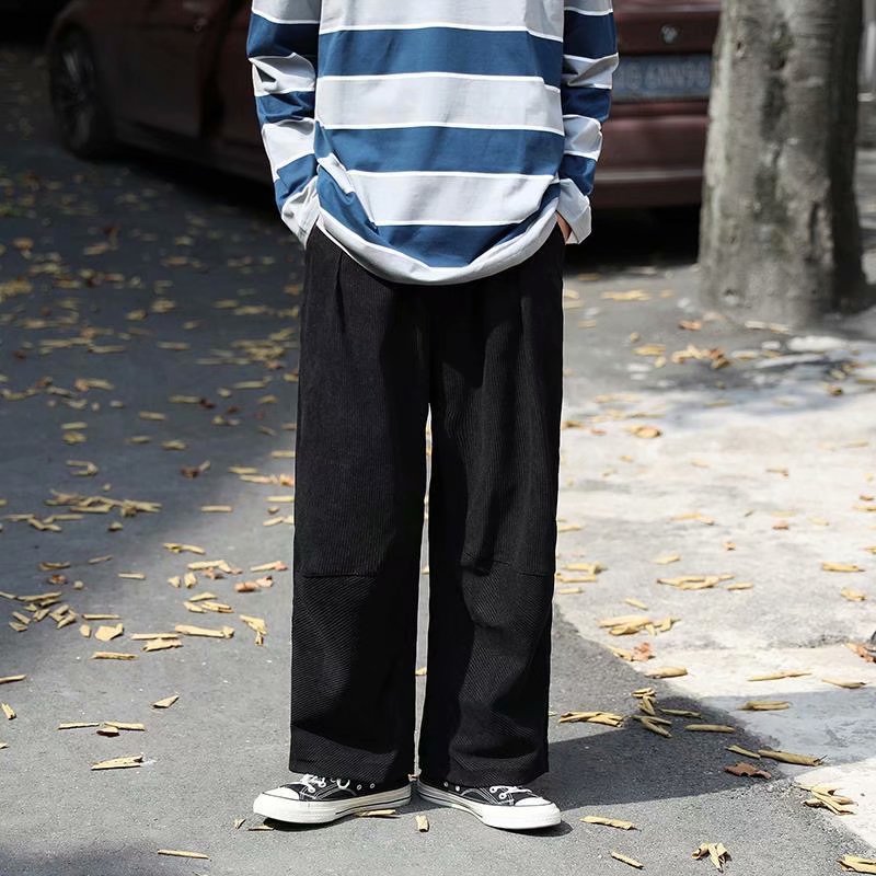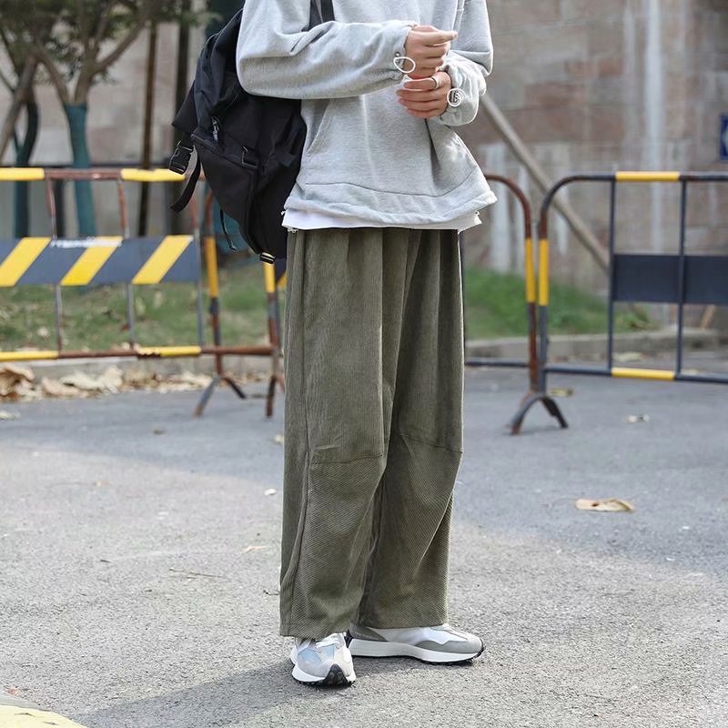 实拍 日系简约宽松百搭街头港风九分裤男韩版潮流纯色休闲直筒裤