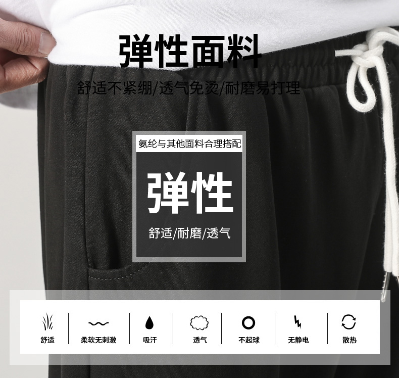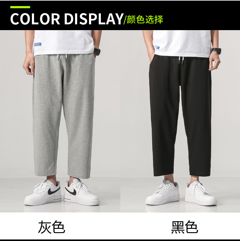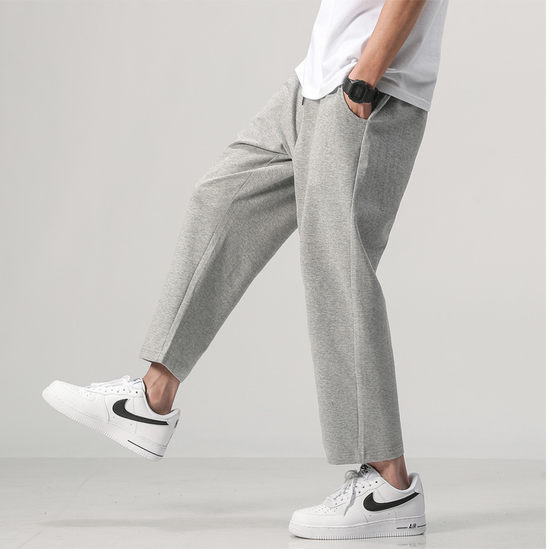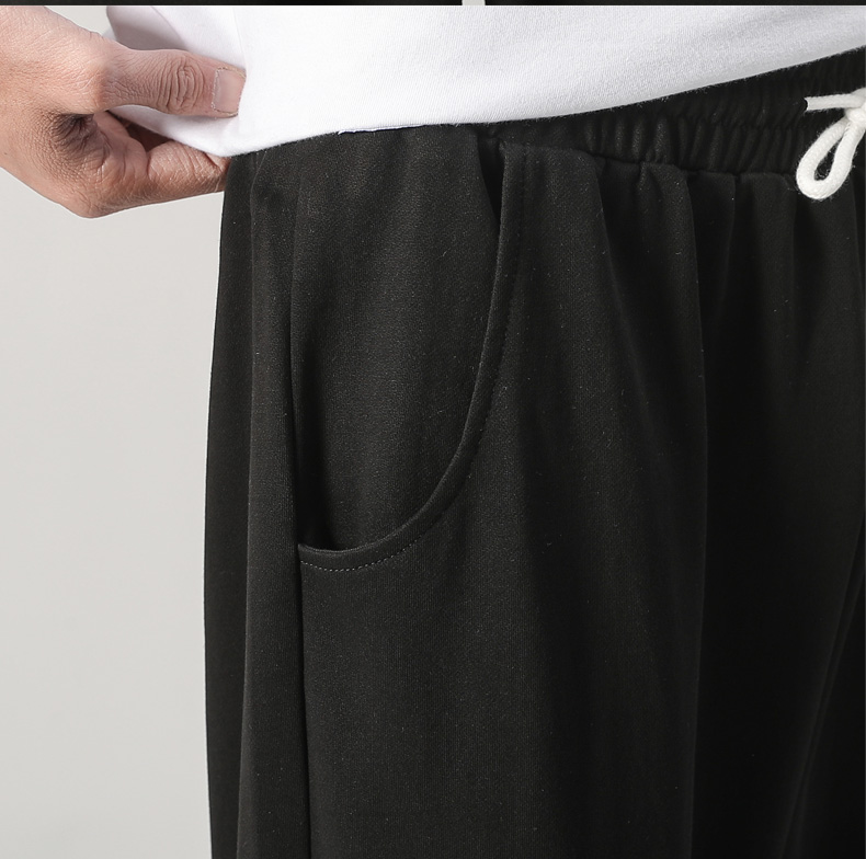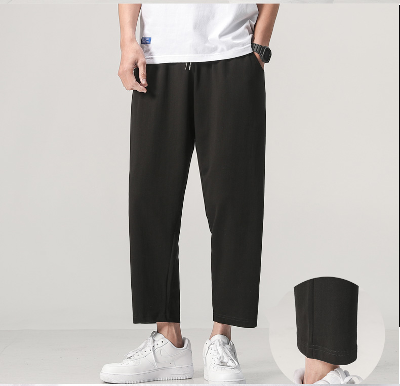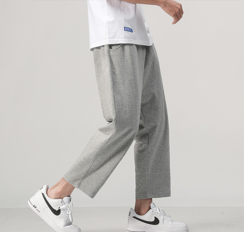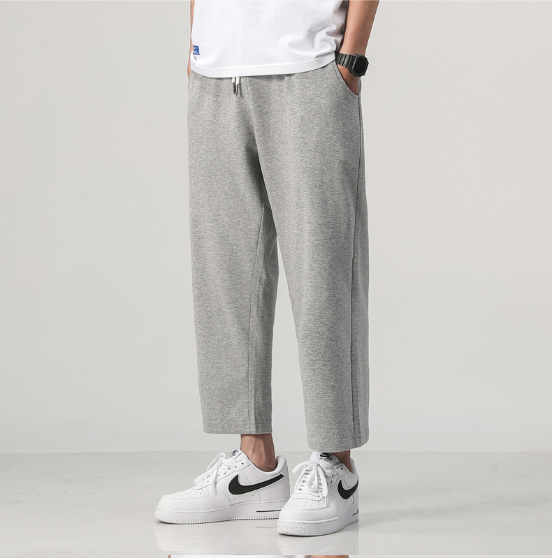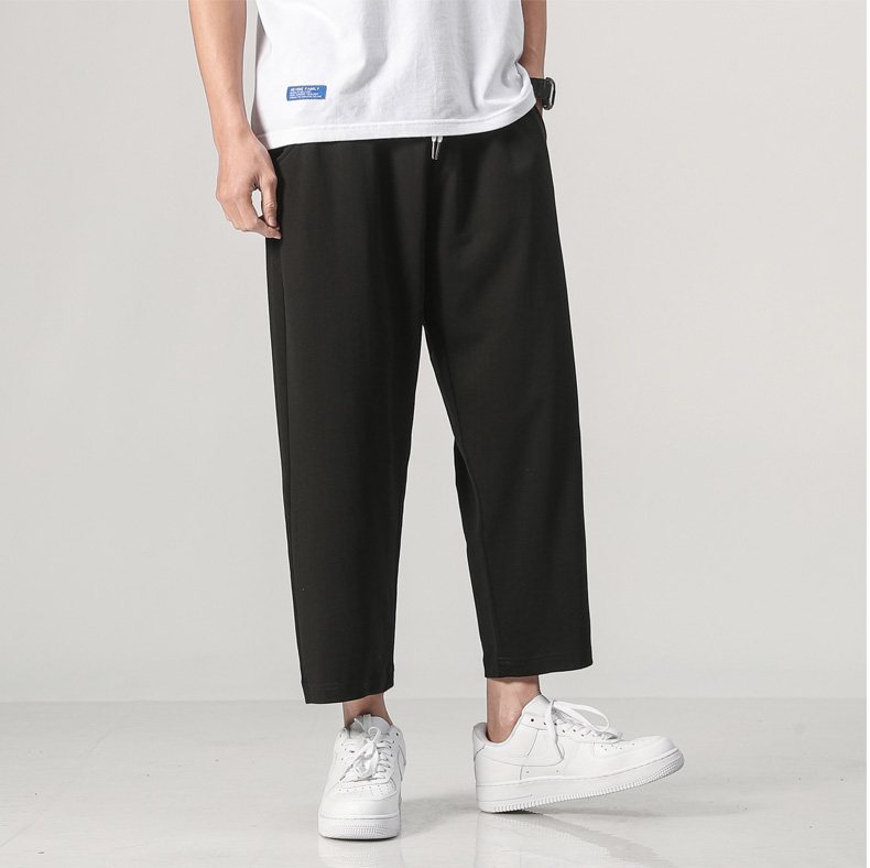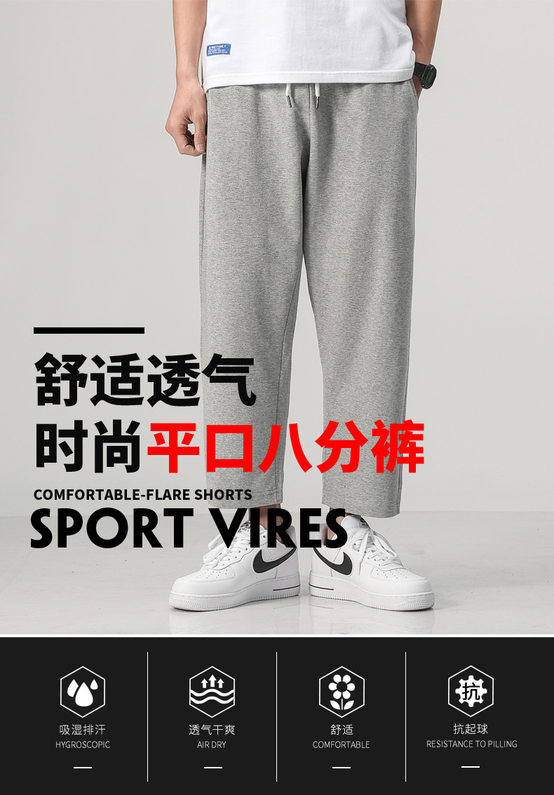 夏装新款男士针织纯色运动裤潮流百搭宽松休闲散口八分裤沙滩裤