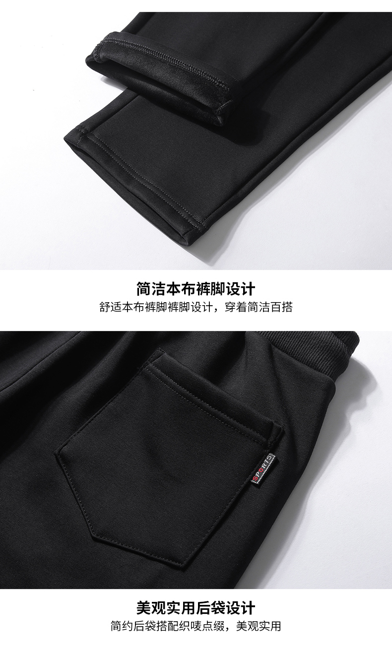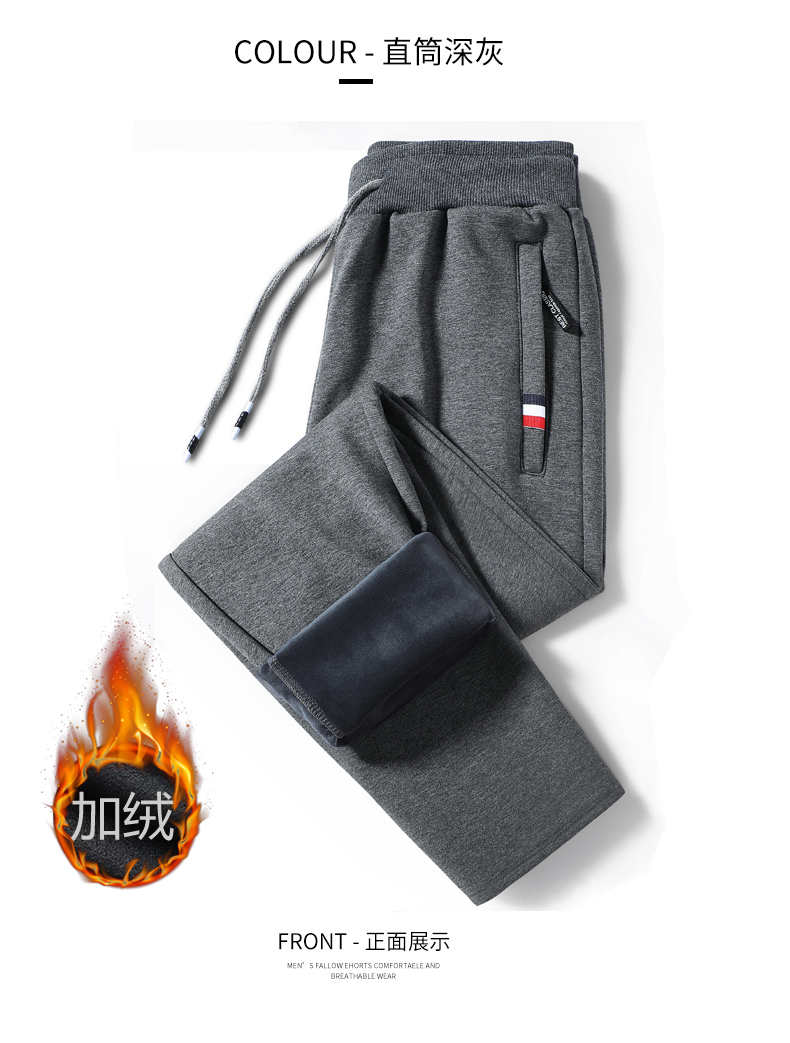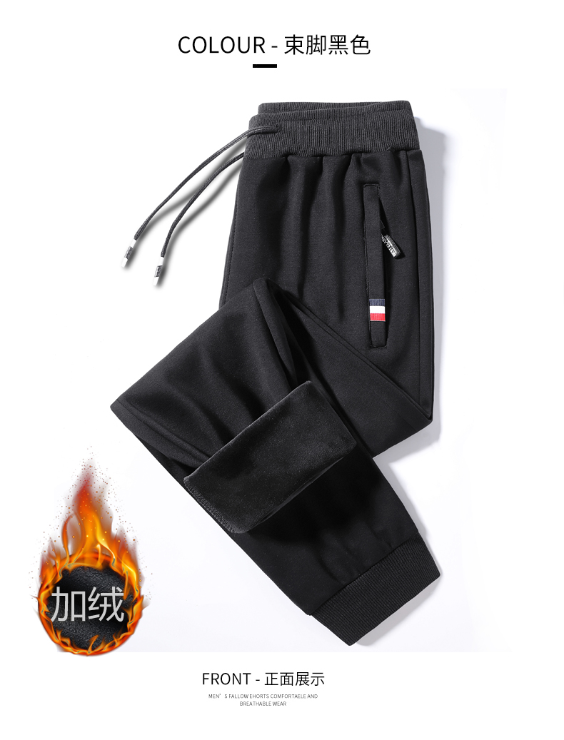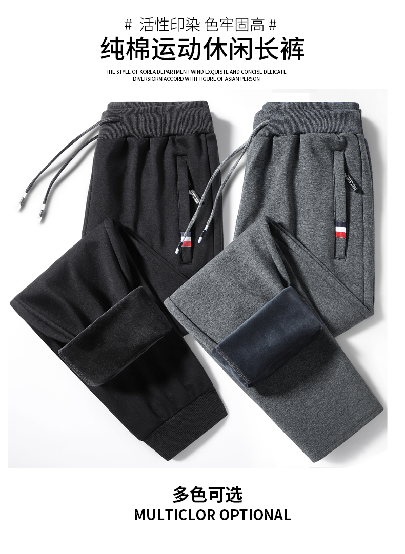 新款男士纯色纯棉加绒加厚保暖百搭休闲裤