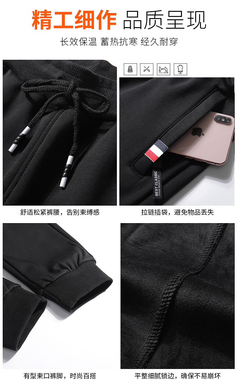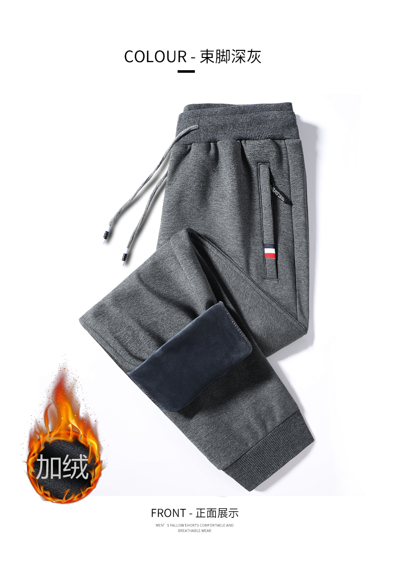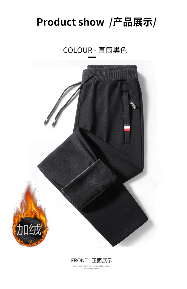 新款男士纯色纯棉加绒加厚保暖百搭休闲裤