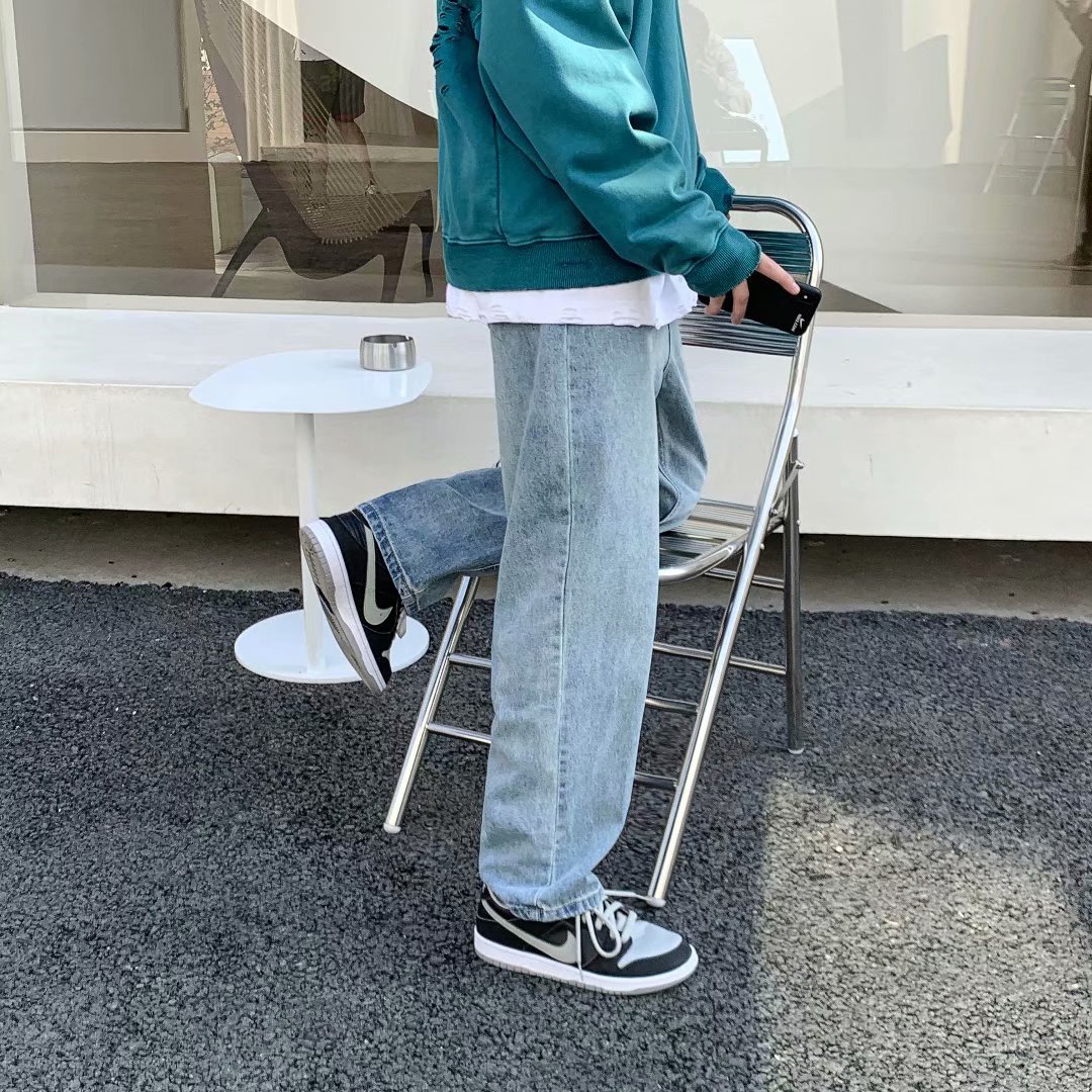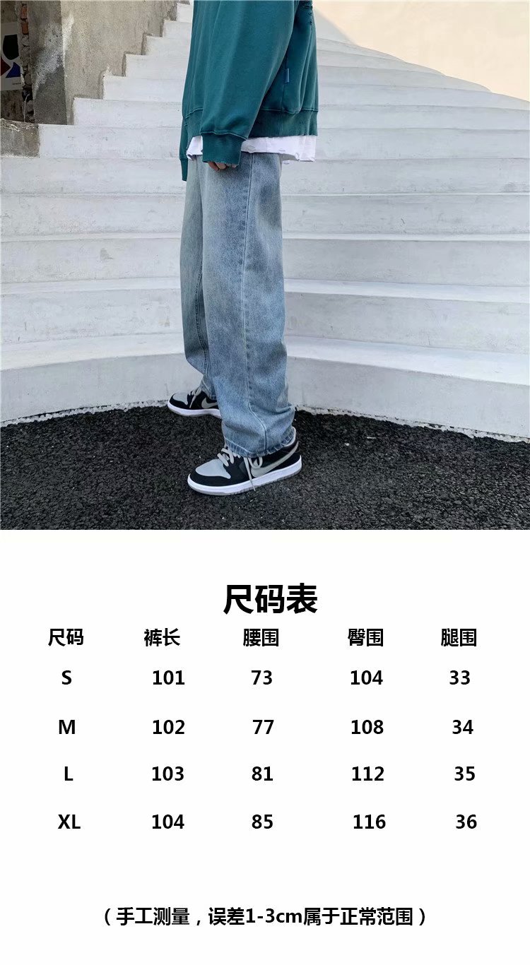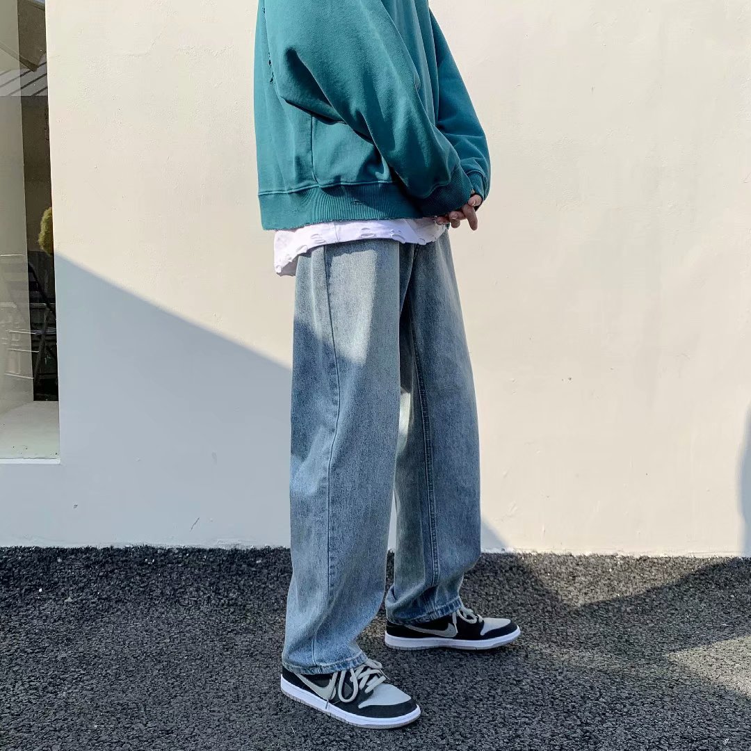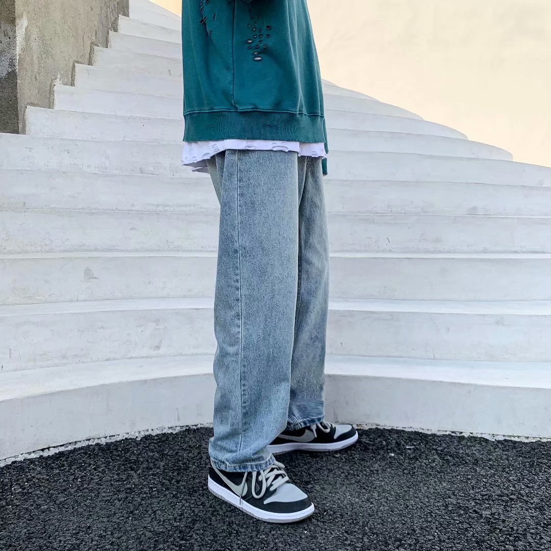实拍坠感阔腿牛仔裤日系潮牌复古宽松直筒休闲长裤韩版潮流男装裤
