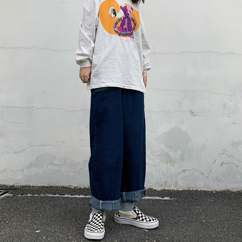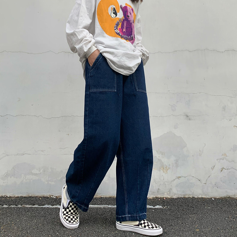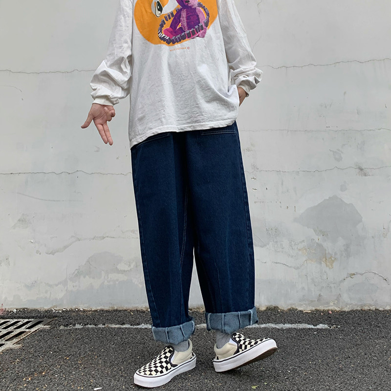 实拍 控价44 日系复古宽松灯笼裤直筒阔腿牛仔裤ins潮流休闲长裤