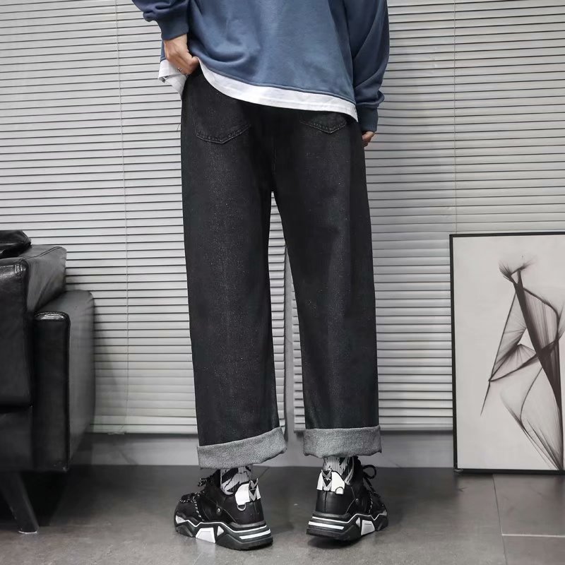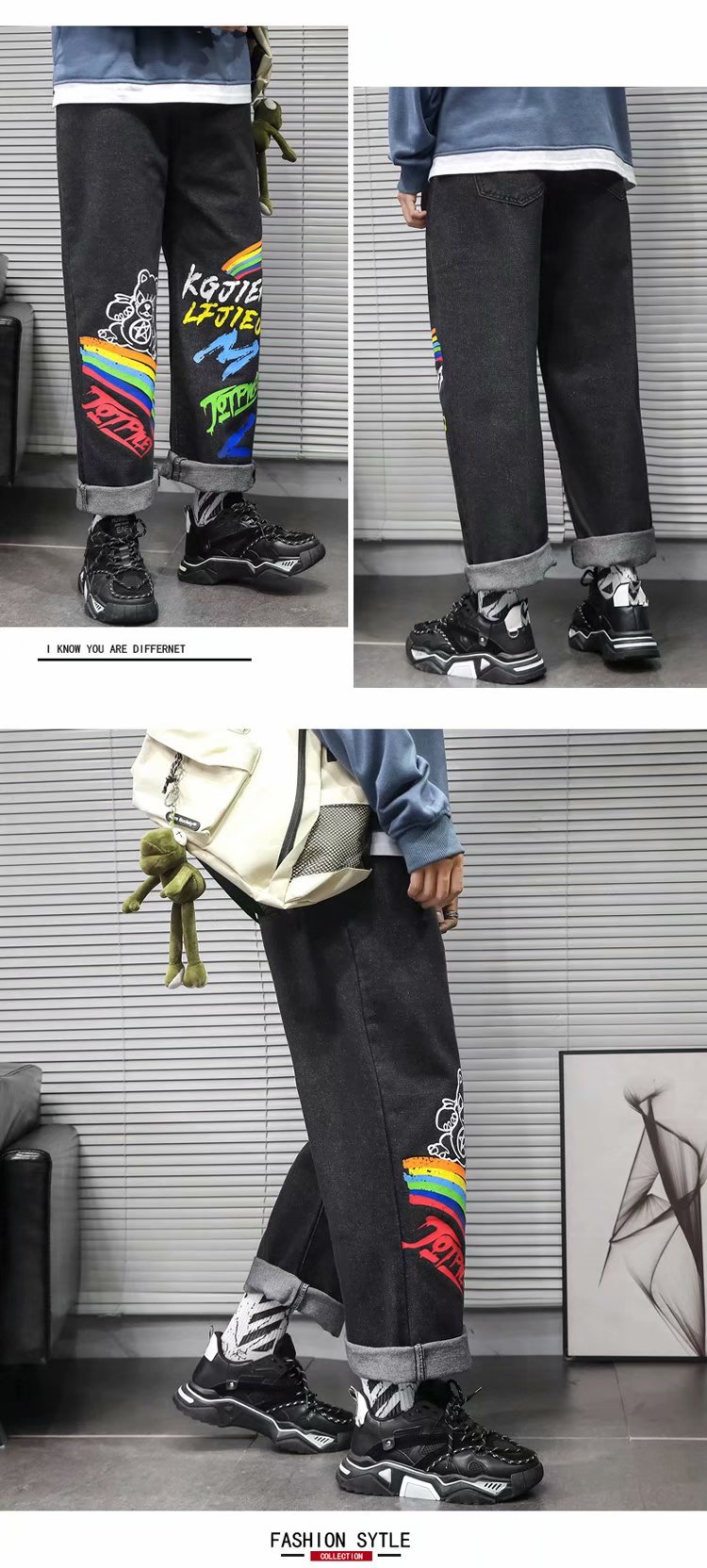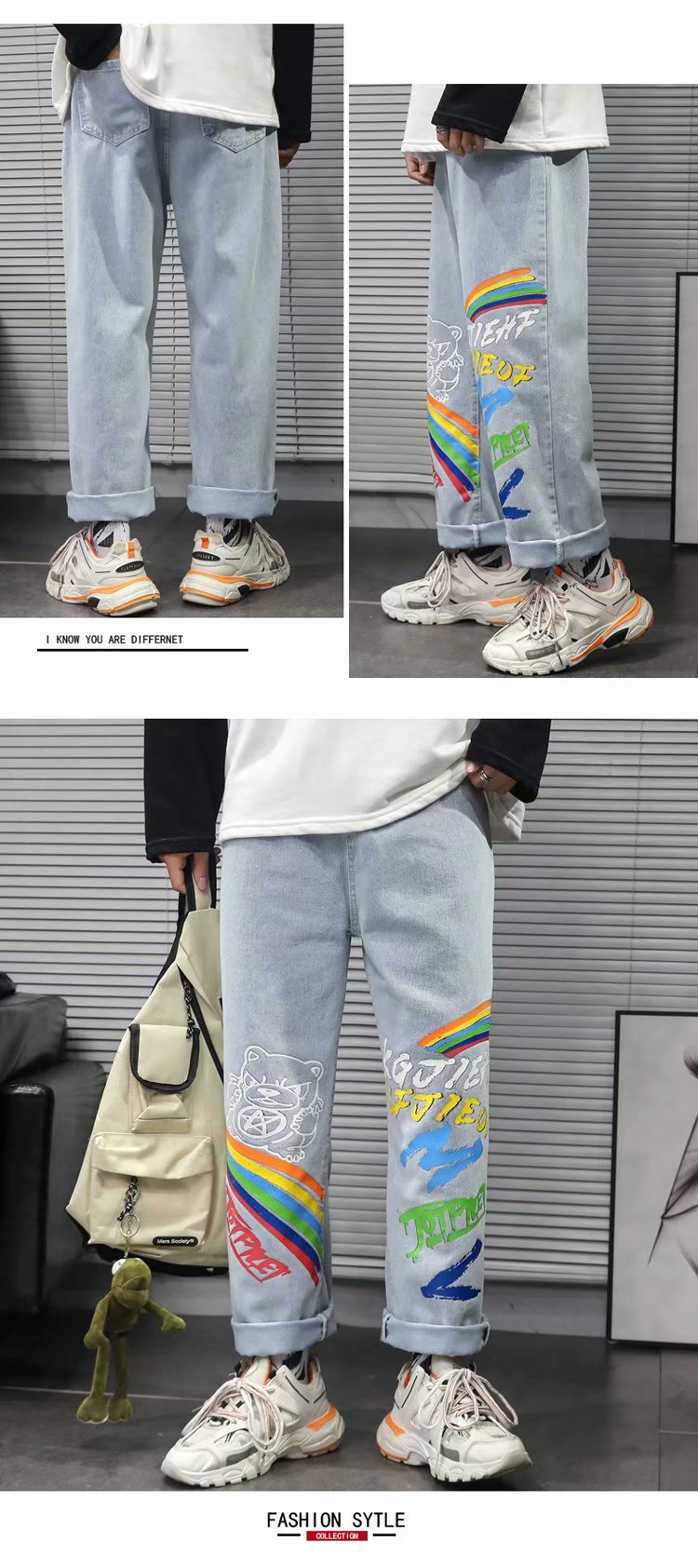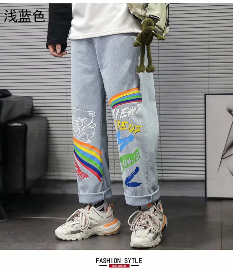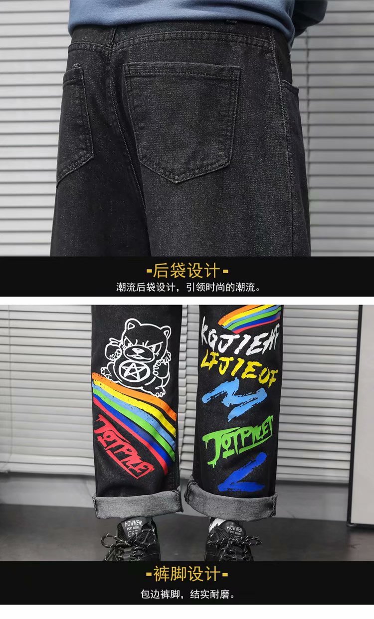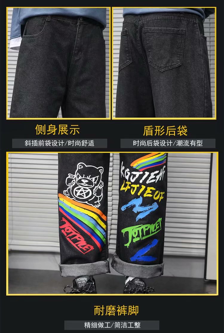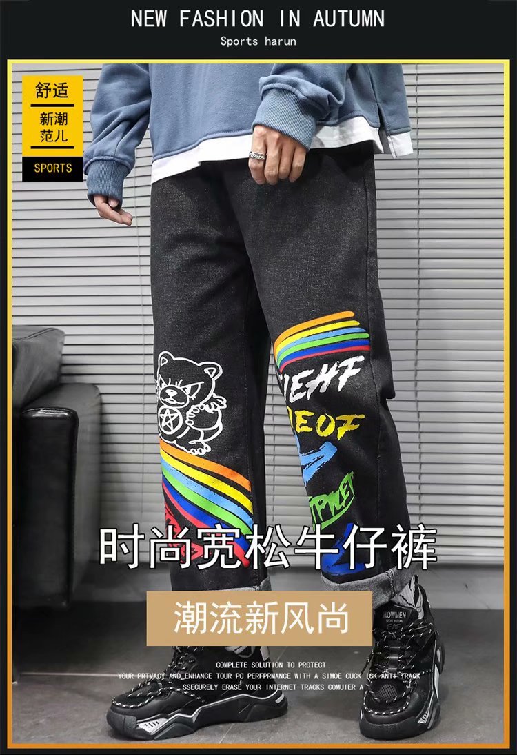 实拍 宽松牛仔裤男潮牌个性百搭裤子韩版潮流情侣装直筒阔腿长裤
