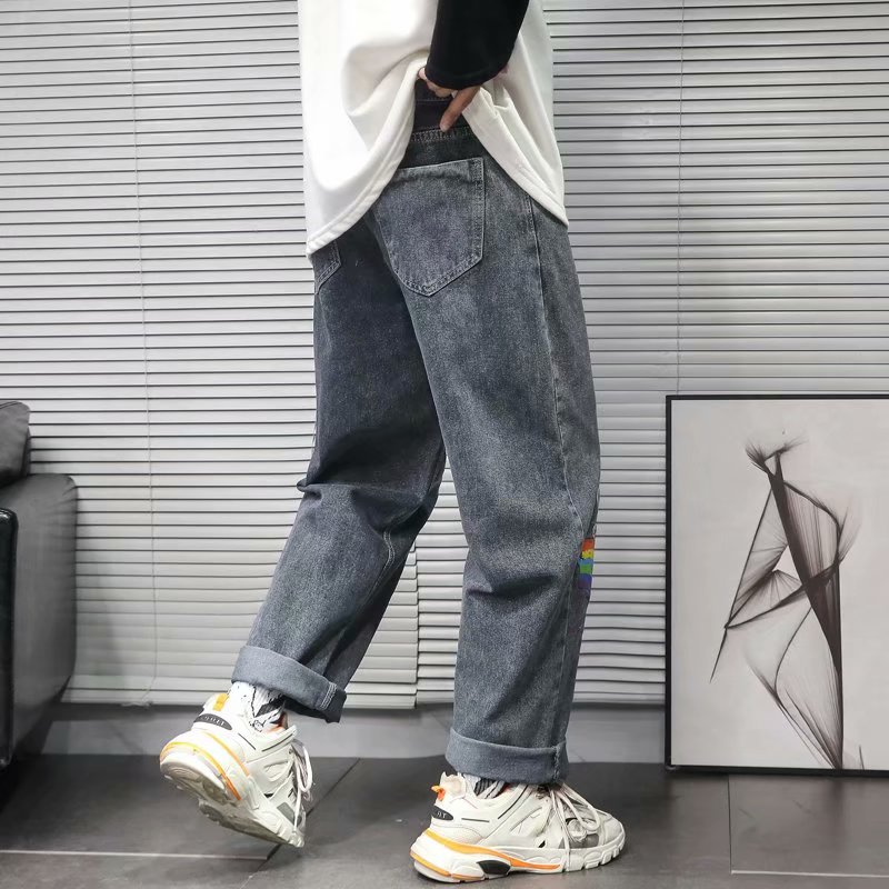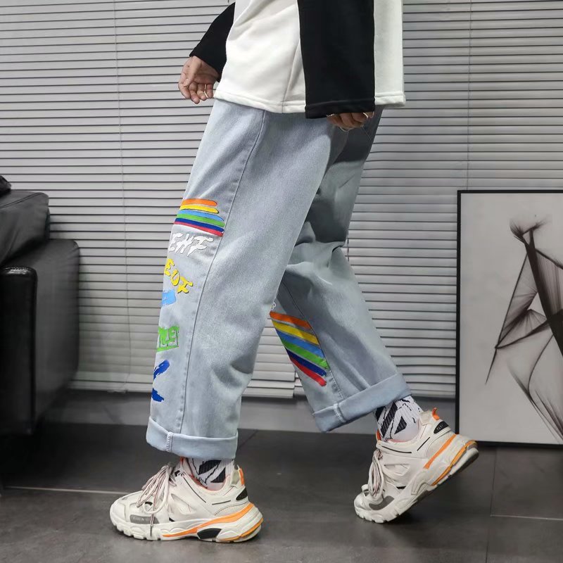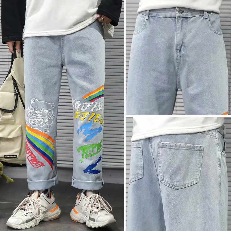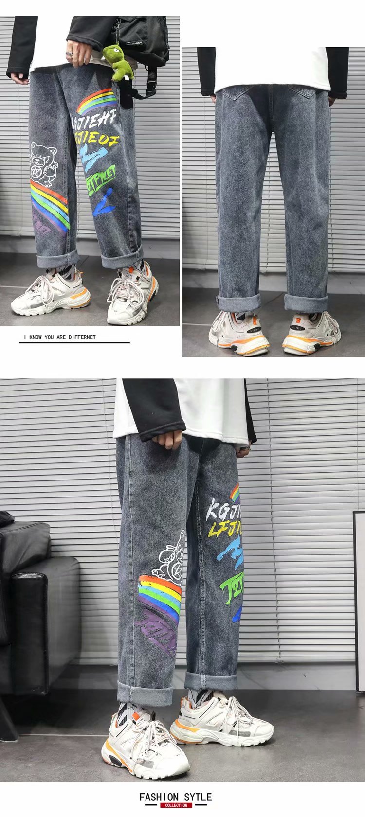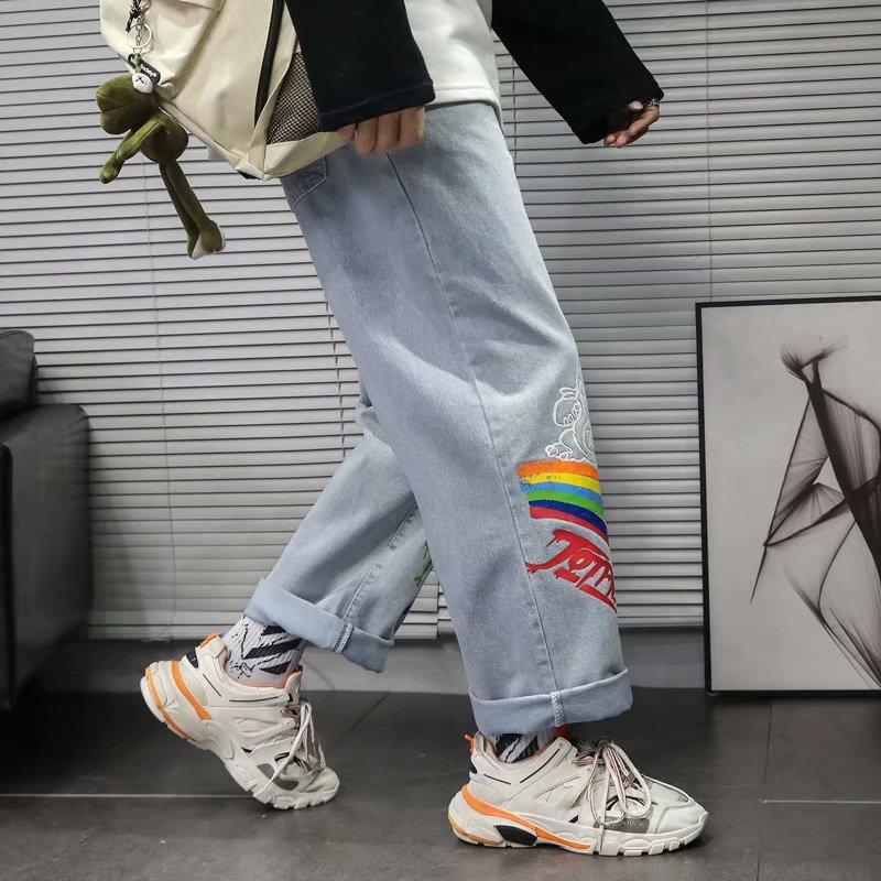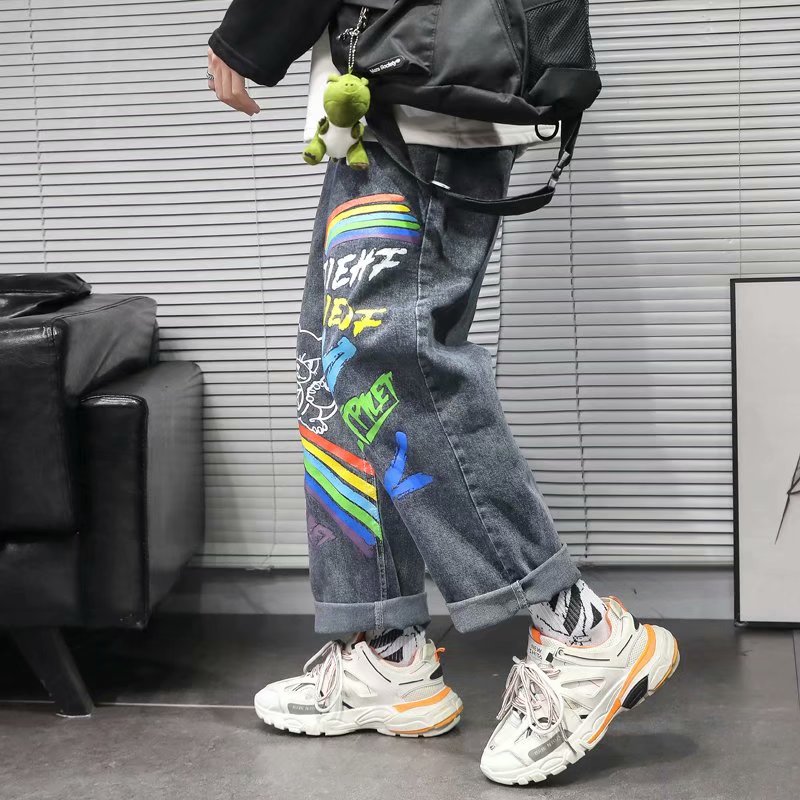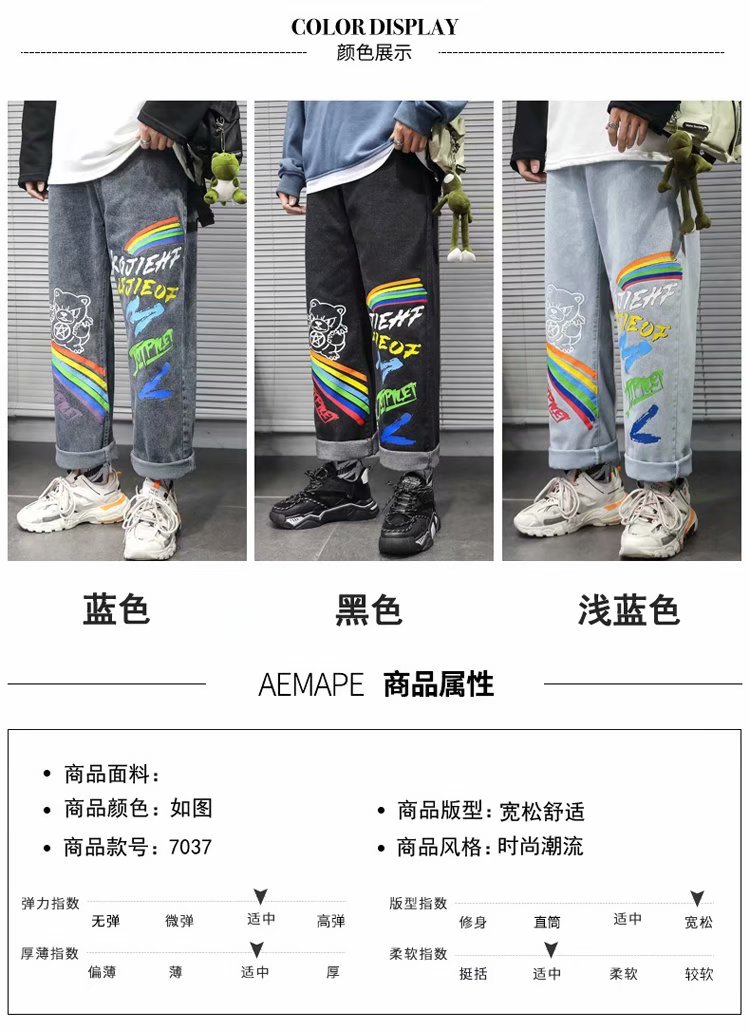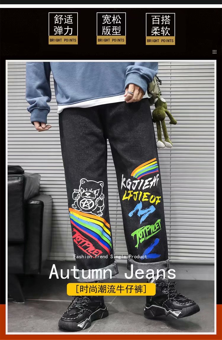 实拍 宽松牛仔裤男潮牌个性百搭裤子韩版潮流情侣装直筒阔腿长裤