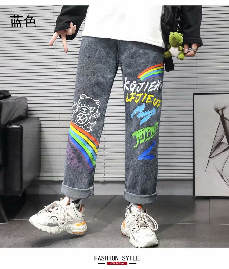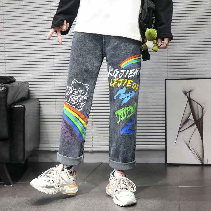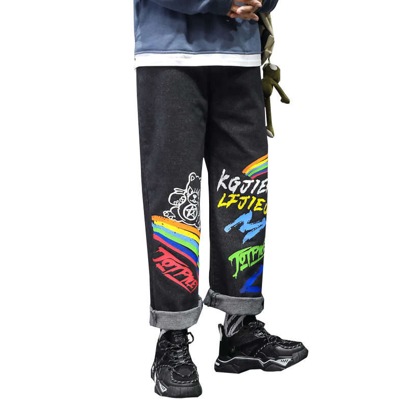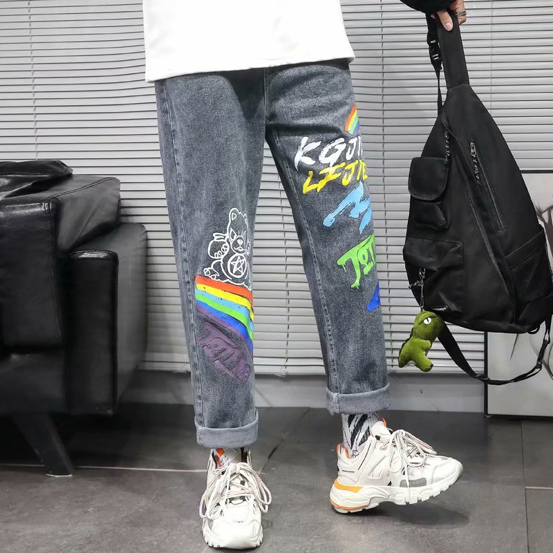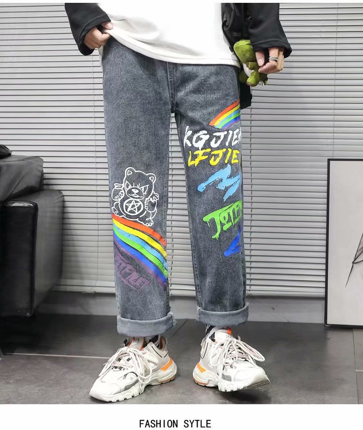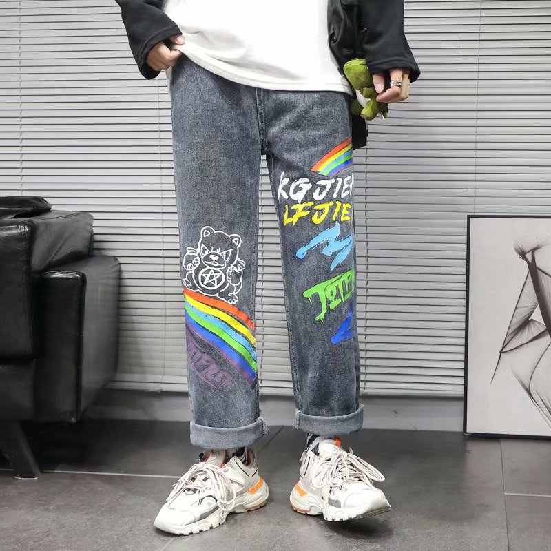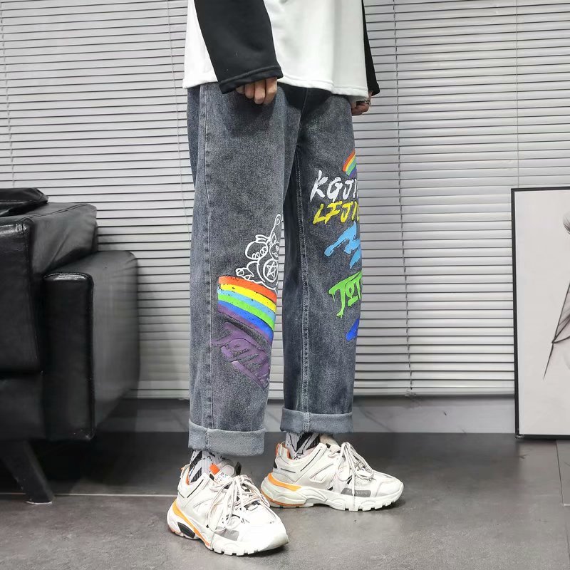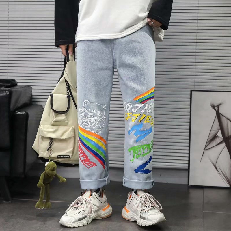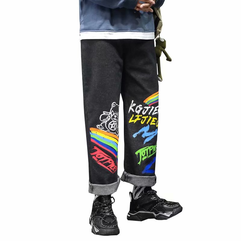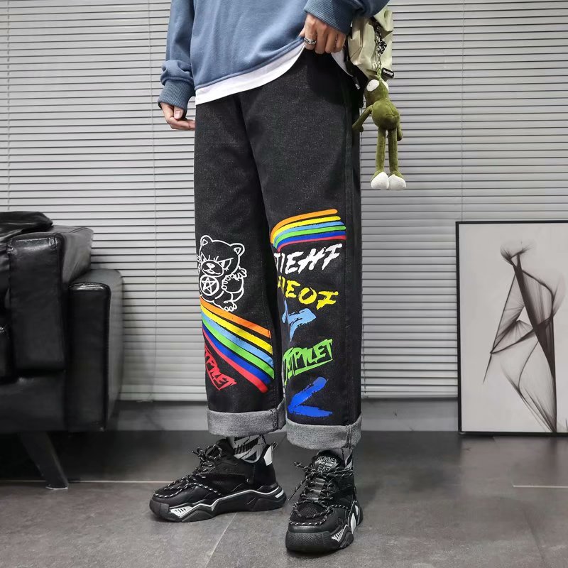 实拍 宽松牛仔裤男潮牌个性百搭裤子韩版潮流情侣装直筒阔腿长裤