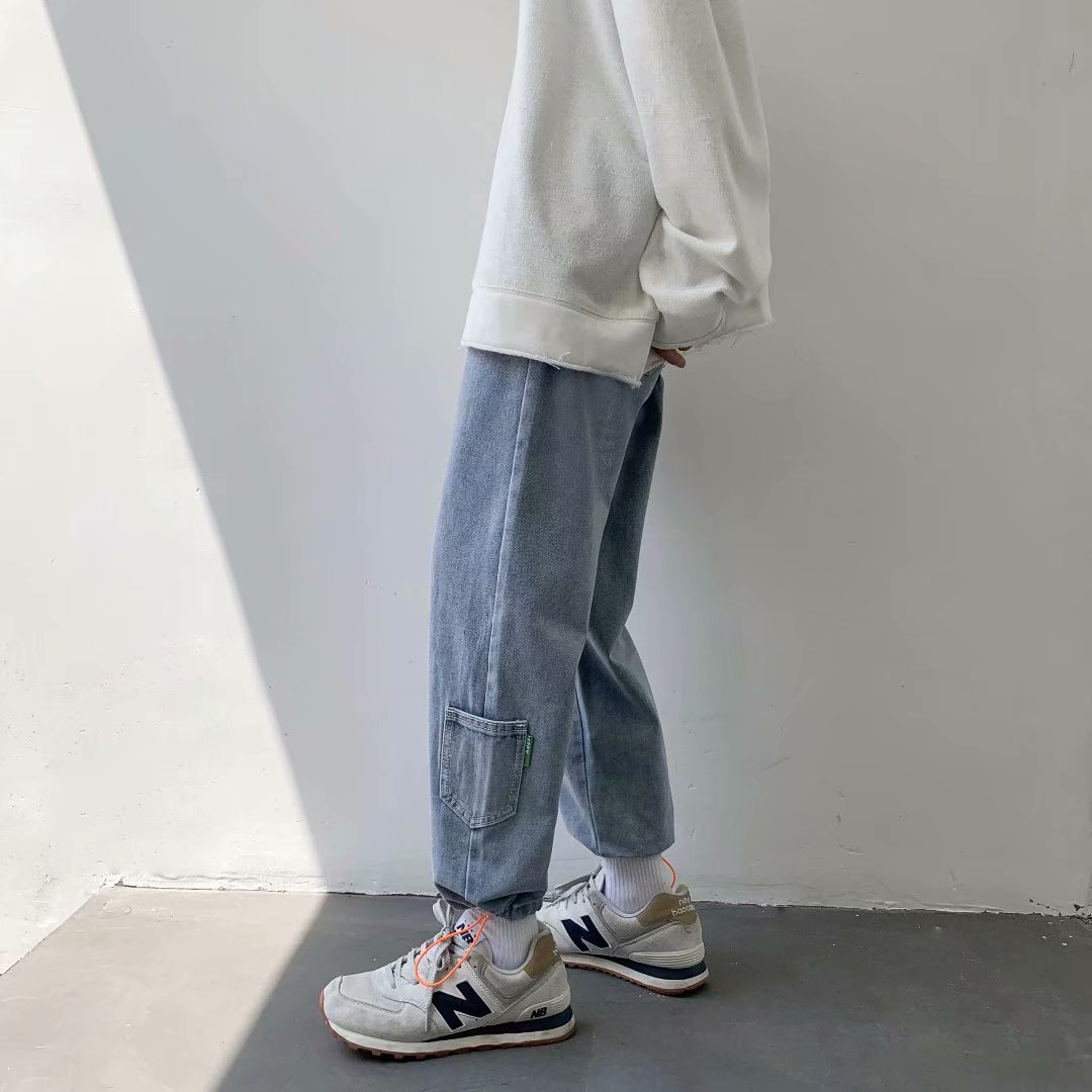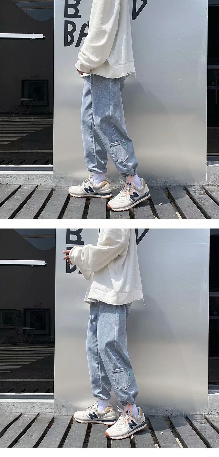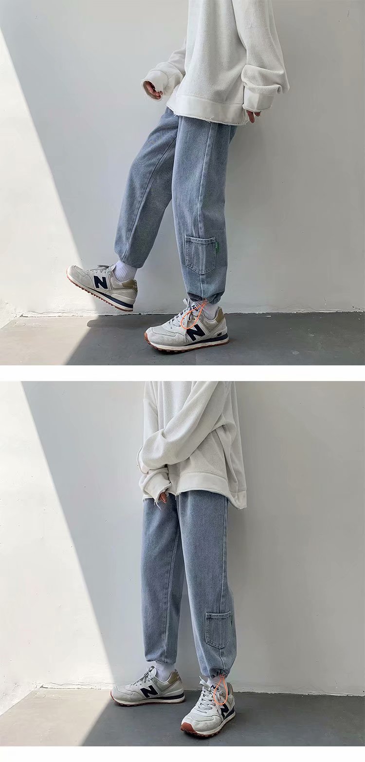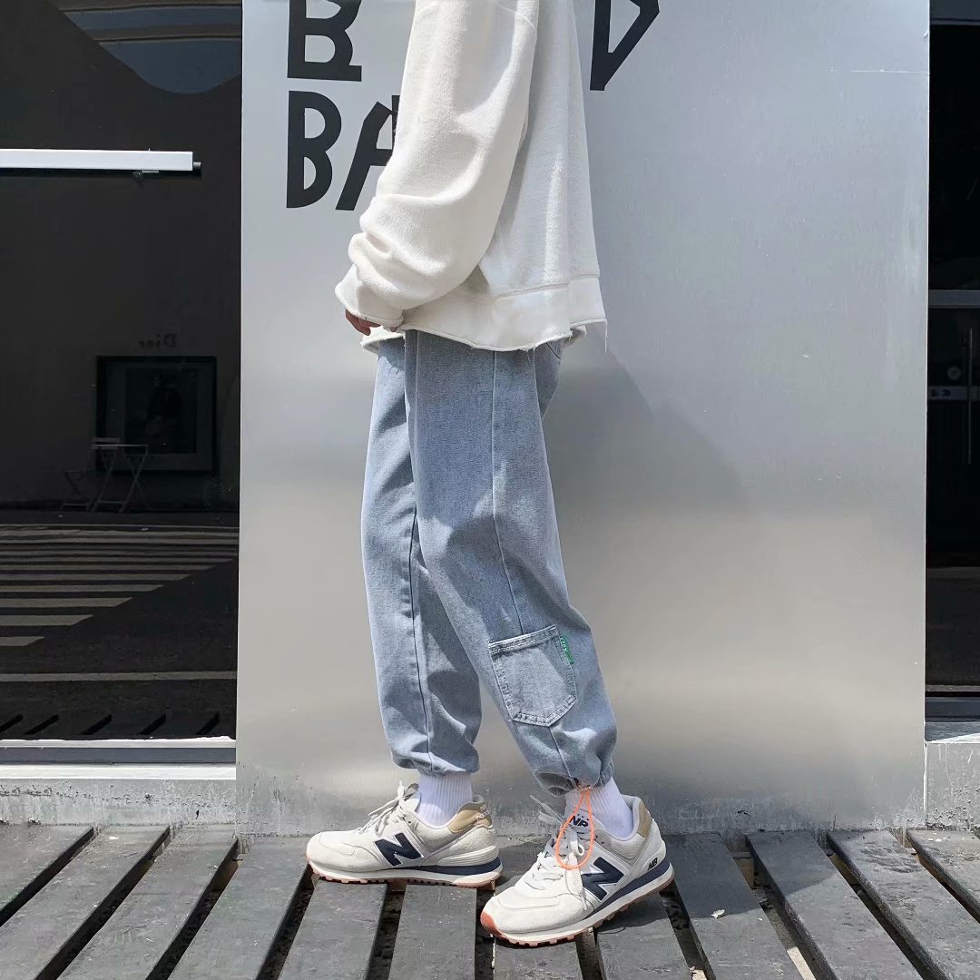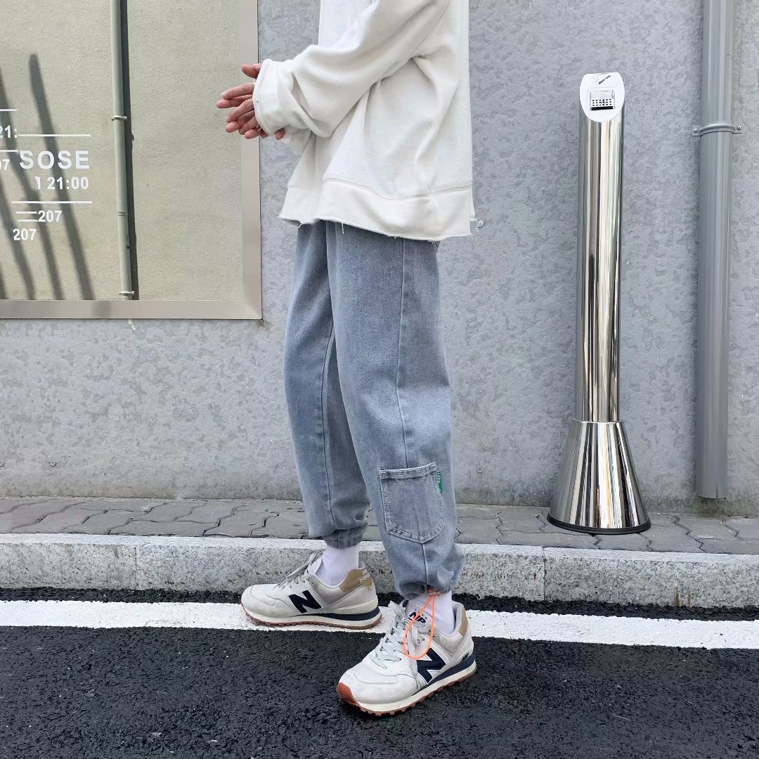 实拍 韩版宽松纯色港风百搭水洗牛仔上衣男日系宽松休闲束脚裤潮