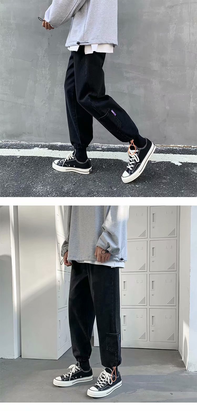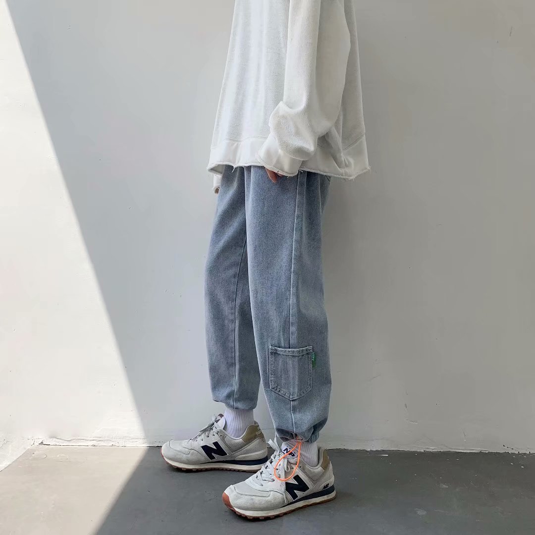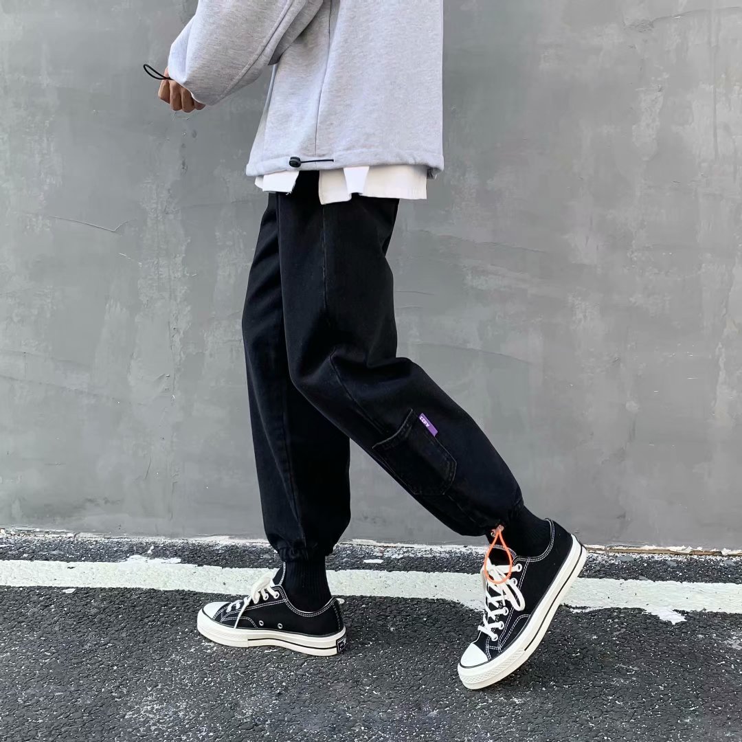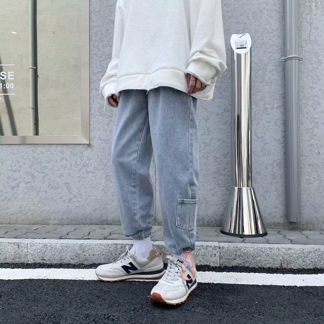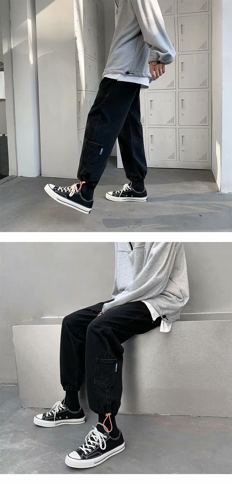 实拍 韩版宽松纯色港风百搭水洗牛仔上衣男日系宽松休闲束脚裤潮