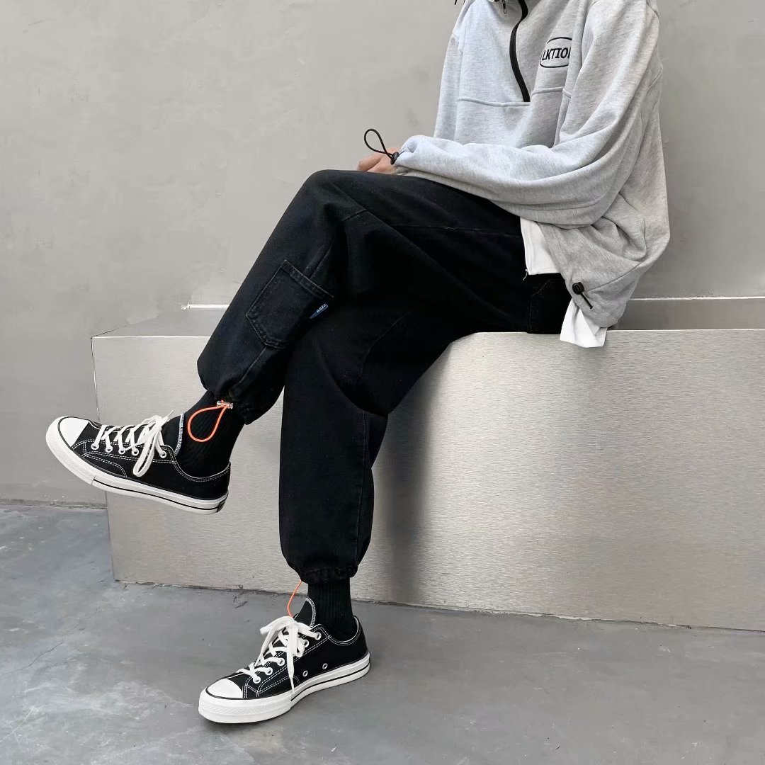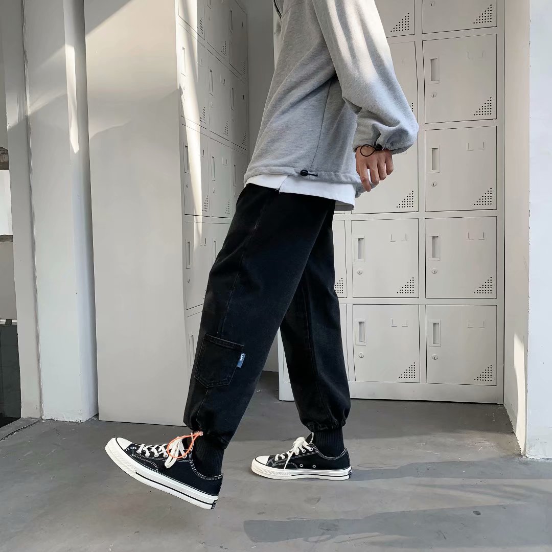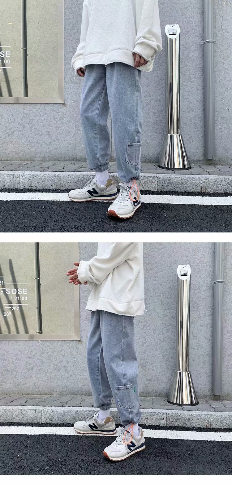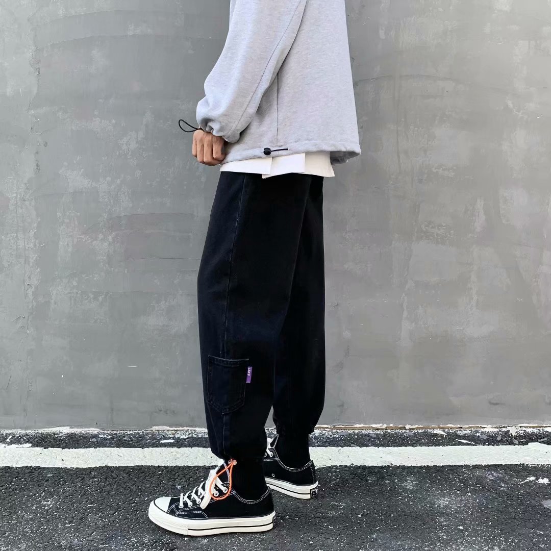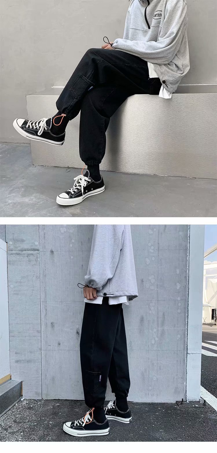 实拍 韩版宽松纯色港风百搭水洗牛仔上衣男日系宽松休闲束脚裤潮