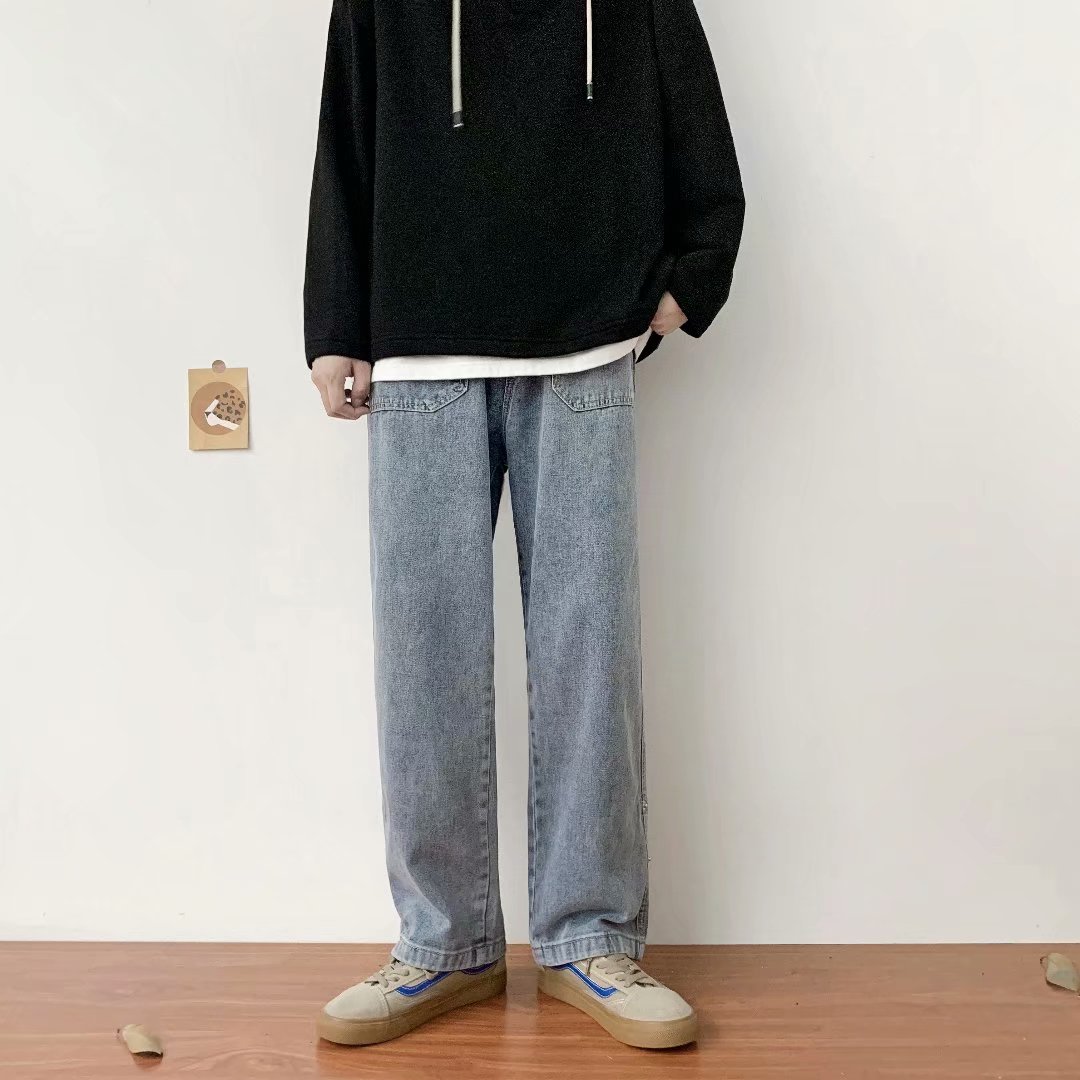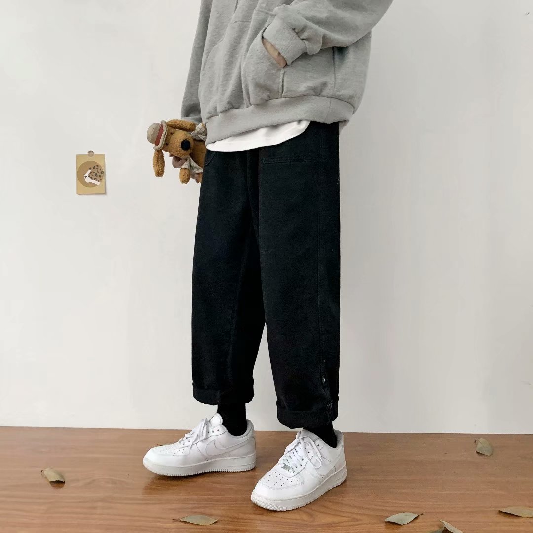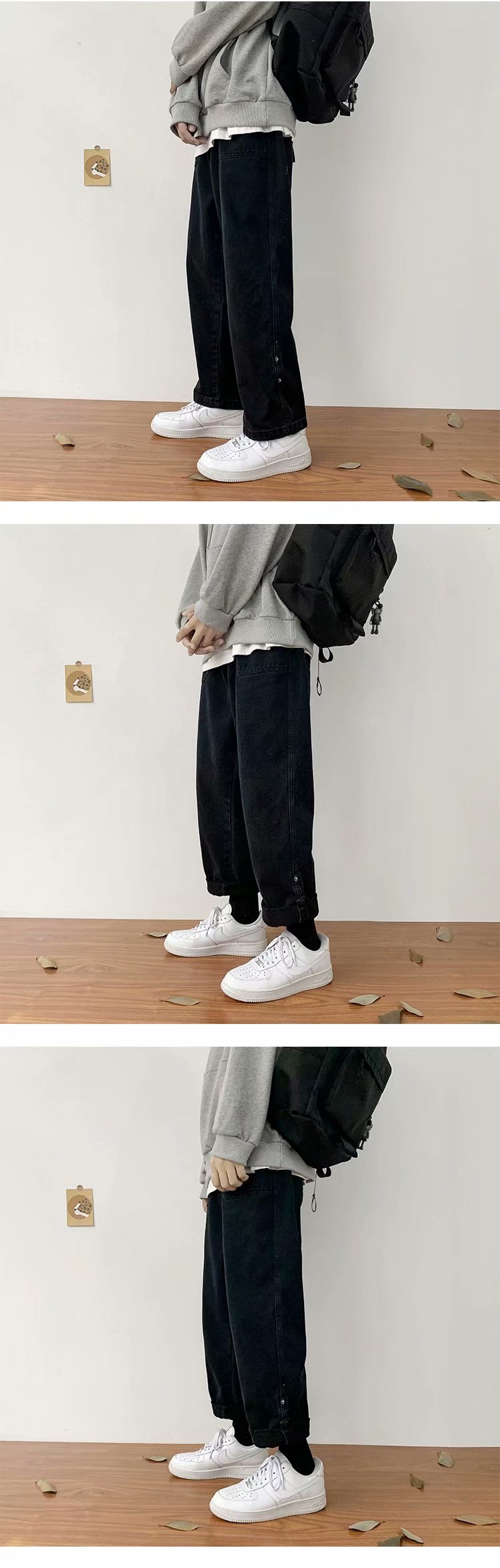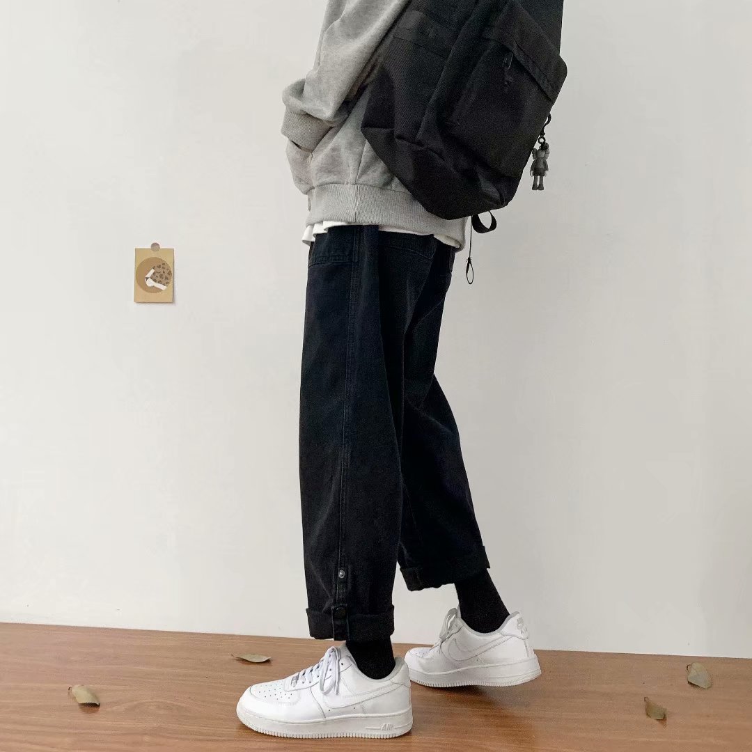 实拍 日系简约港风纯色百搭街头水洗牛仔裤男韩版休闲宽松九分裤