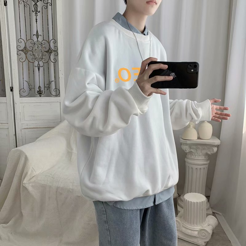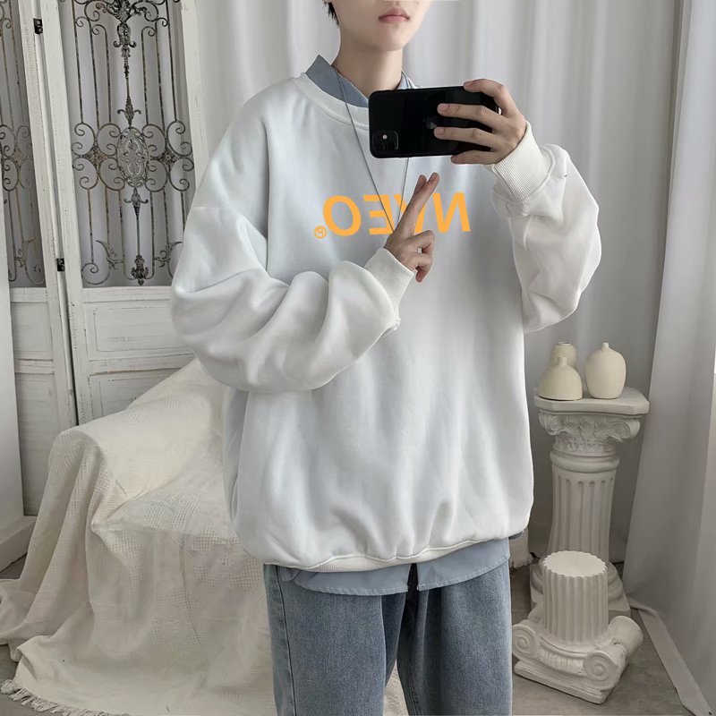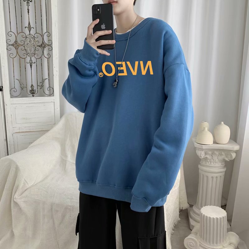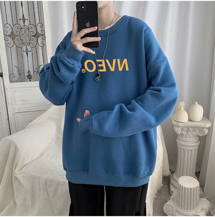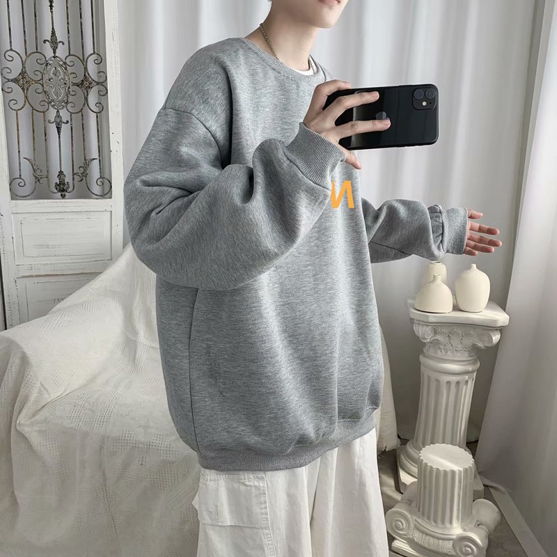 实拍流行韩版百搭青年新款原宿男套头慵懒羊羔绒潮流卫衣日系时尚