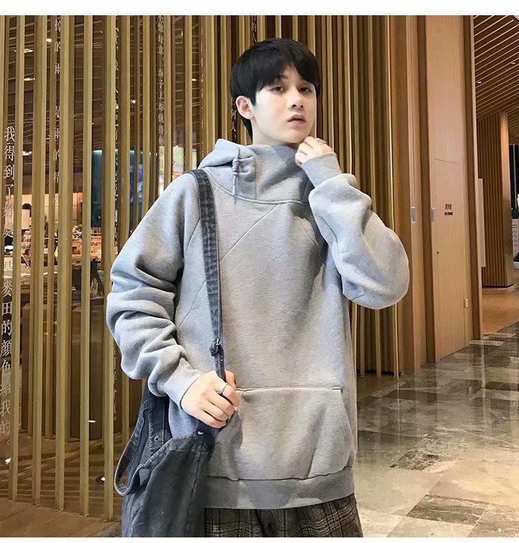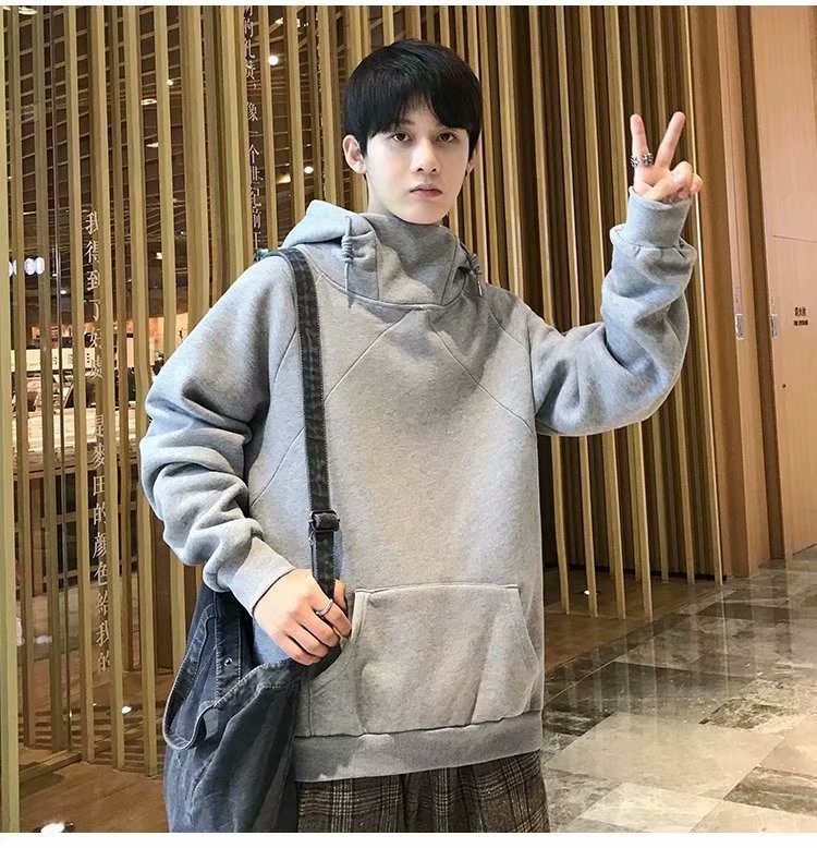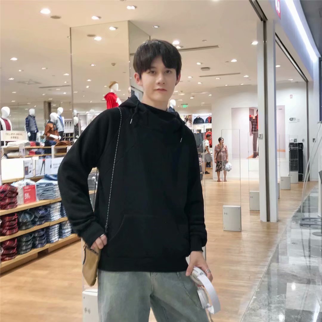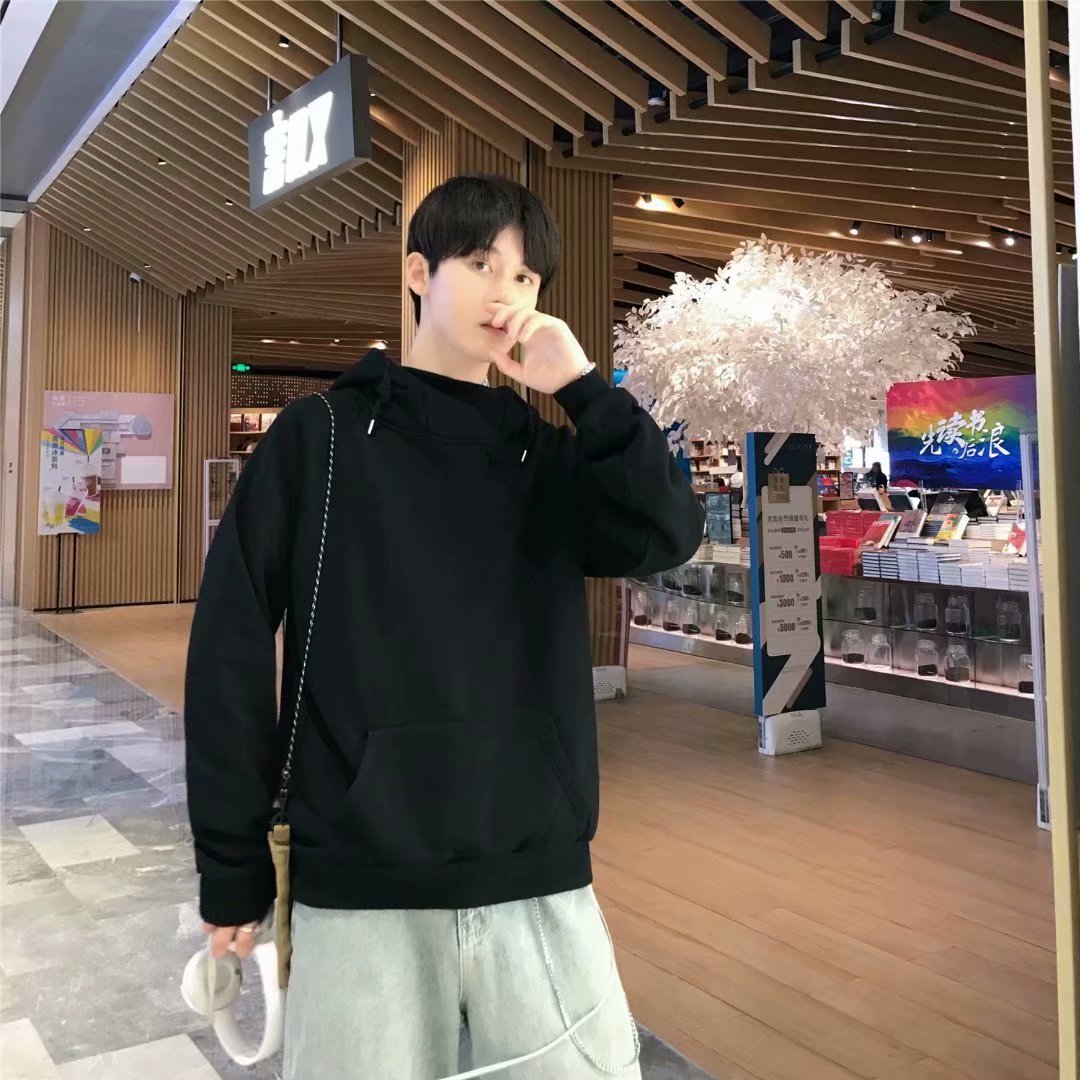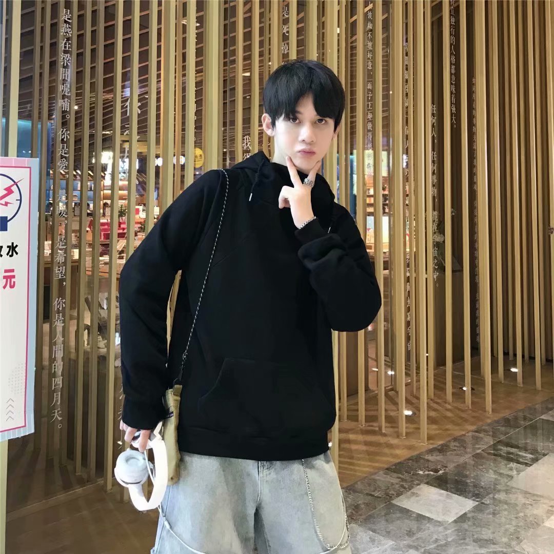 实拍 日系简约休闲百搭宽松街头加厚上衣男韩版港风百搭潮流卫衣
