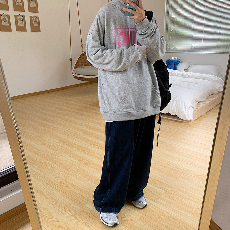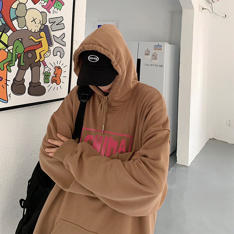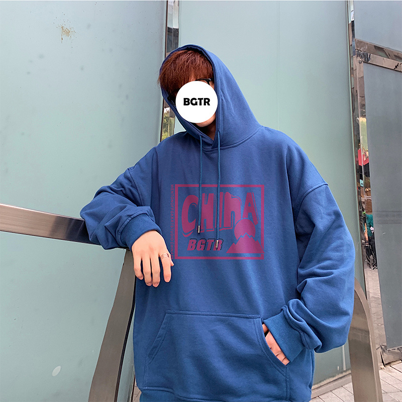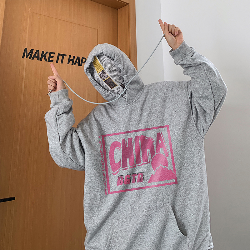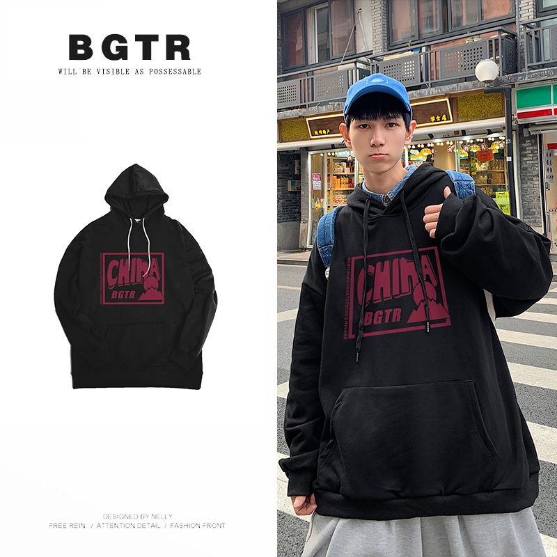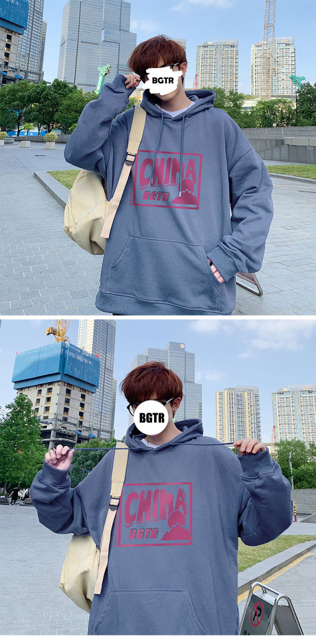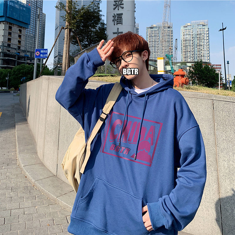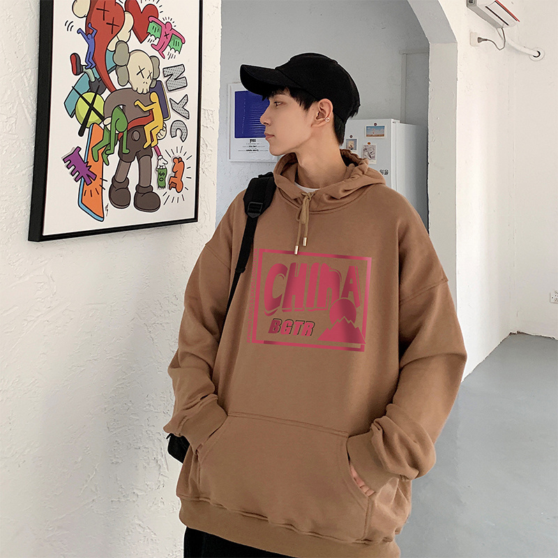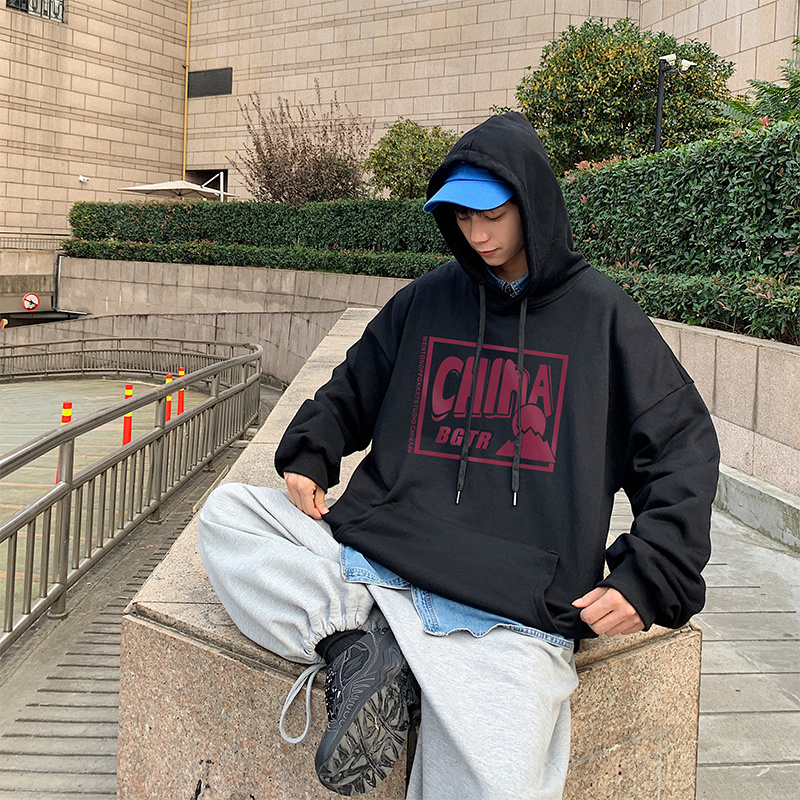 实拍 港风百搭潮流印花宽松连帽上衣男韩版日系休闲简约卫衣