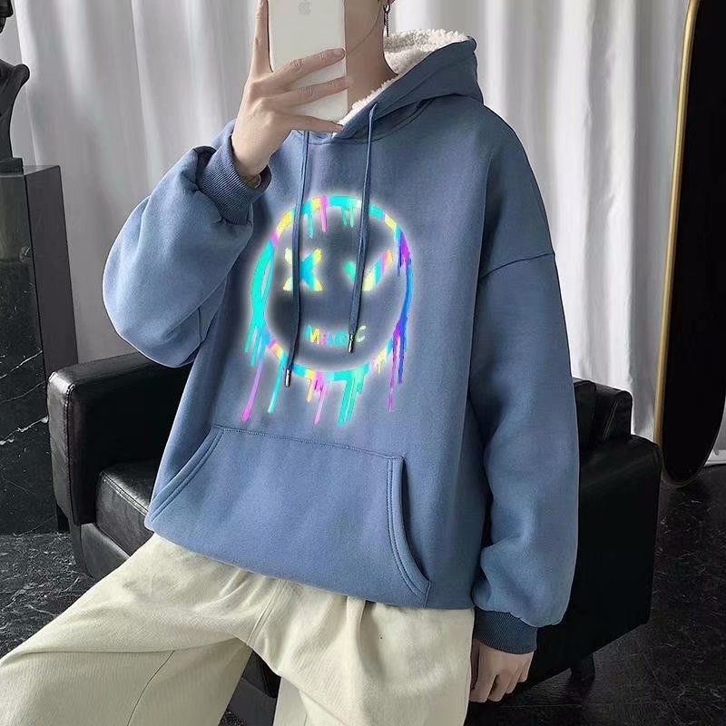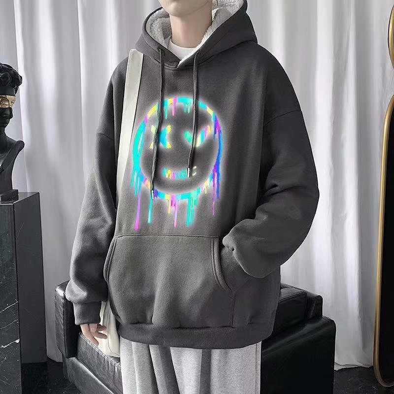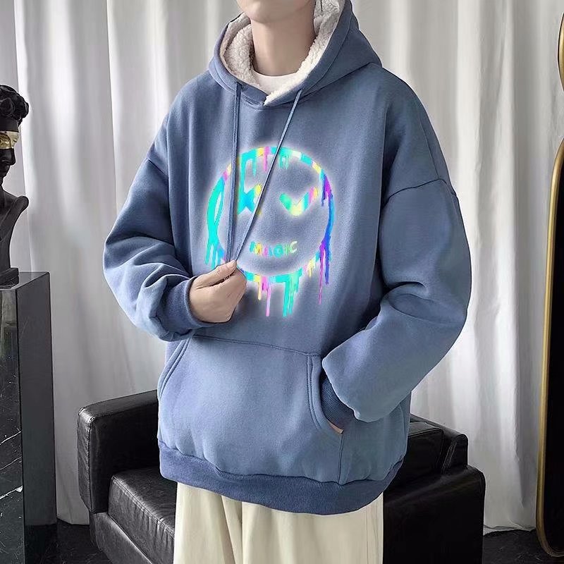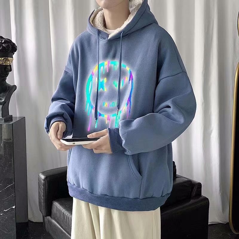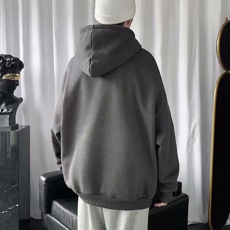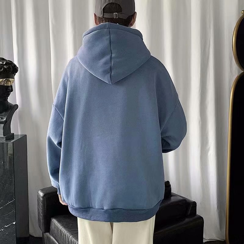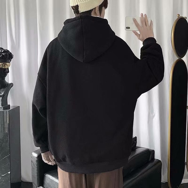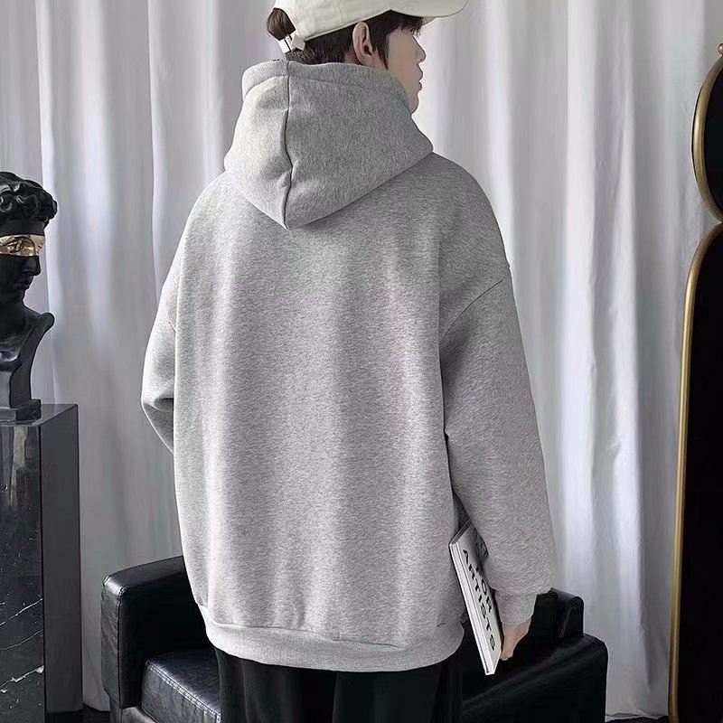 实拍男慵懒百搭卫衣日系套头ins新款青年潮流羊羔绒连帽流行文艺