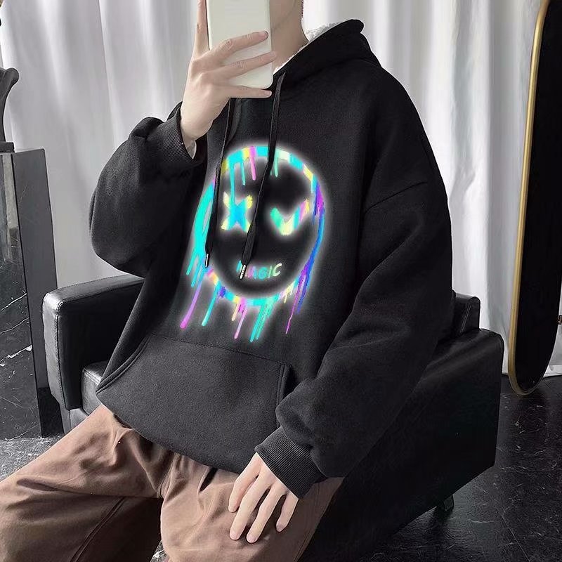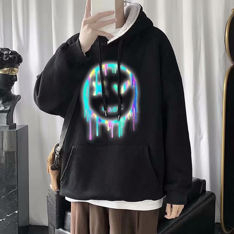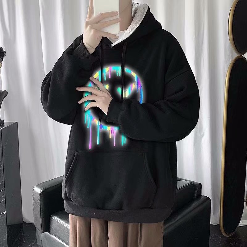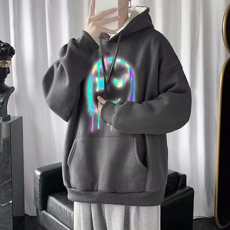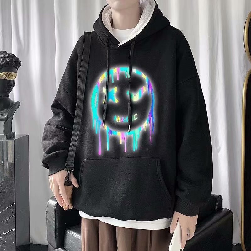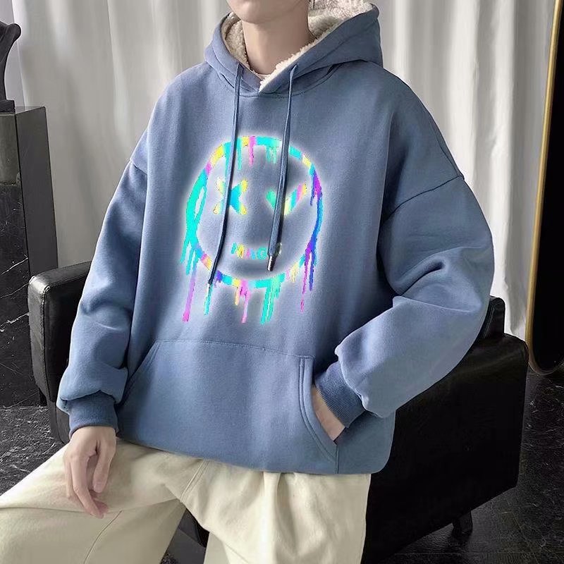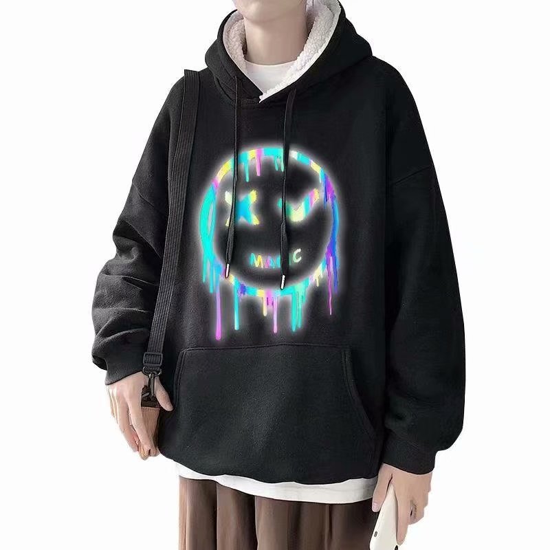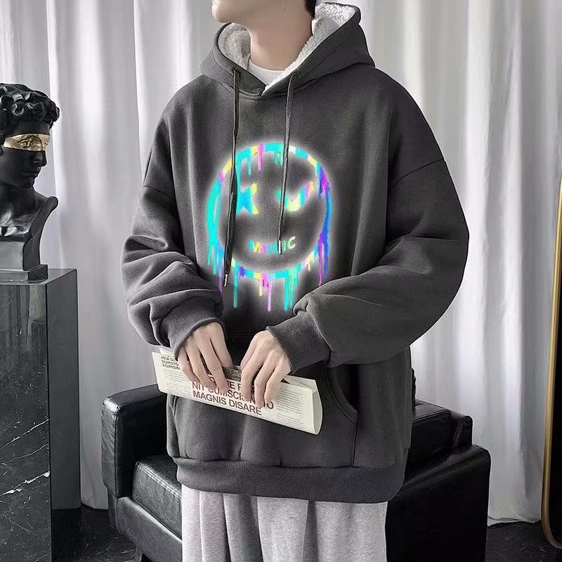 实拍男慵懒百搭卫衣日系套头ins新款青年潮流羊羔绒连帽流行文艺