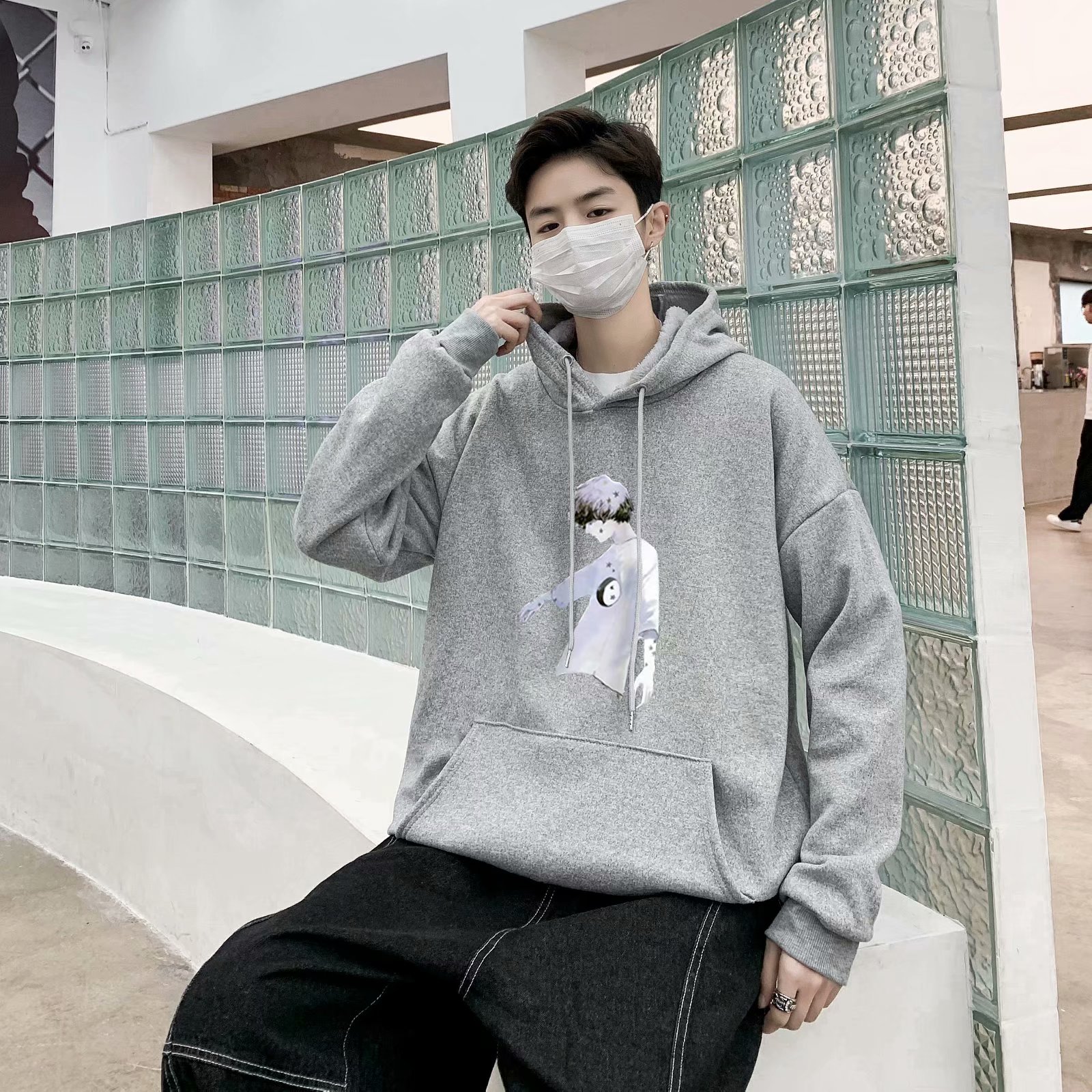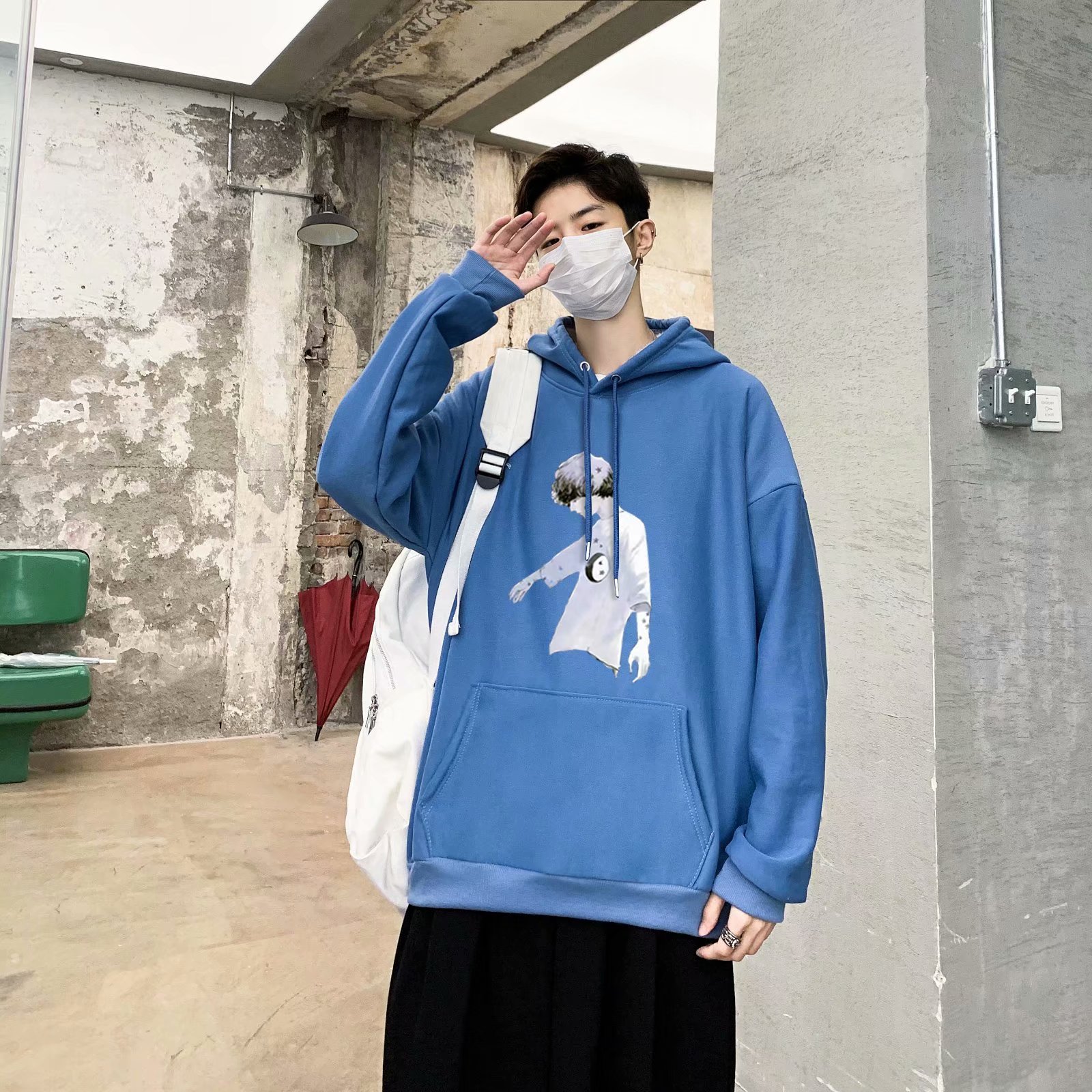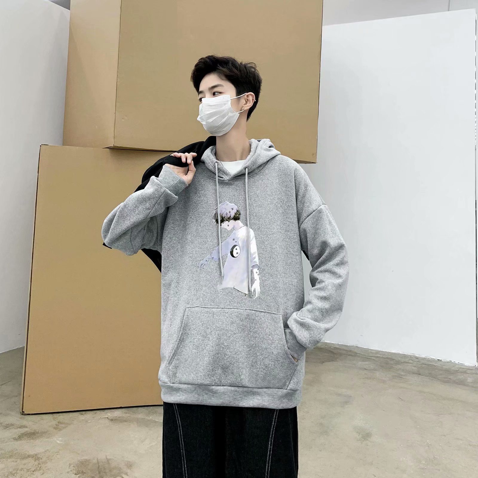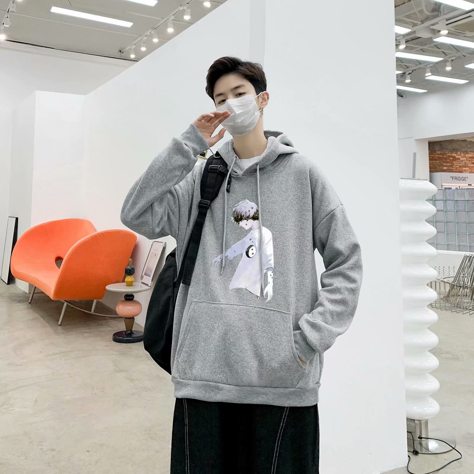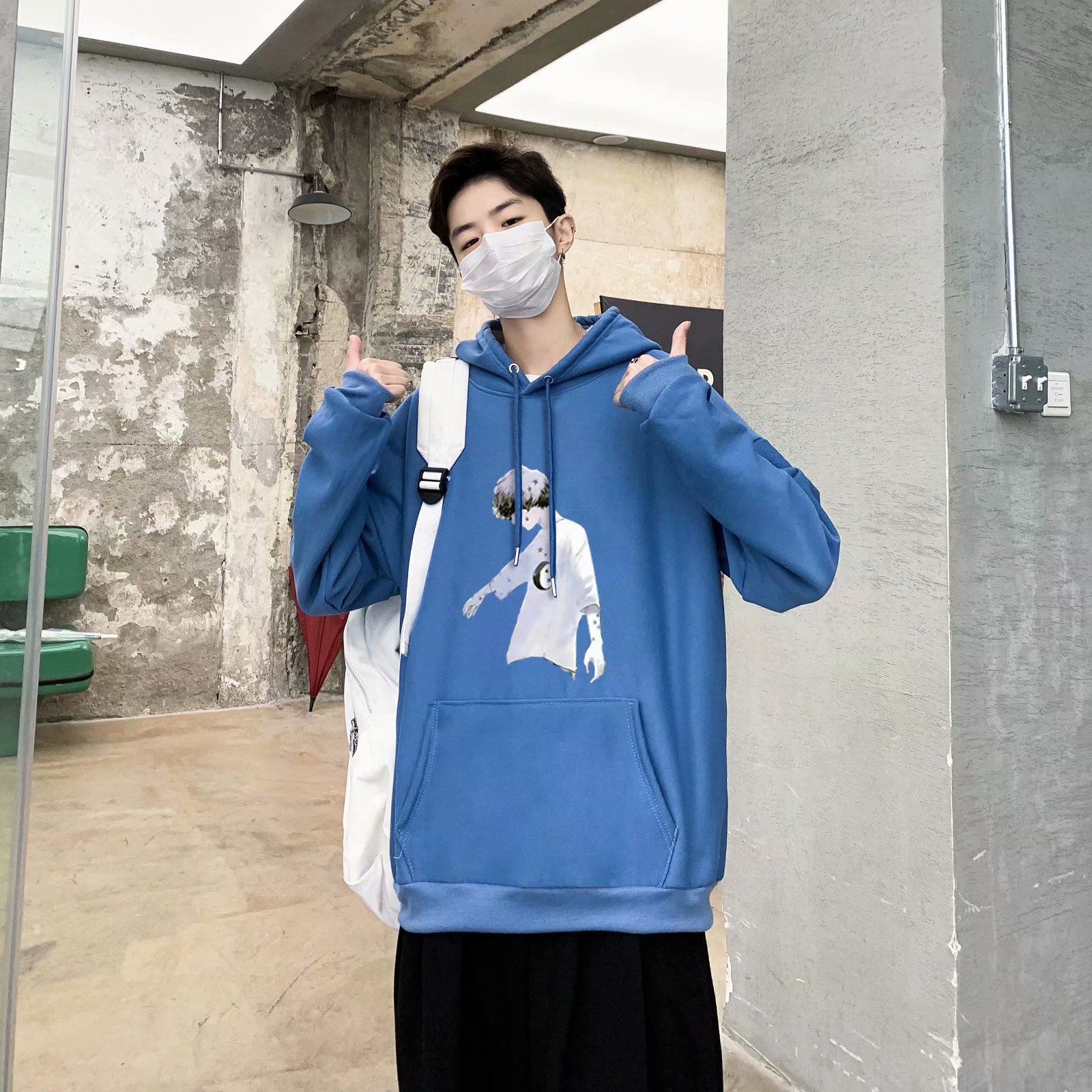 实拍 港风日系简约百搭宽松街头连帽加绒上衣韩版休闲运动卫衣潮