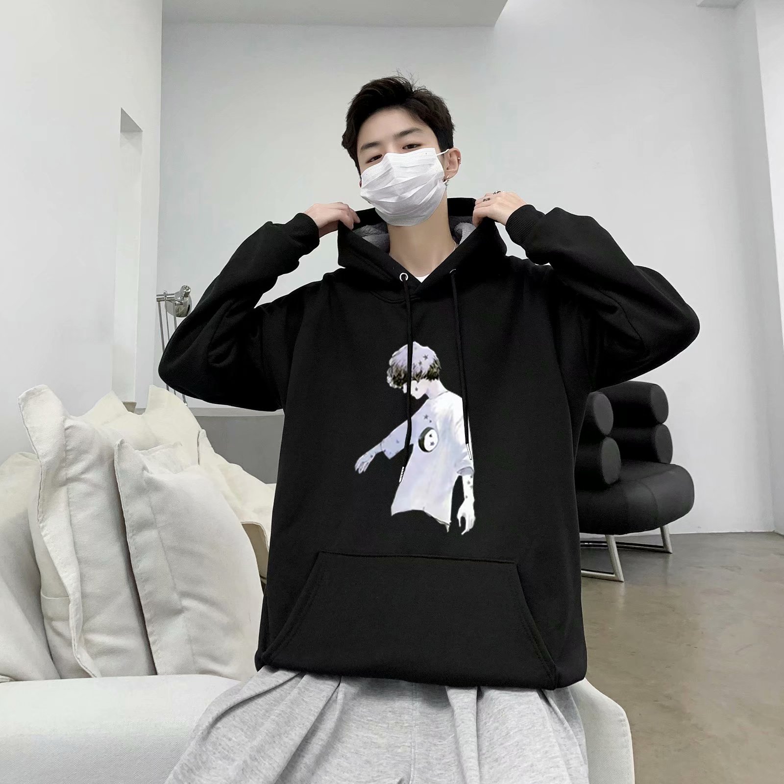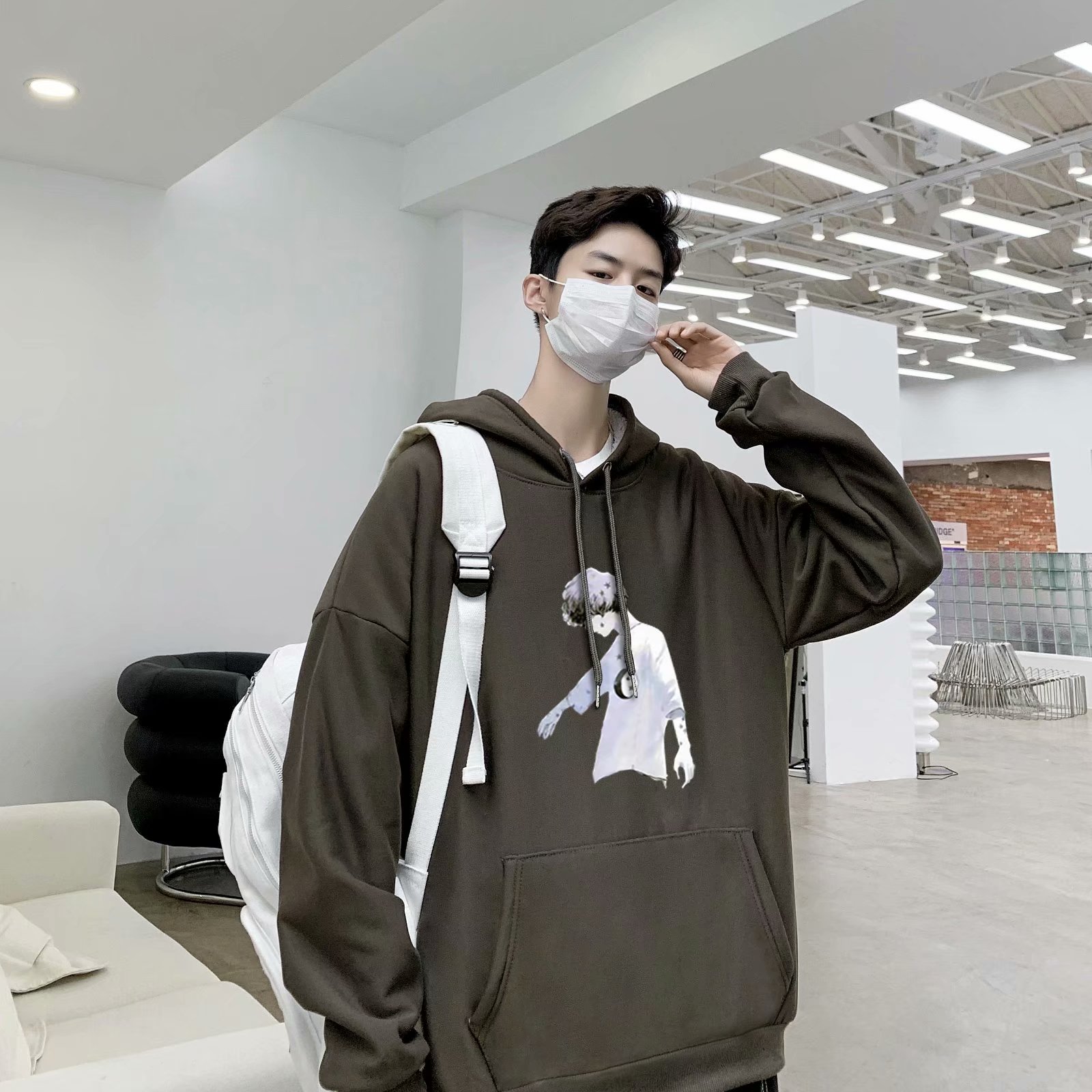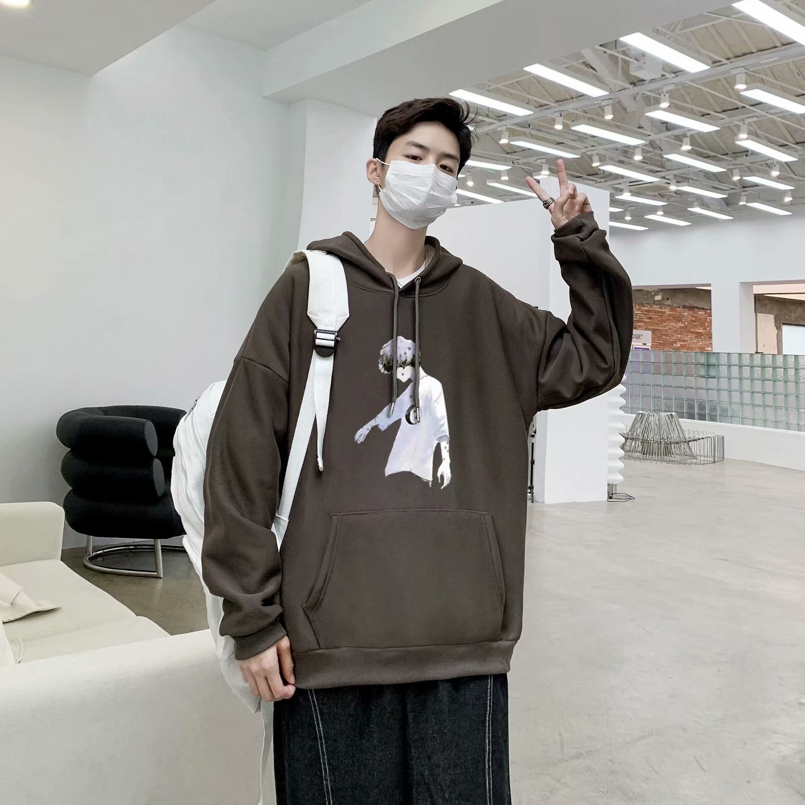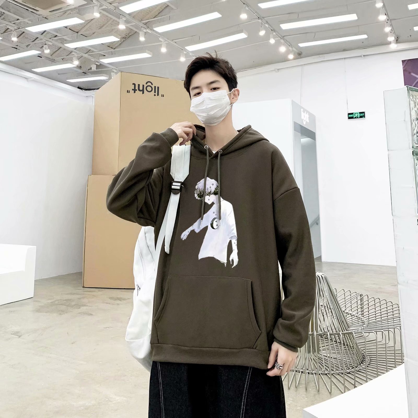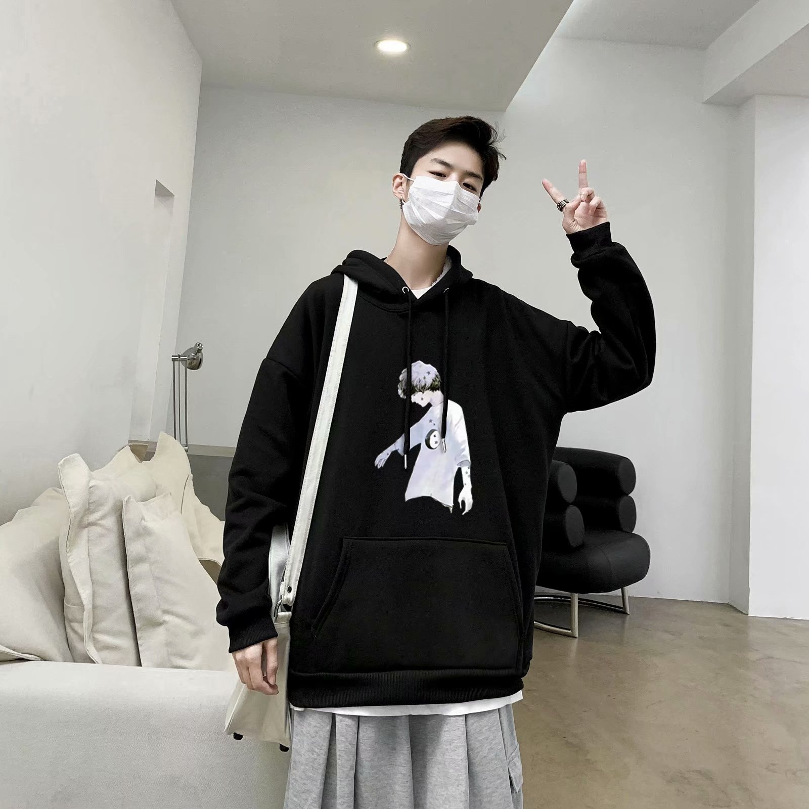 实拍 港风日系简约百搭宽松街头连帽加绒上衣韩版休闲运动卫衣潮