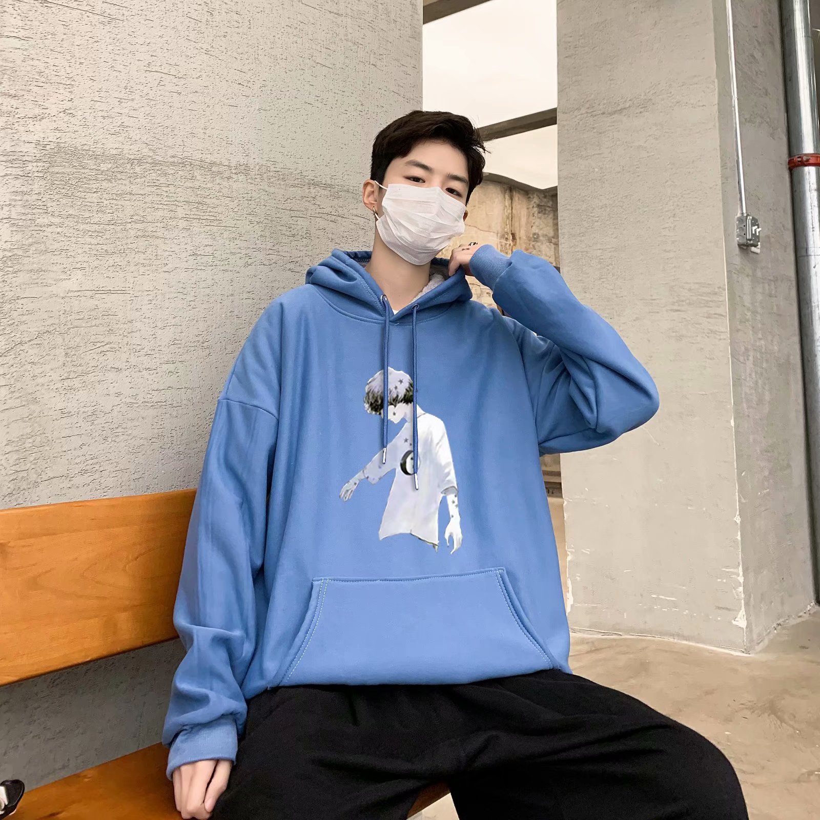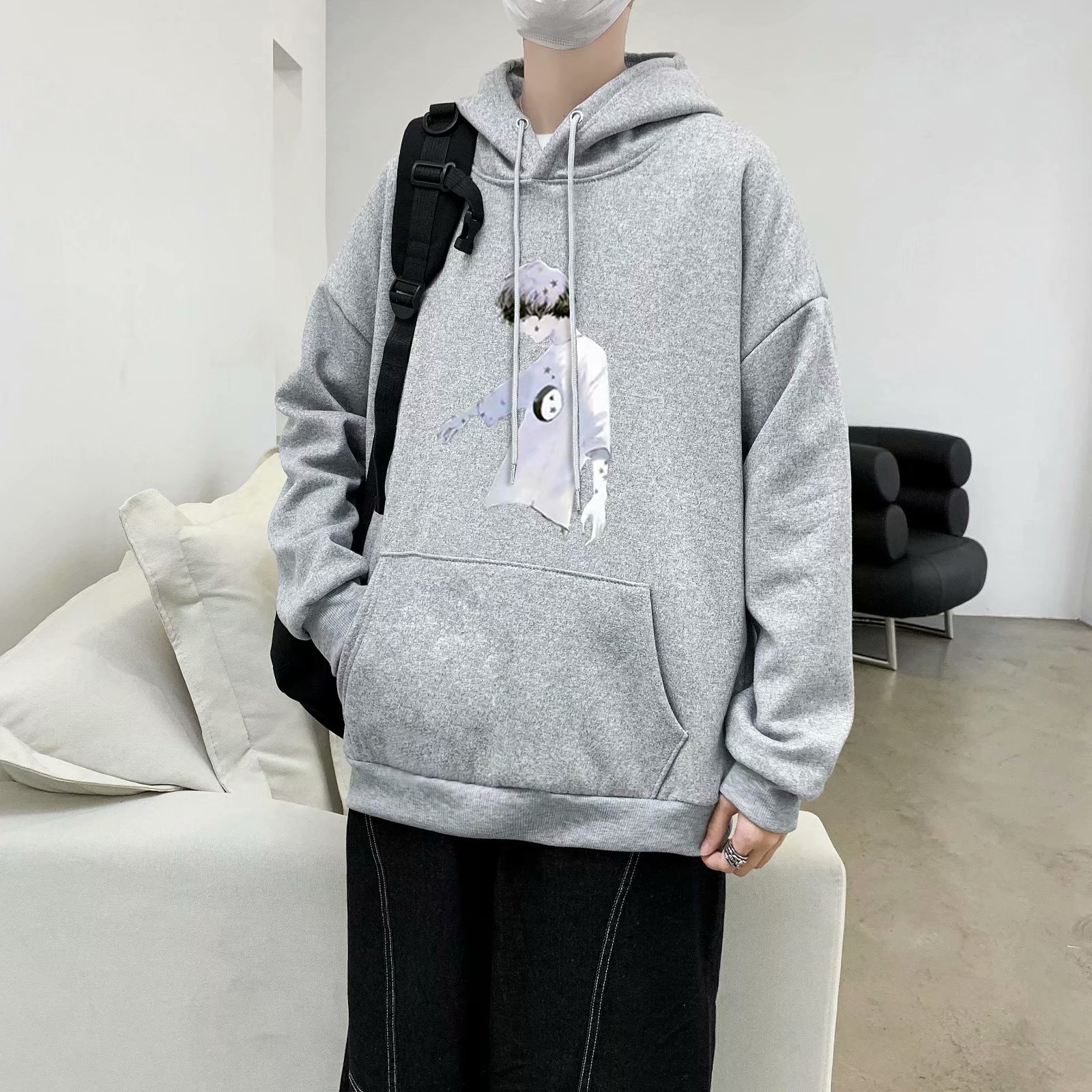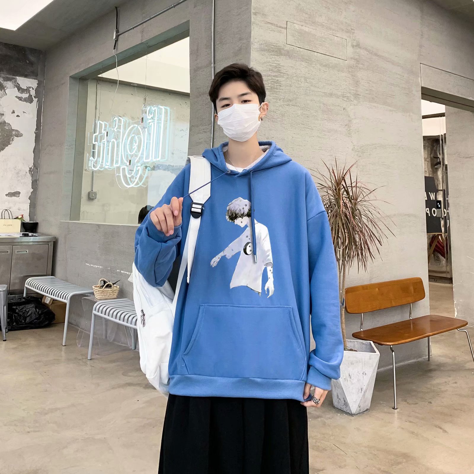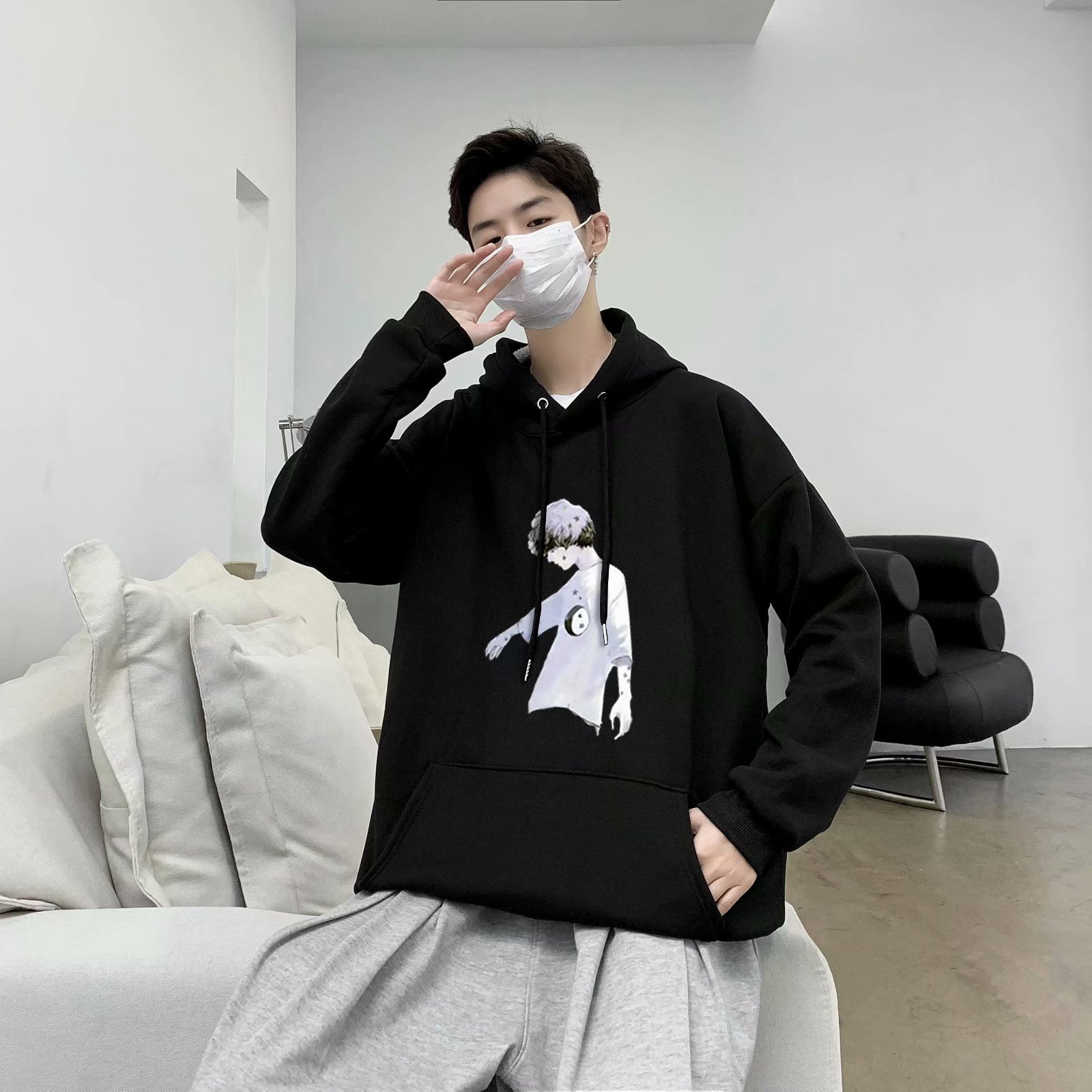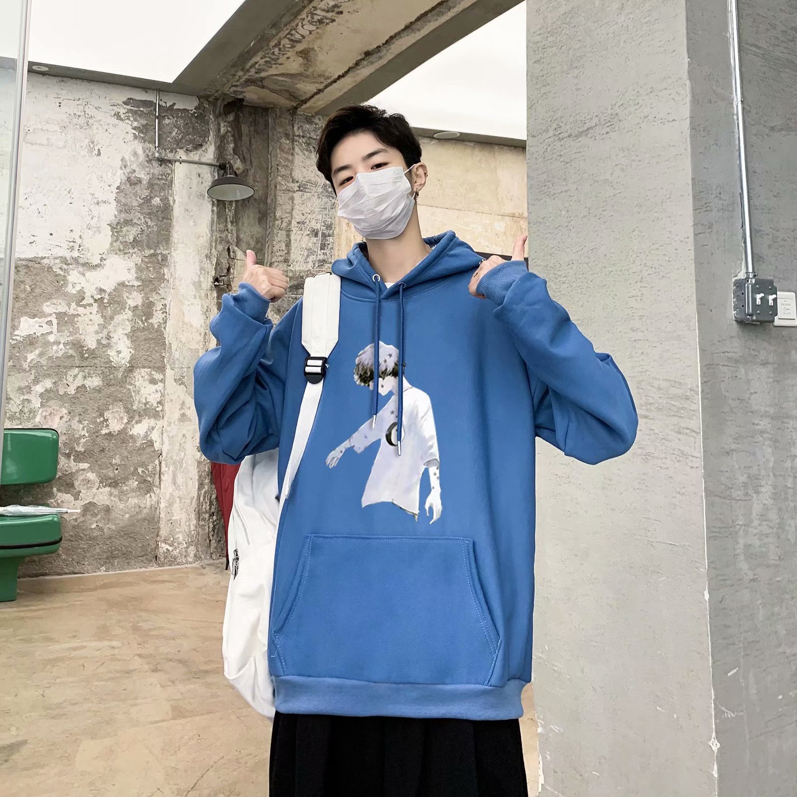 实拍 港风日系简约百搭宽松街头连帽加绒上衣韩版休闲运动卫衣潮