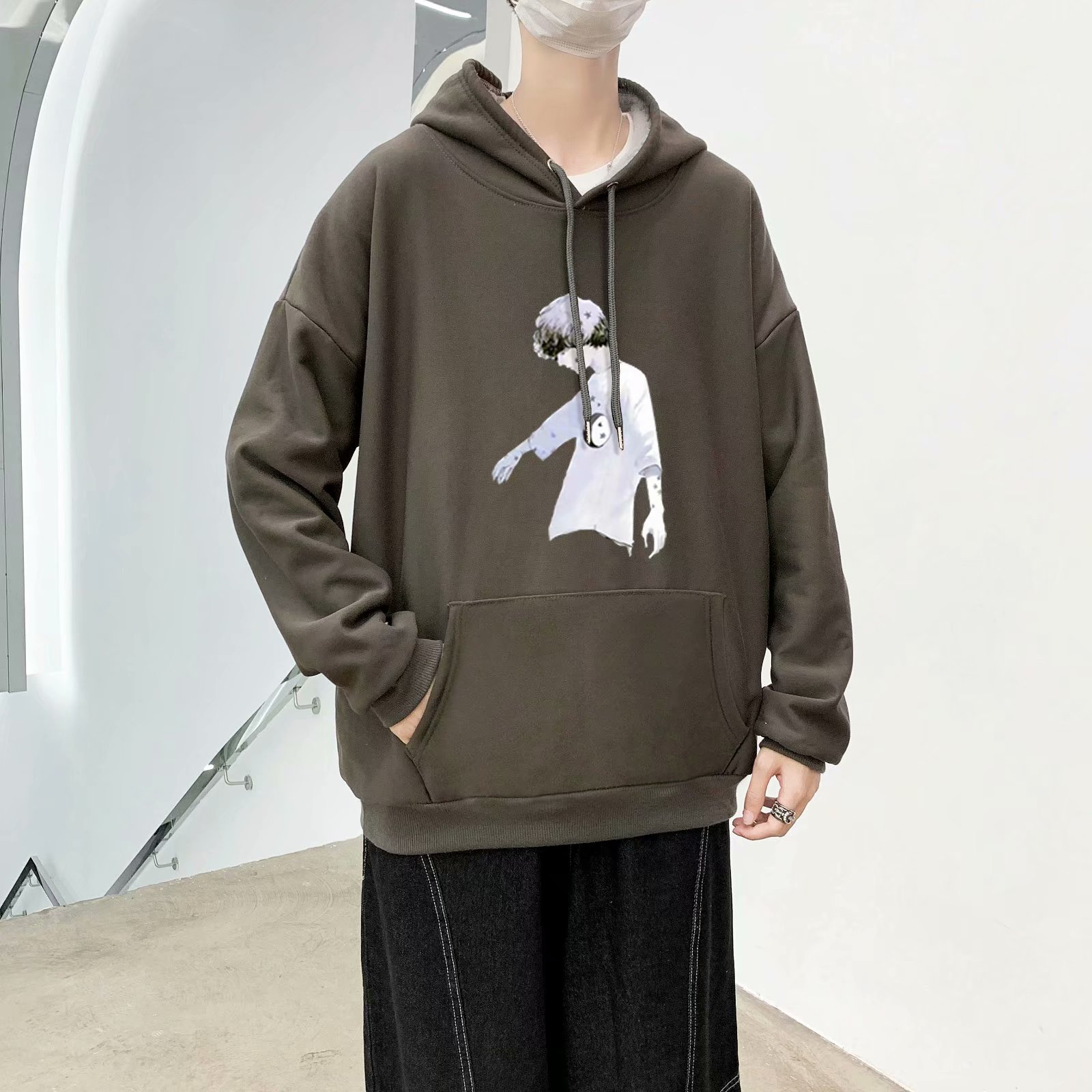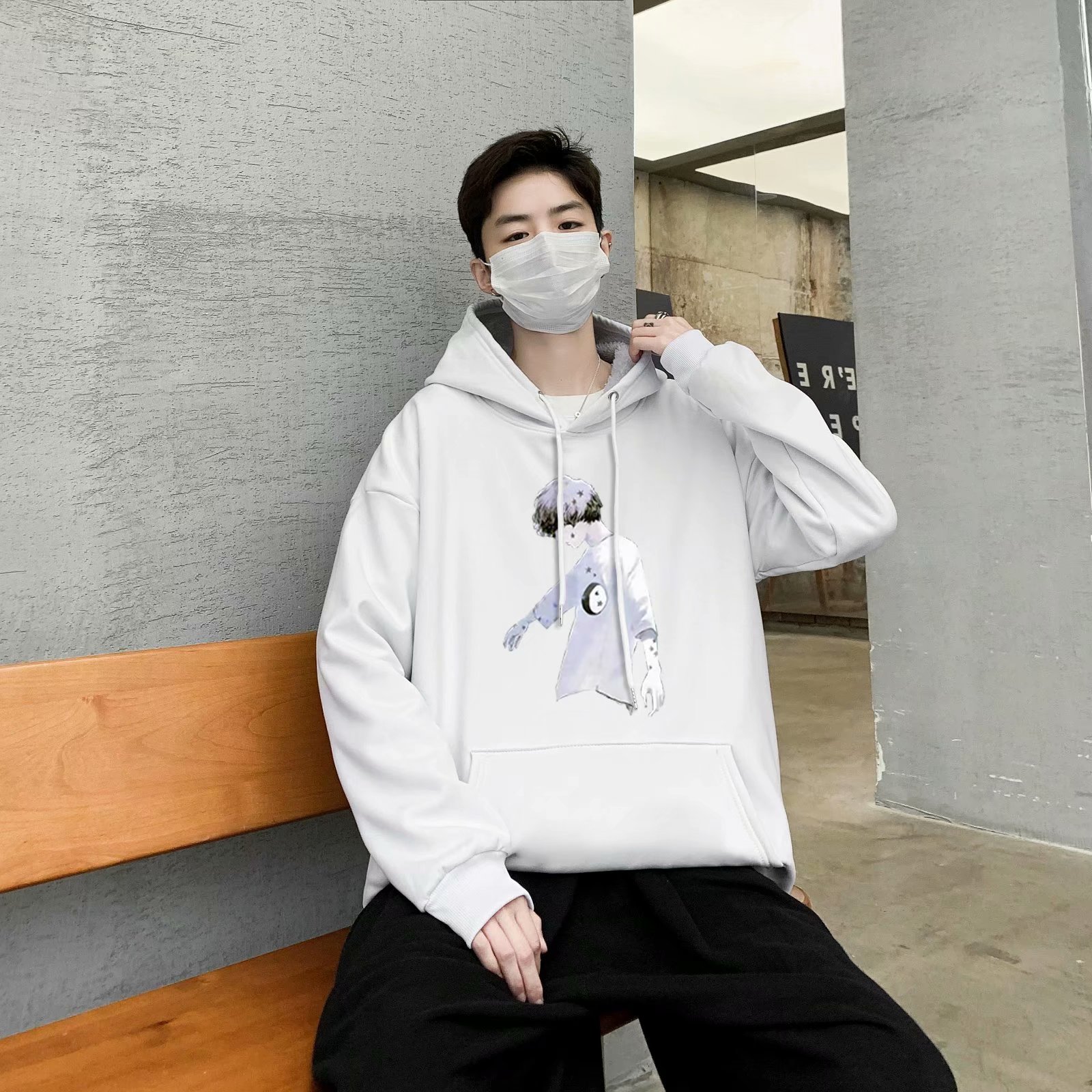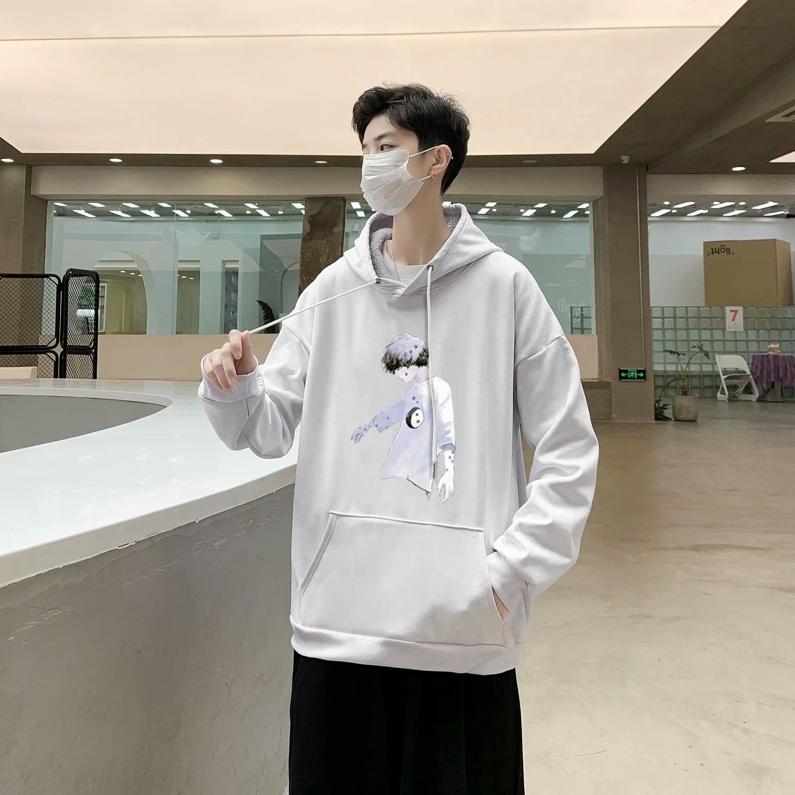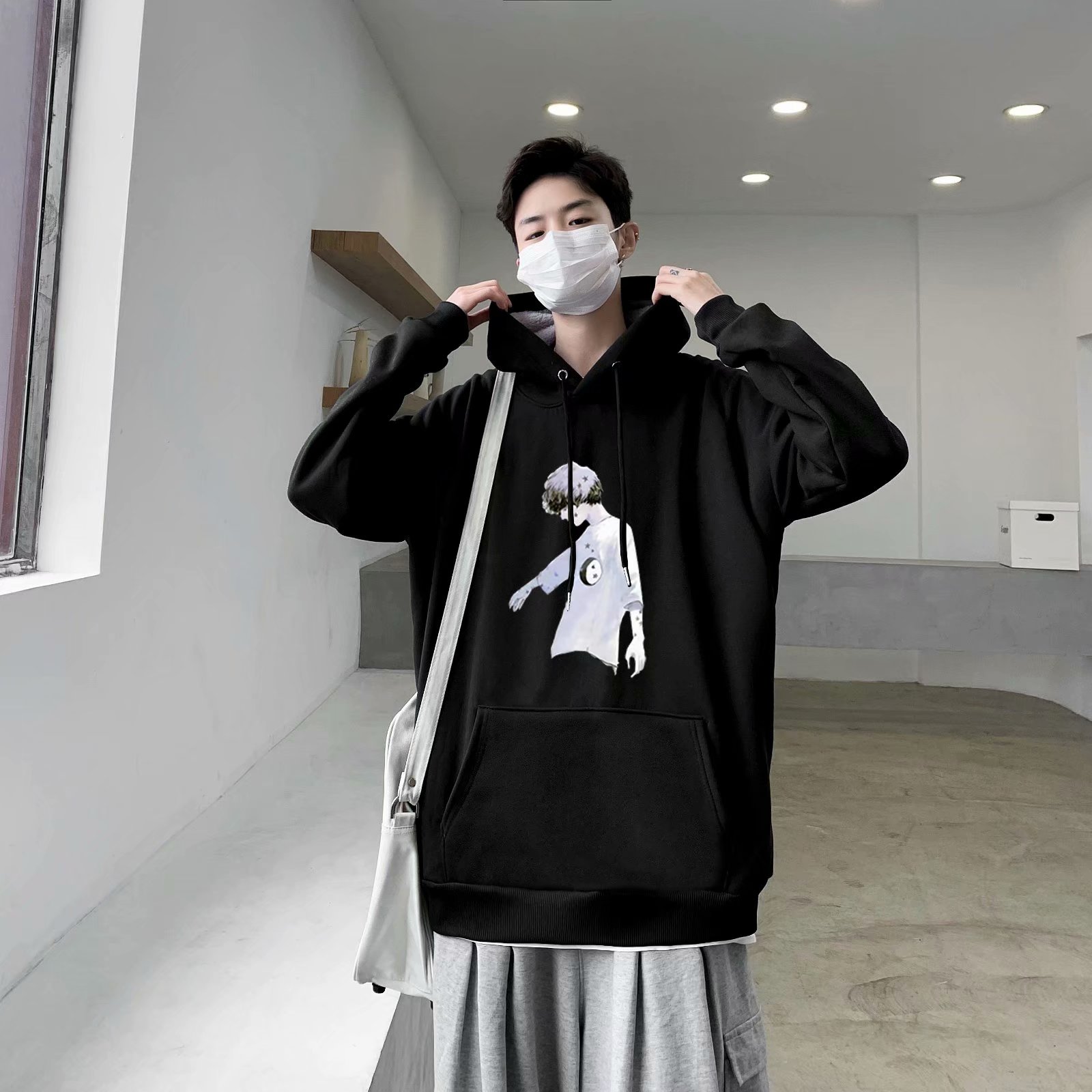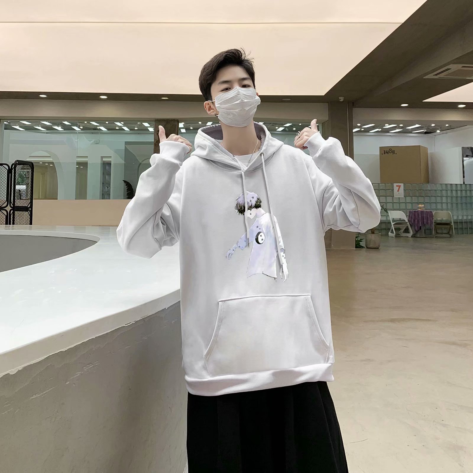 实拍 港风日系简约百搭宽松街头连帽加绒上衣韩版休闲运动卫衣潮
