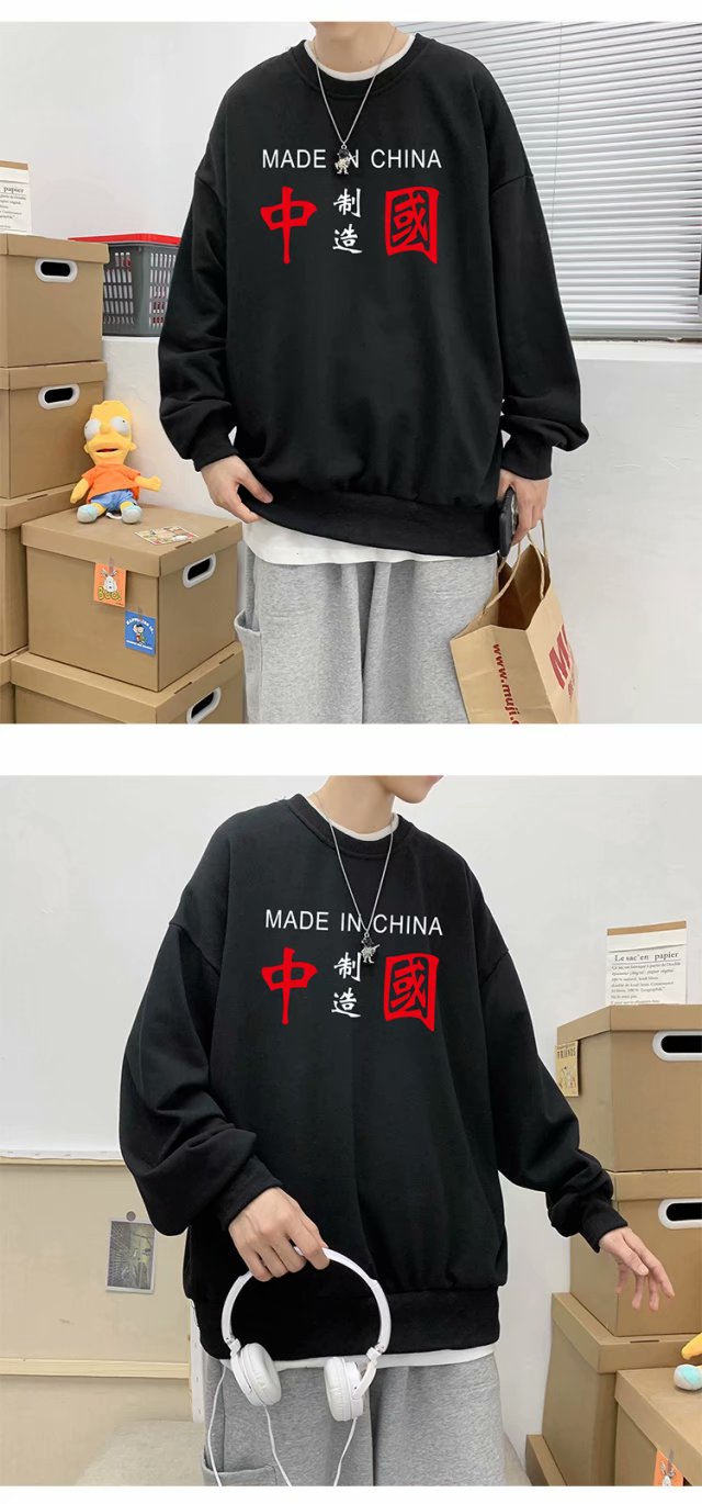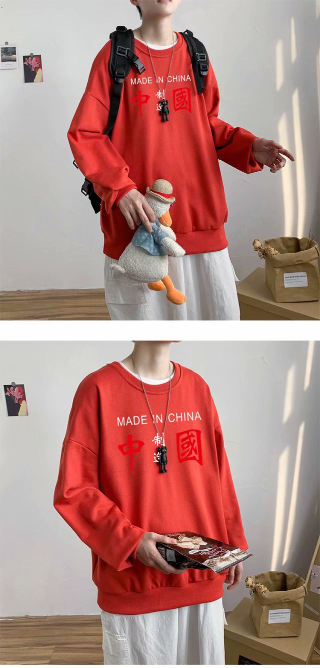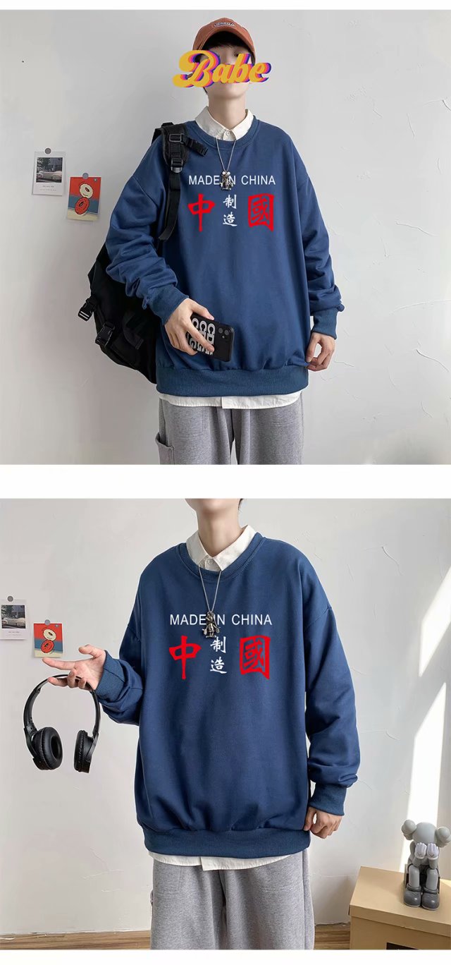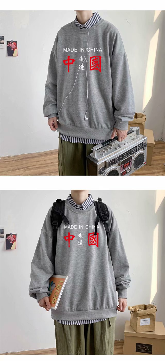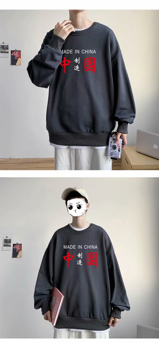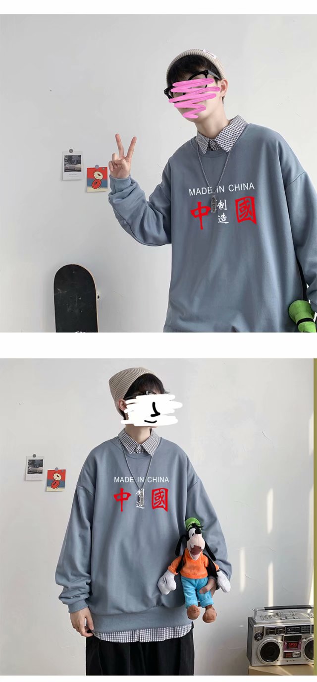 实拍 港风潮流印花百搭街头圆领宽松上衣男日系韩版休闲潮流卫衣