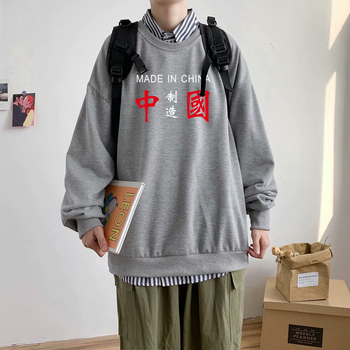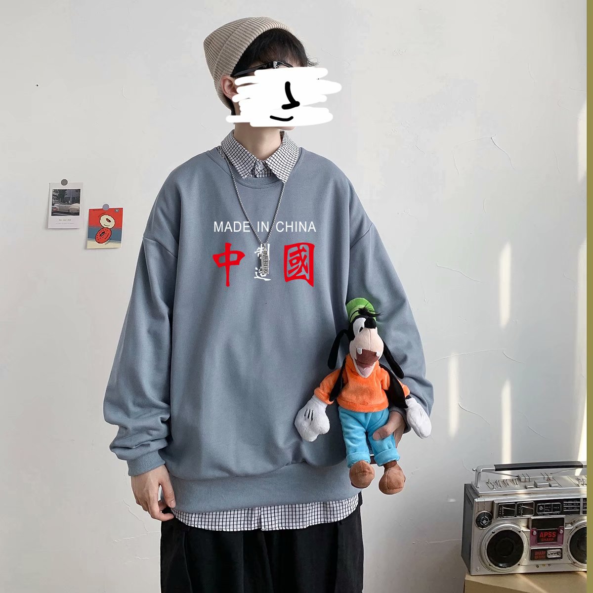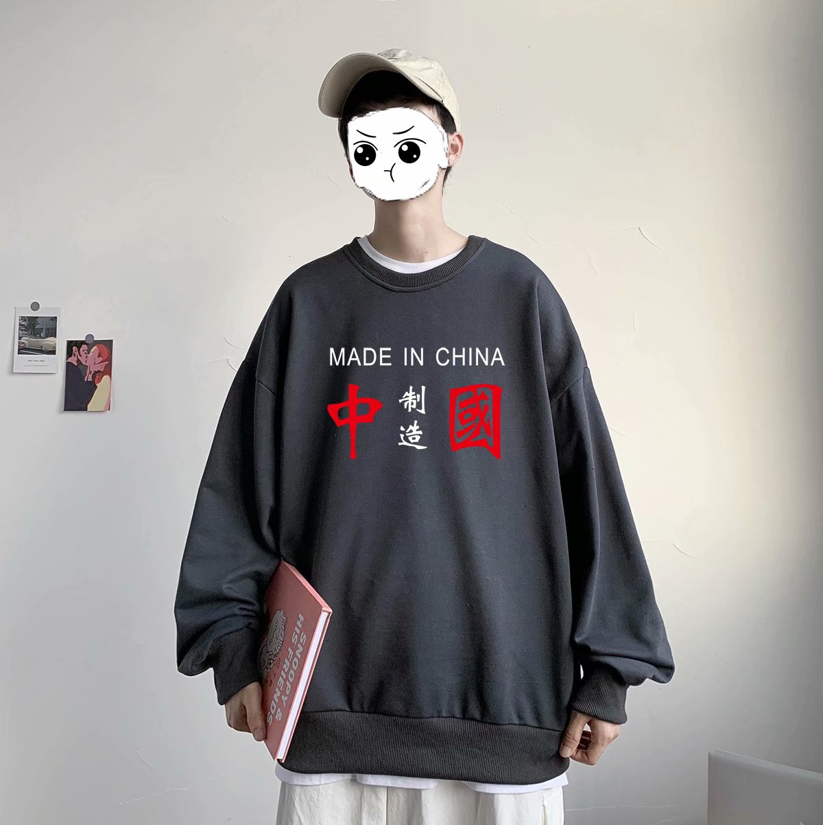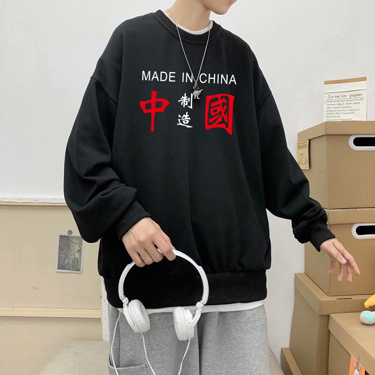 实拍 港风潮流印花百搭街头圆领宽松上衣男日系韩版休闲潮流卫衣
