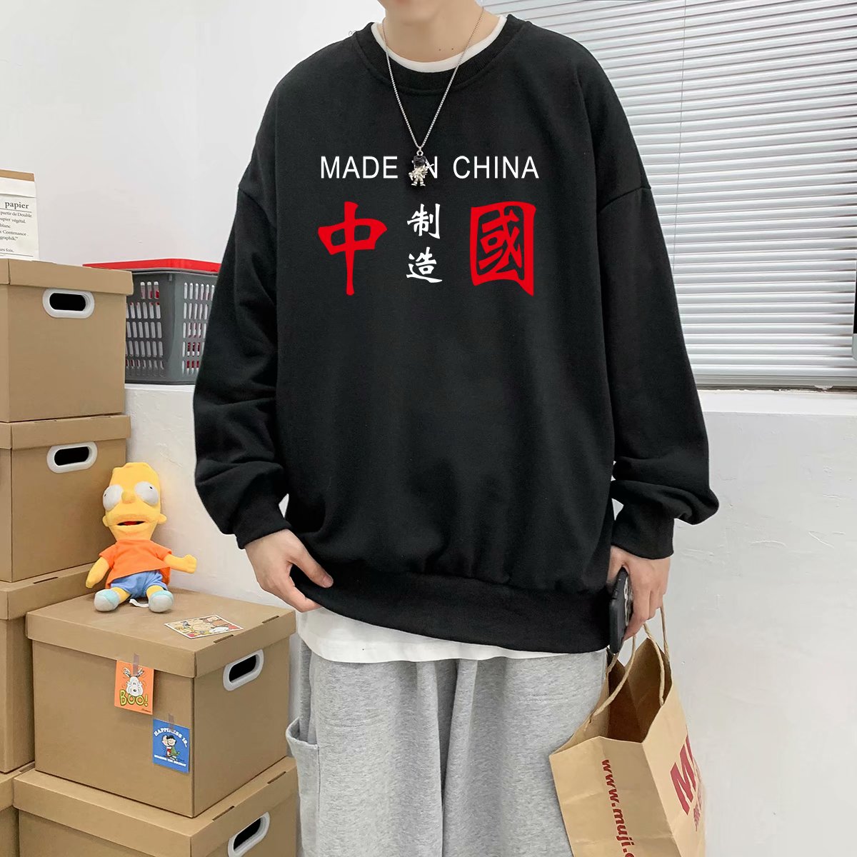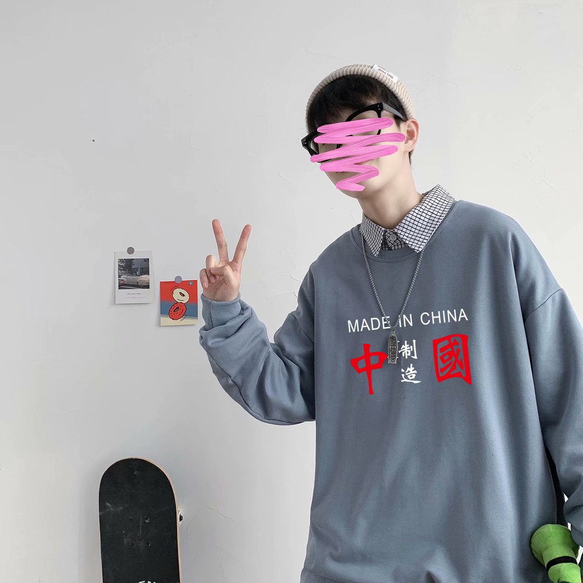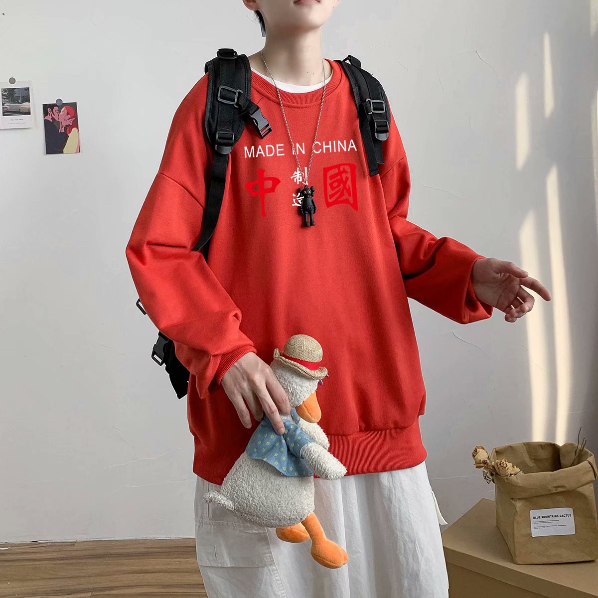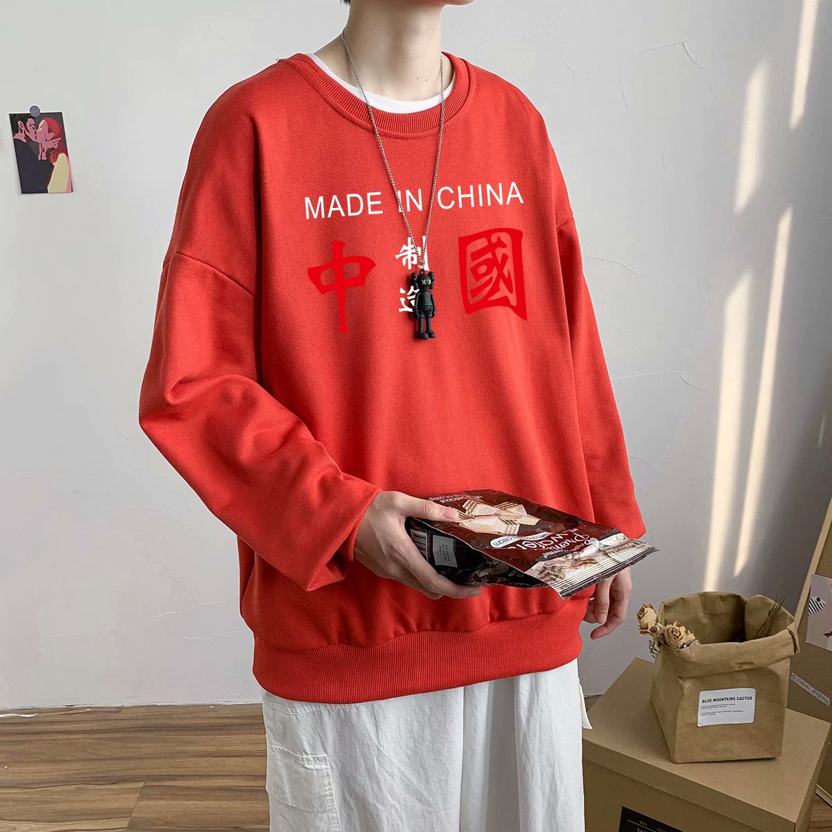 实拍 港风潮流印花百搭街头圆领宽松上衣男日系韩版休闲潮流卫衣