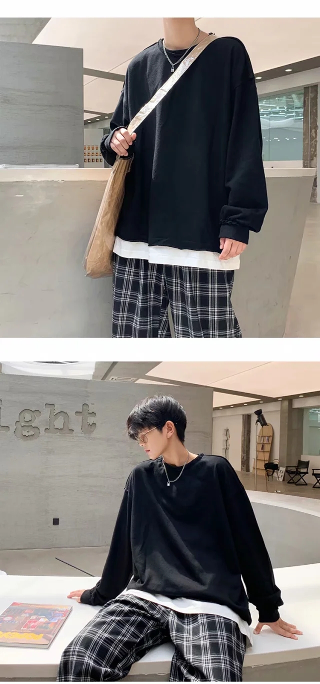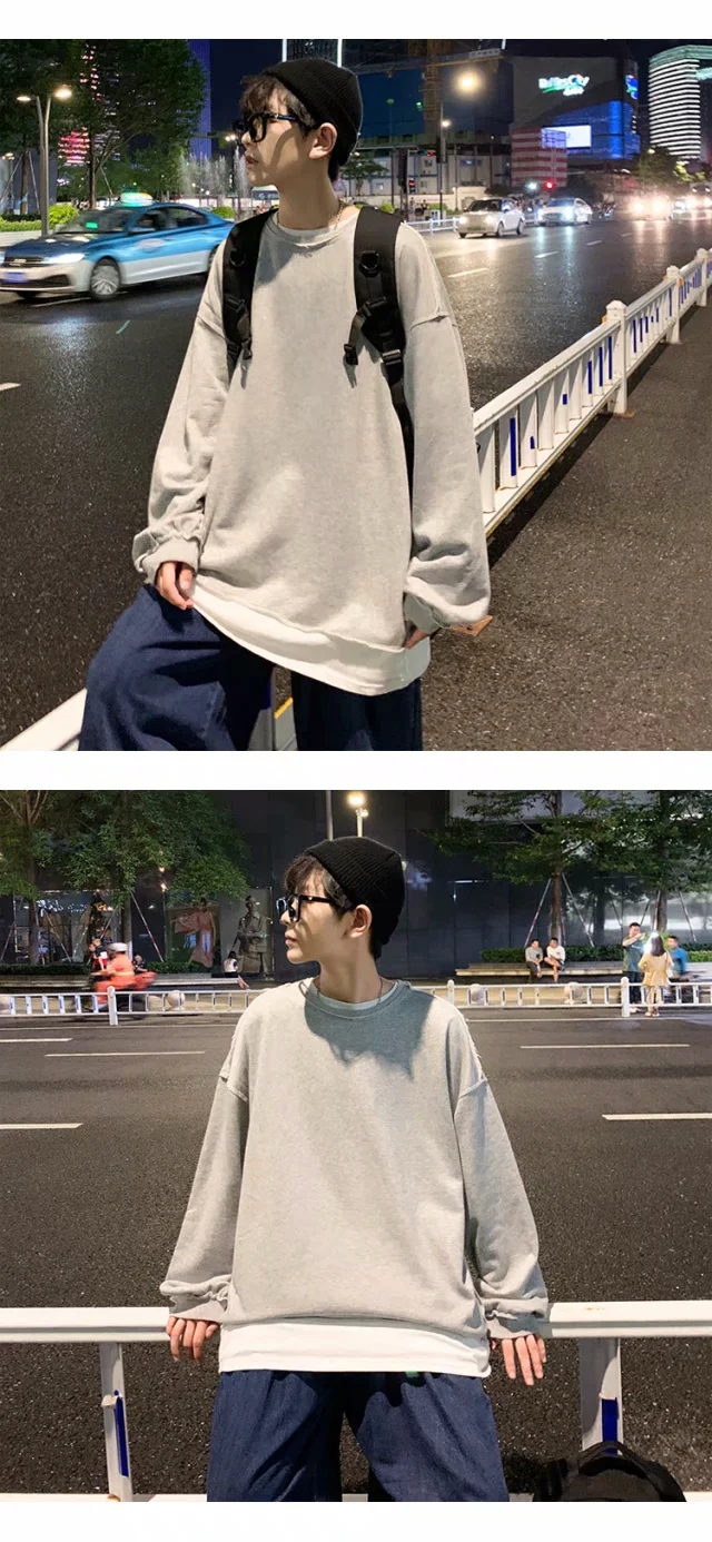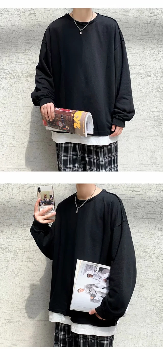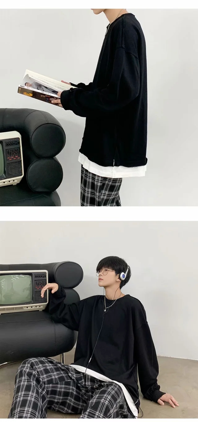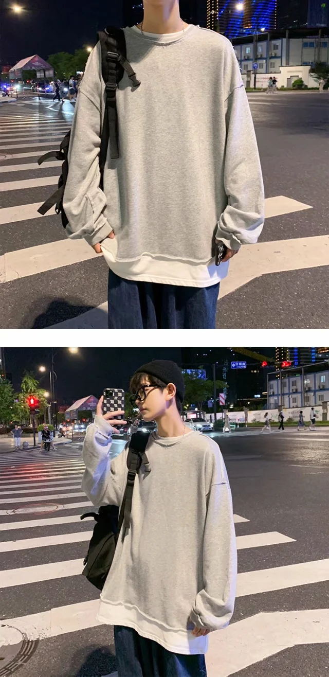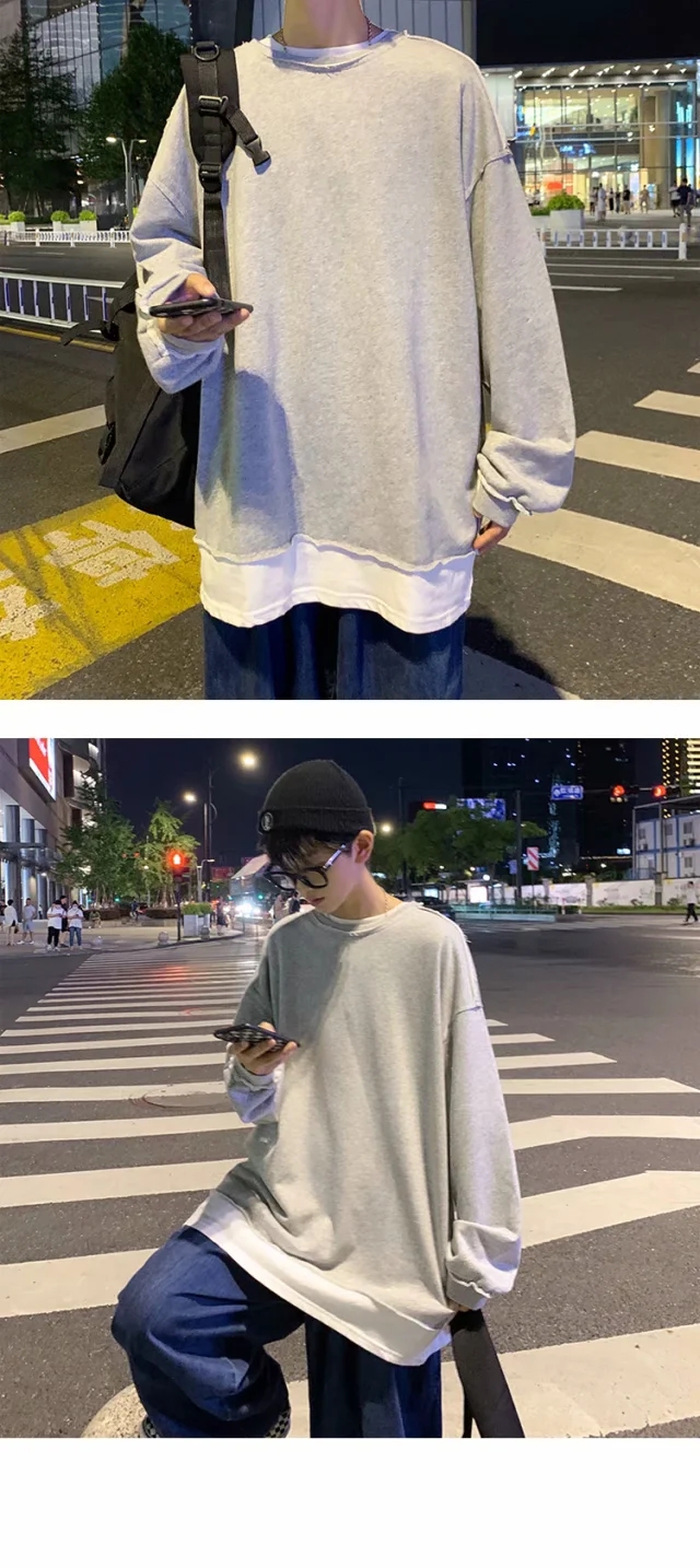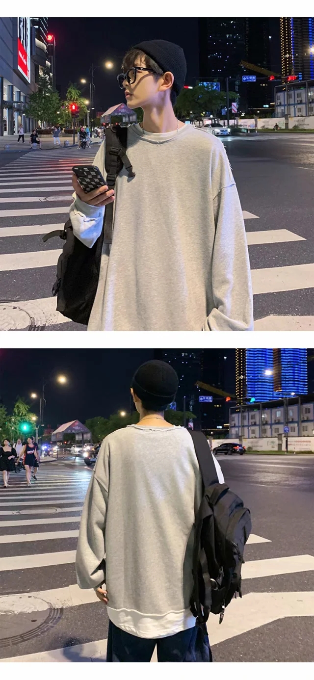 实拍 韩版时尚休闲衬衫男日系港风街头长袖潮流宽松衬衣