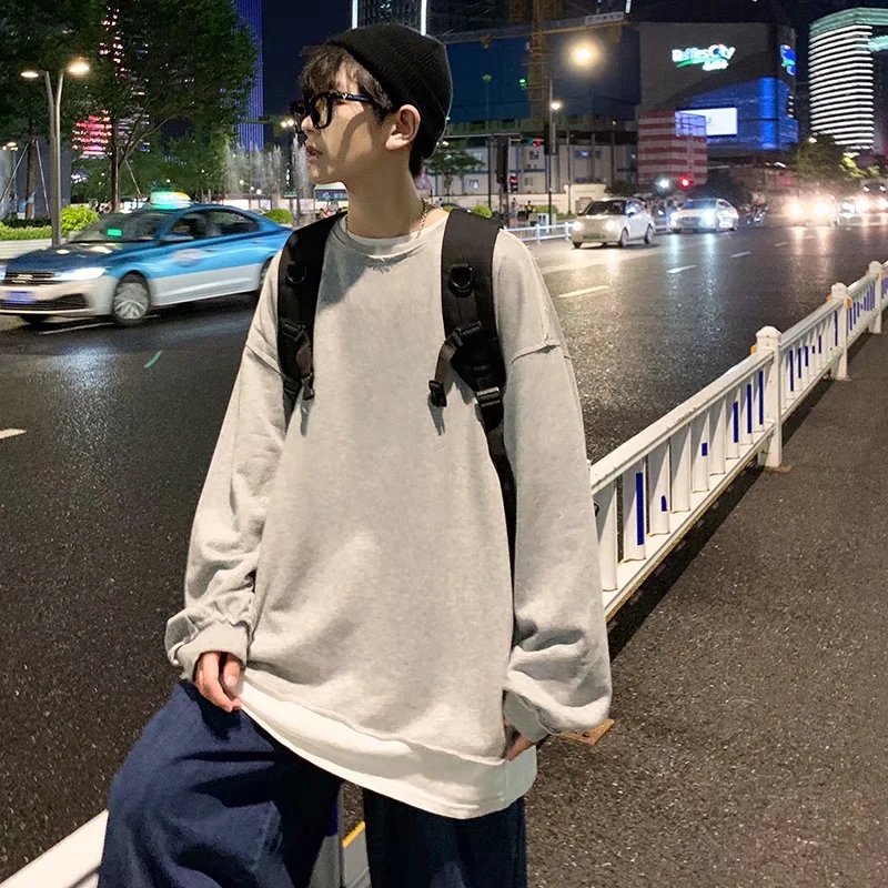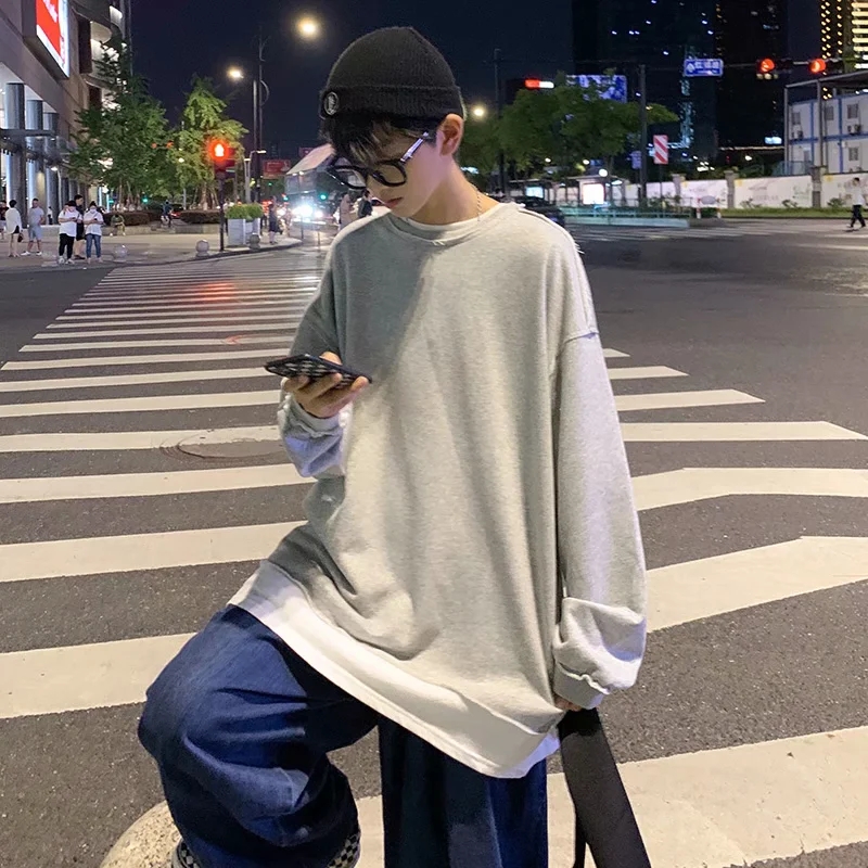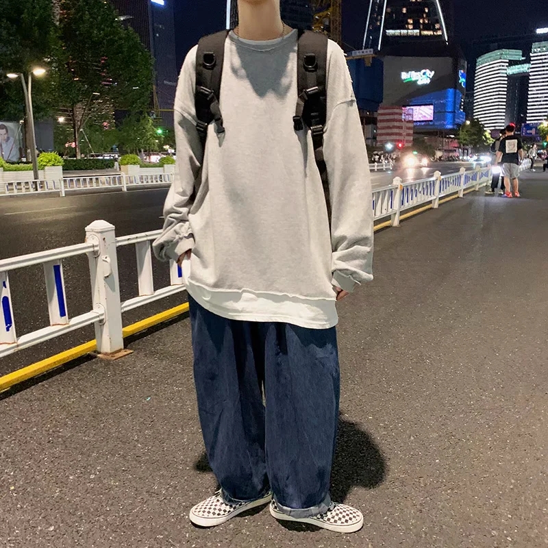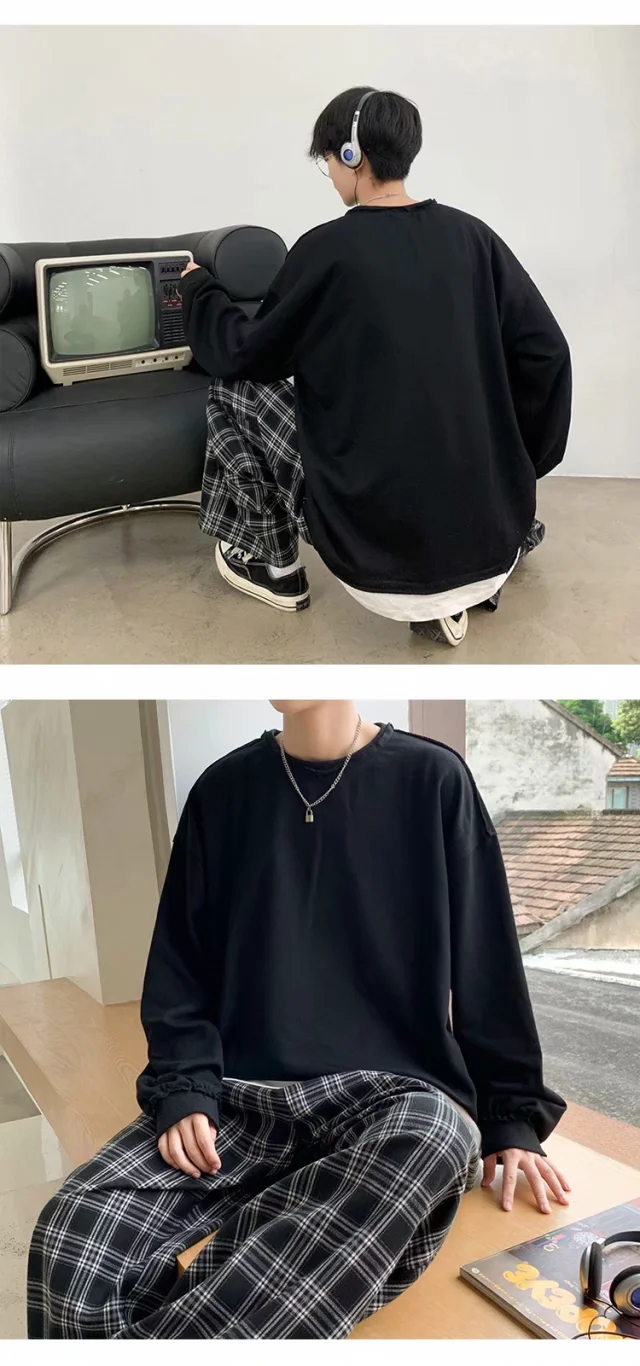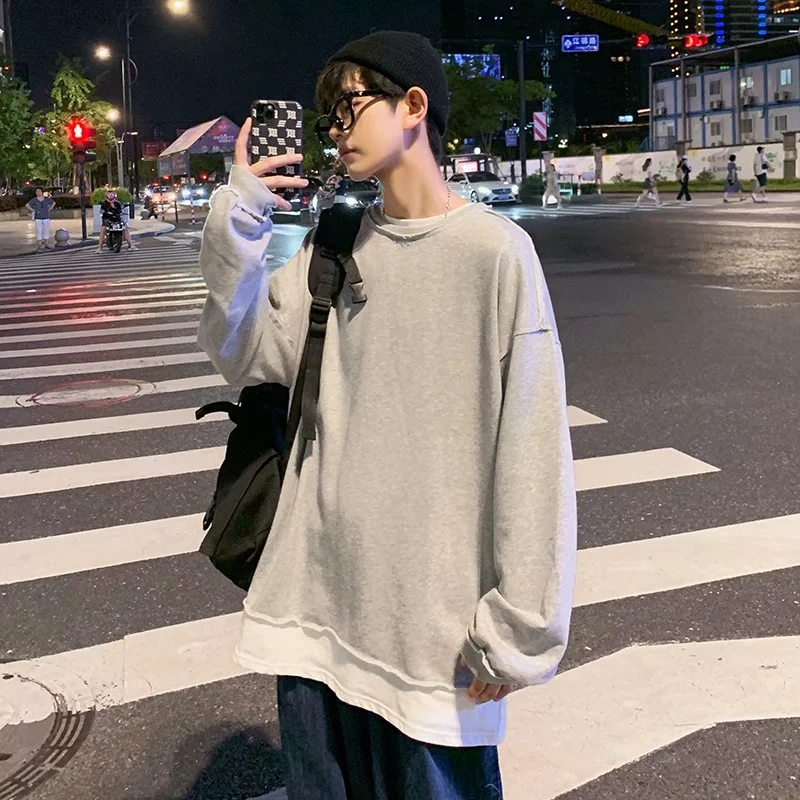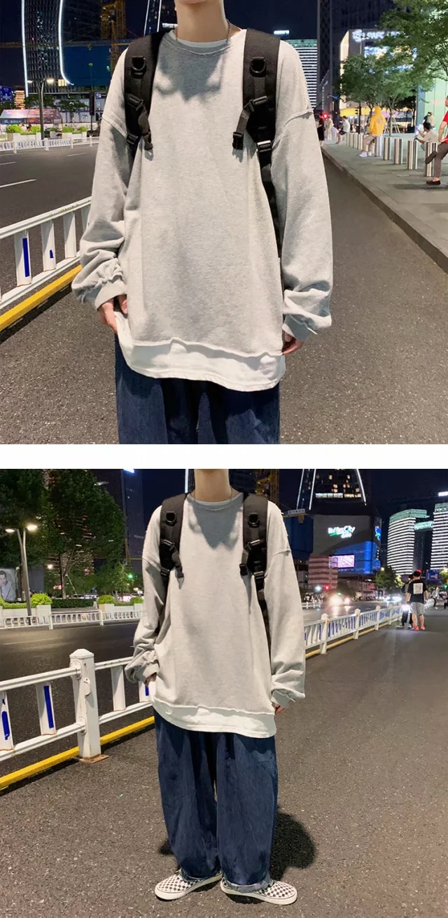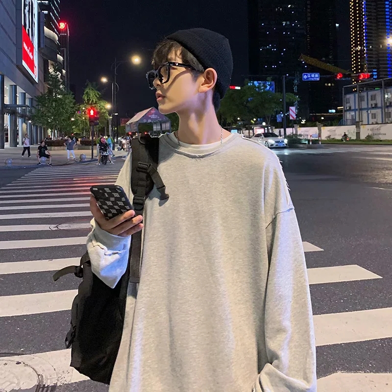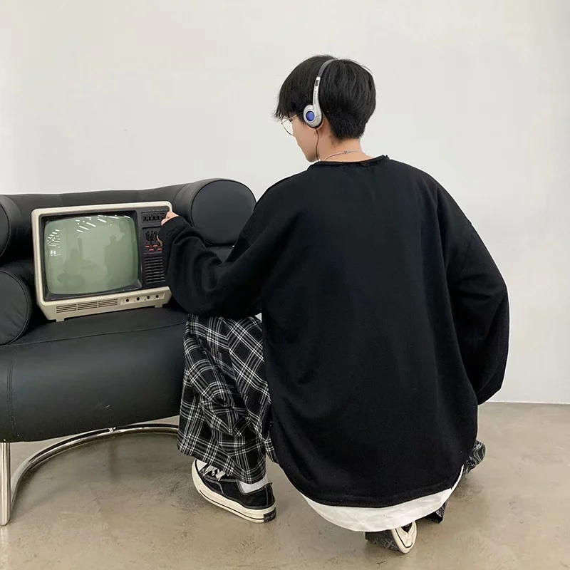 实拍 韩版时尚休闲衬衫男日系港风街头长袖潮流宽松衬衣