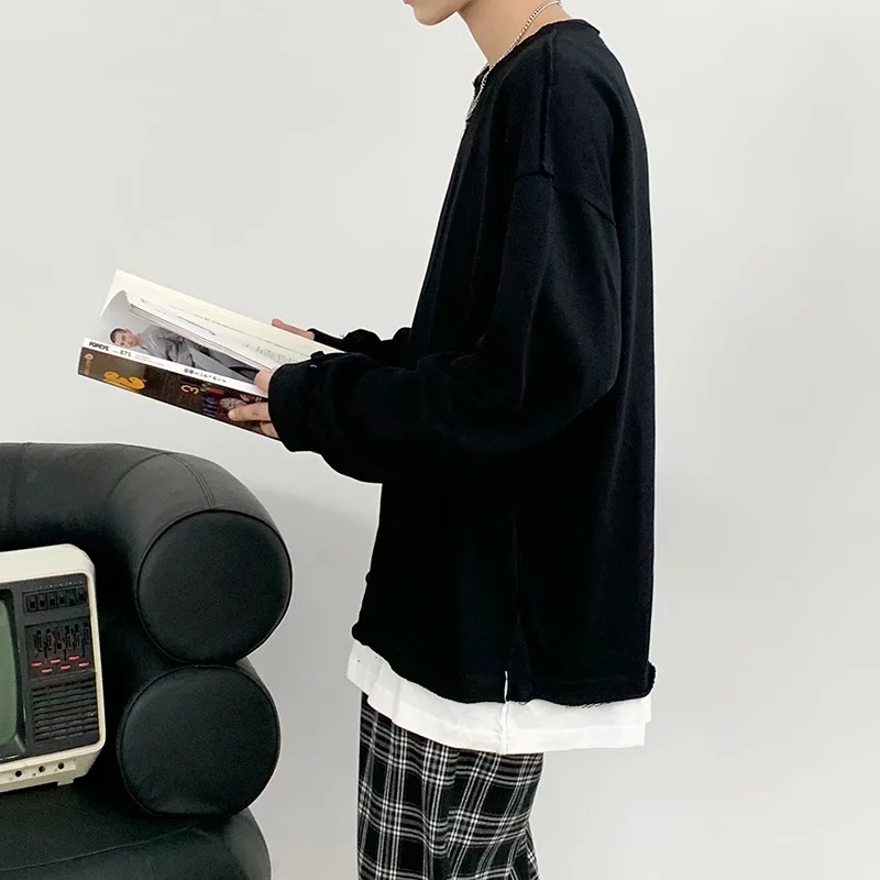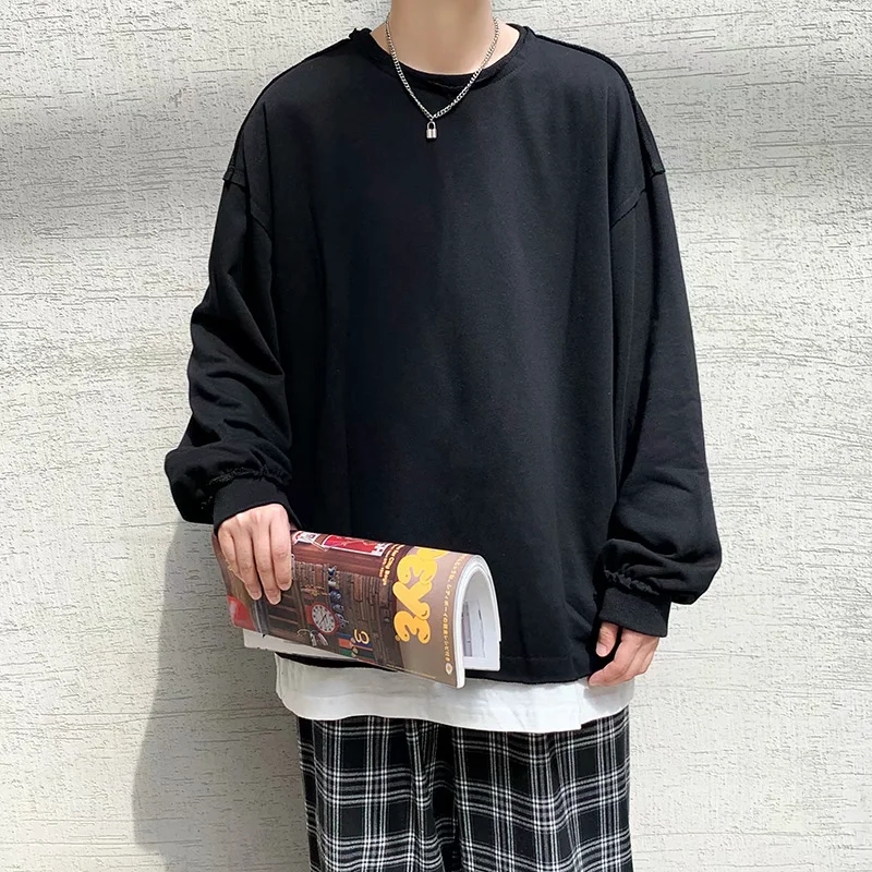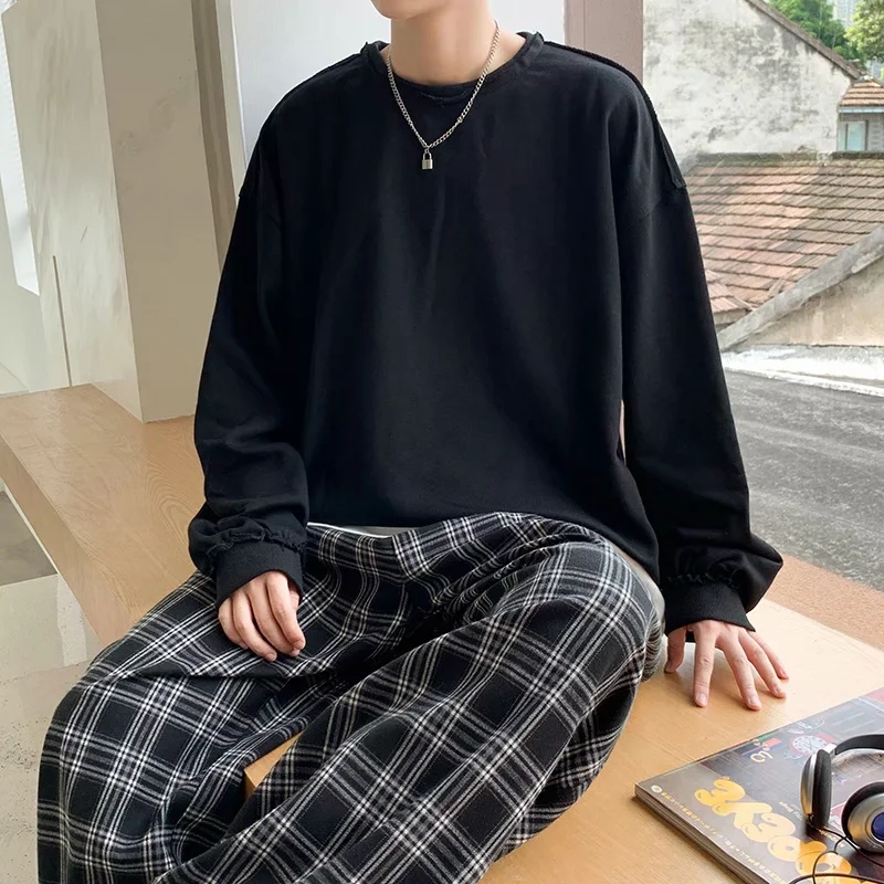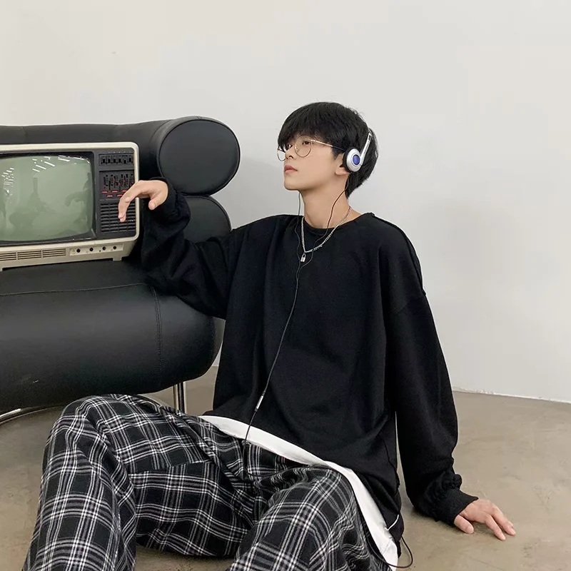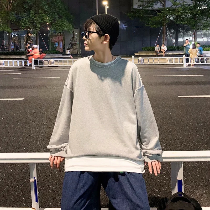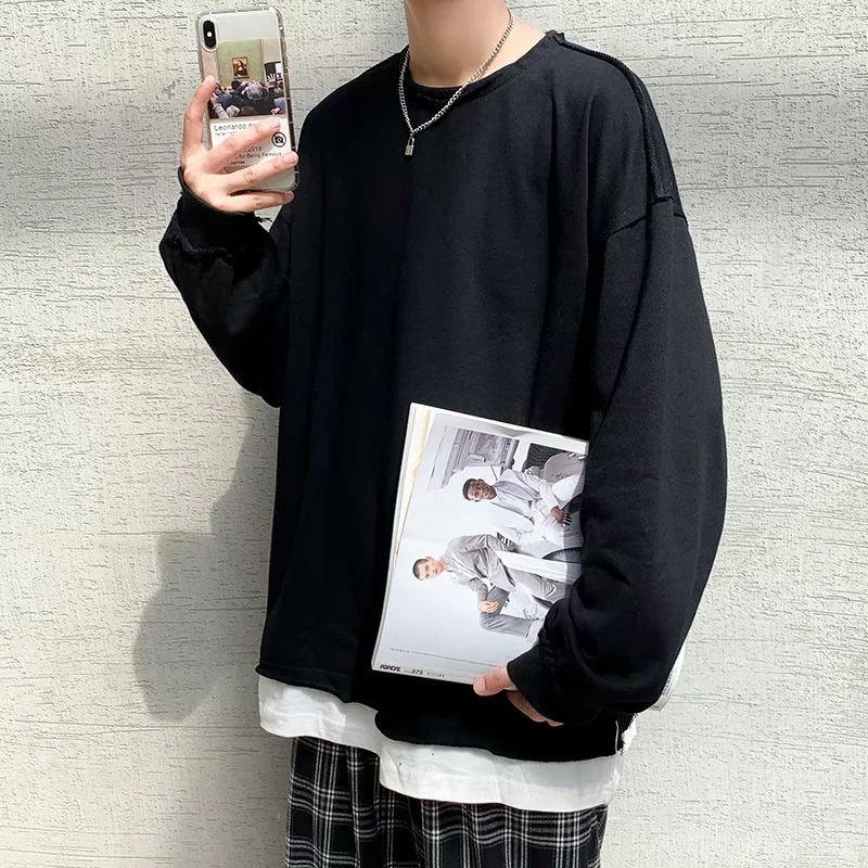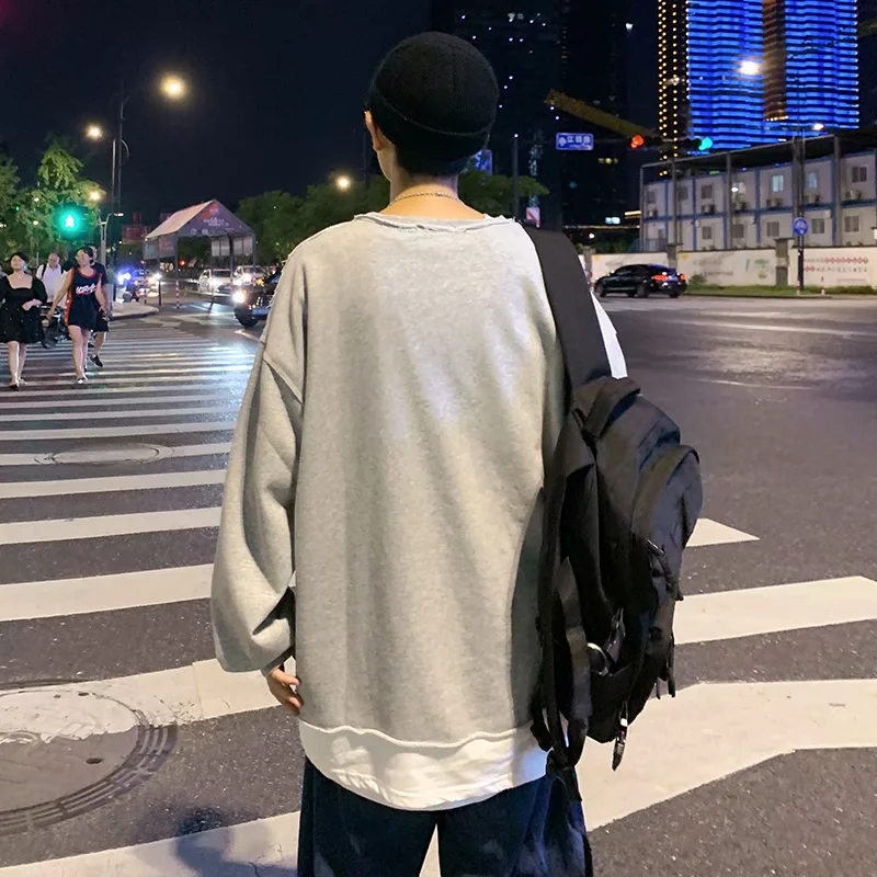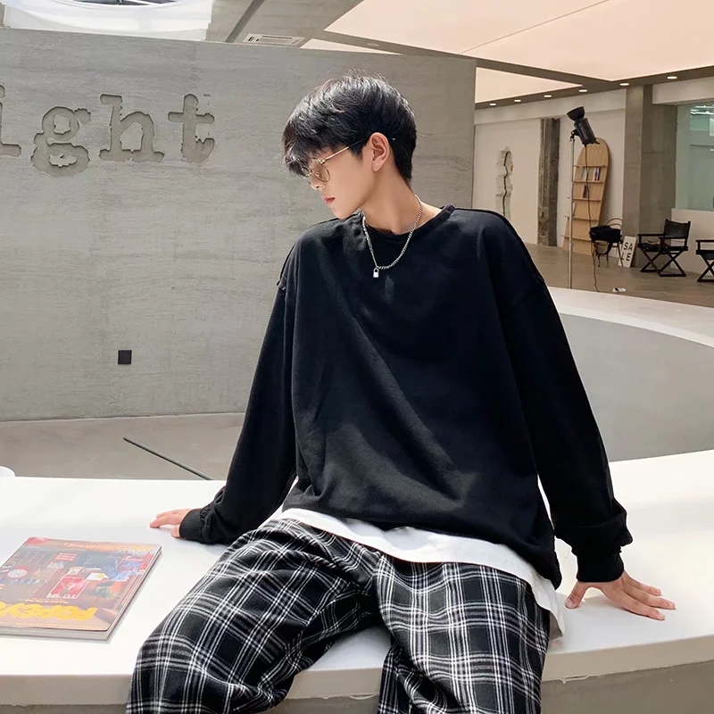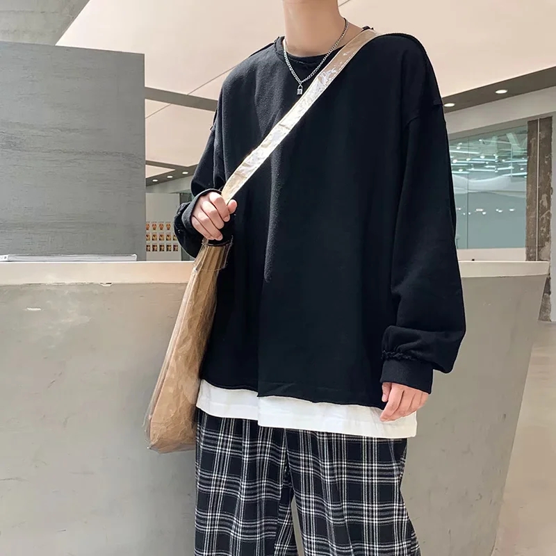 实拍 韩版时尚休闲衬衫男日系港风街头长袖潮流宽松衬衣