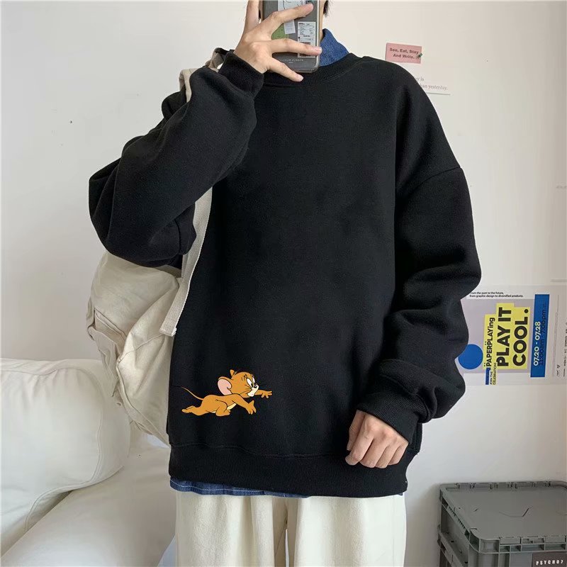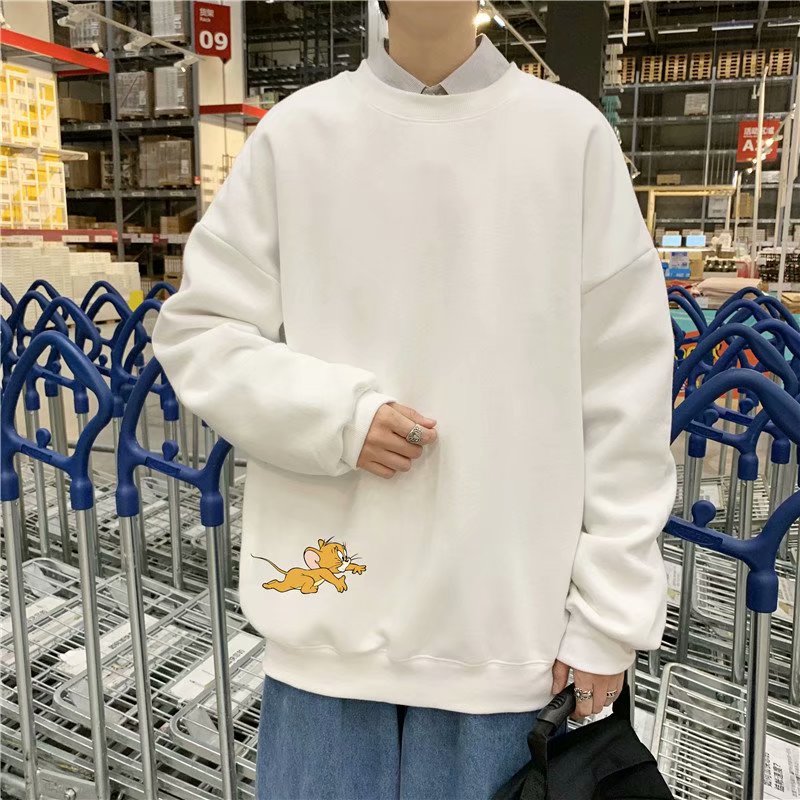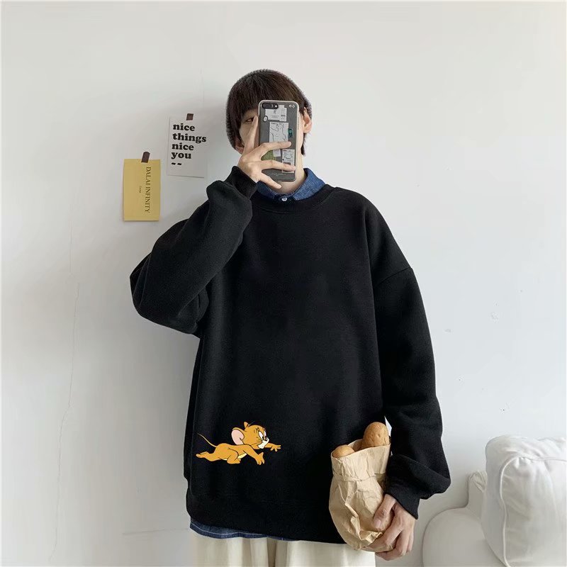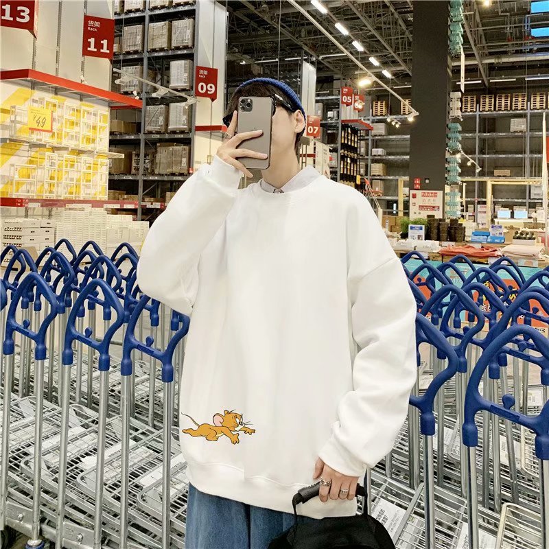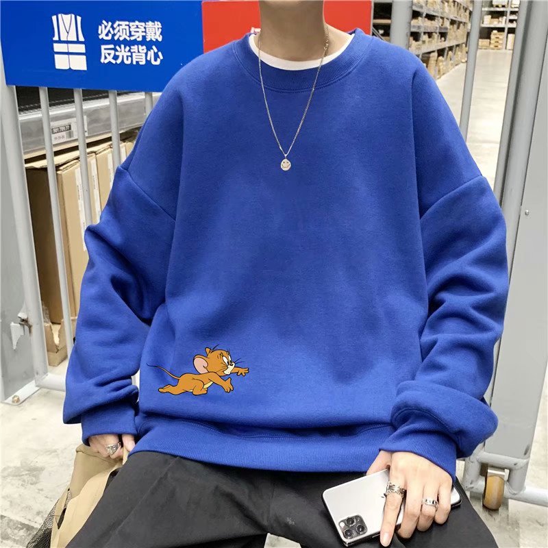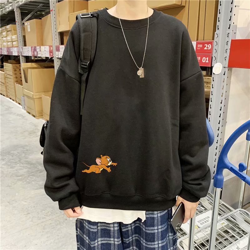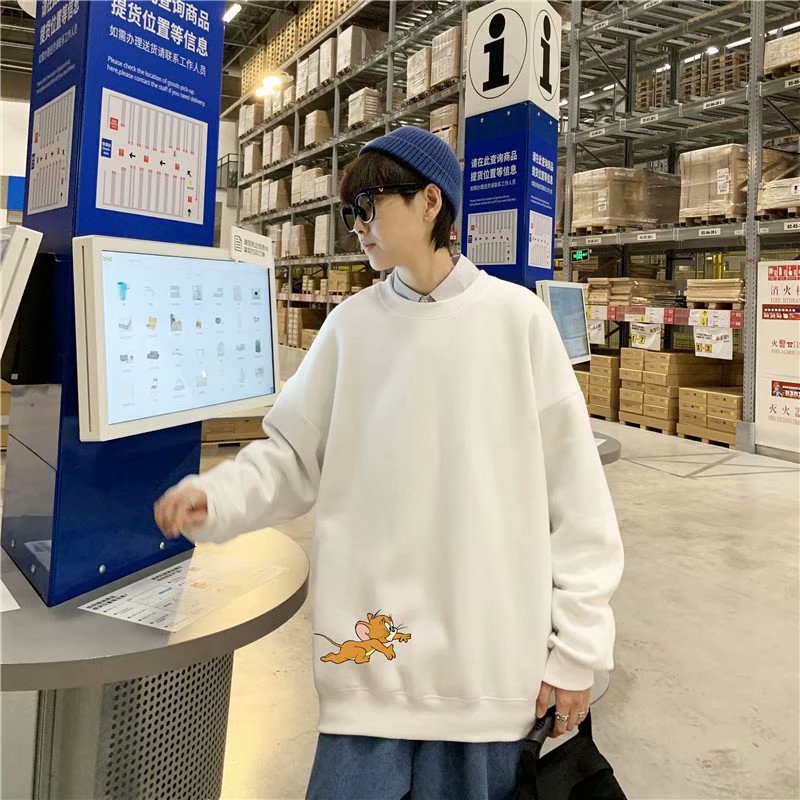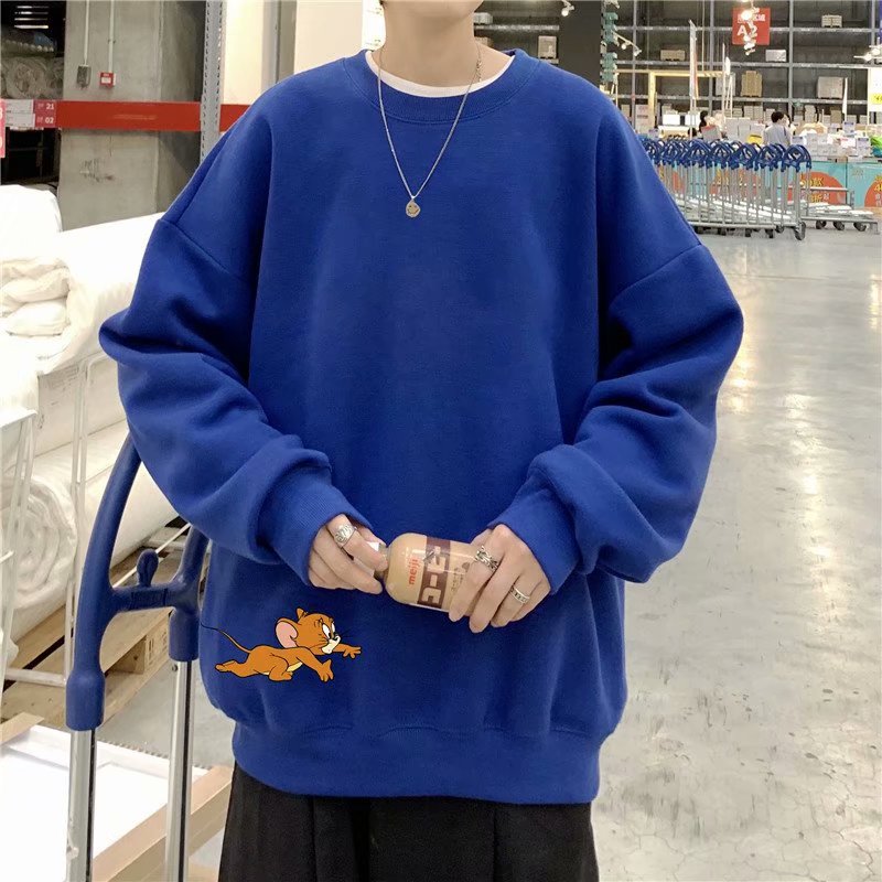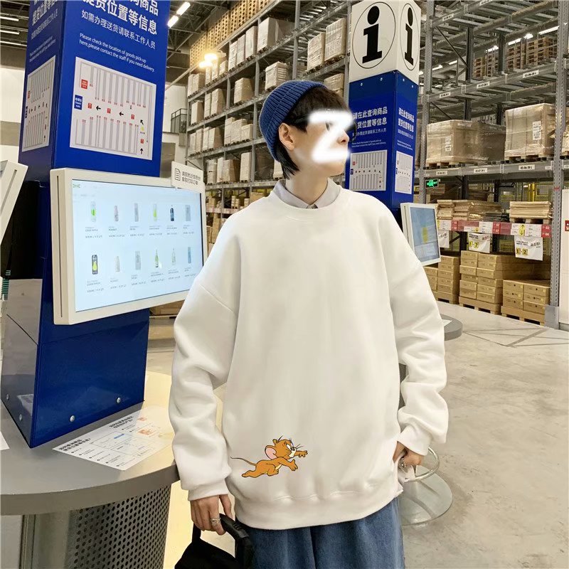 实拍 港风宽松街头纯色百搭圆领上衣男日系青年韩版休闲运动卫衣