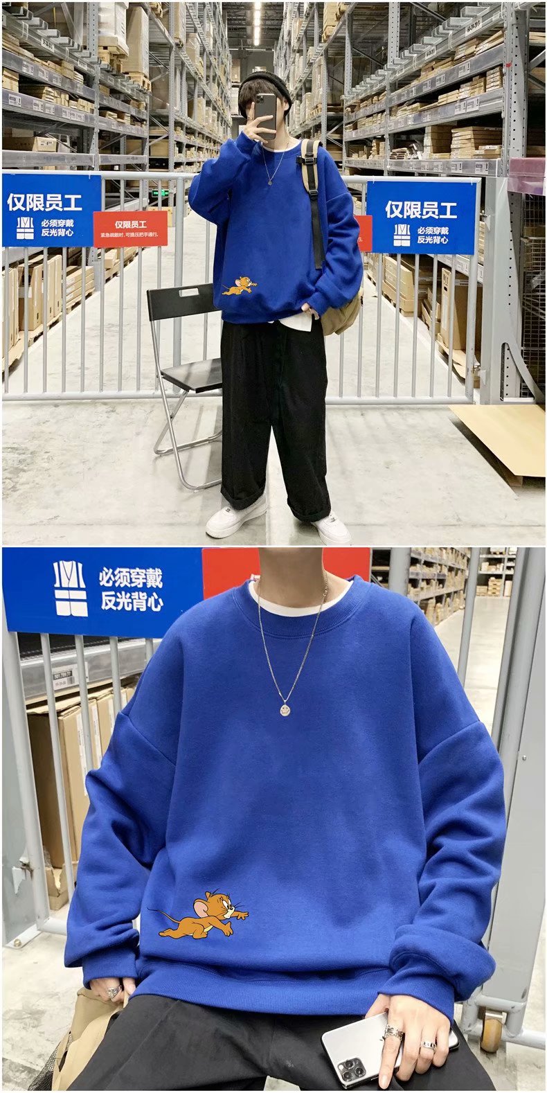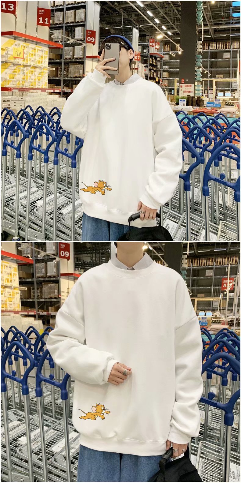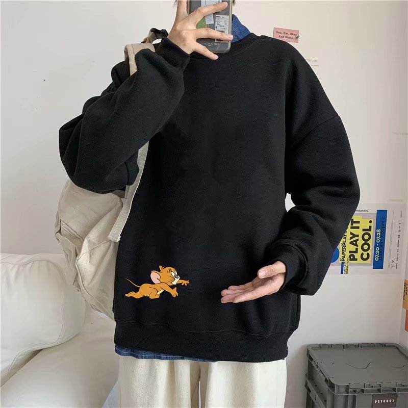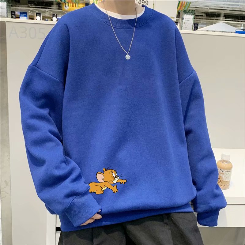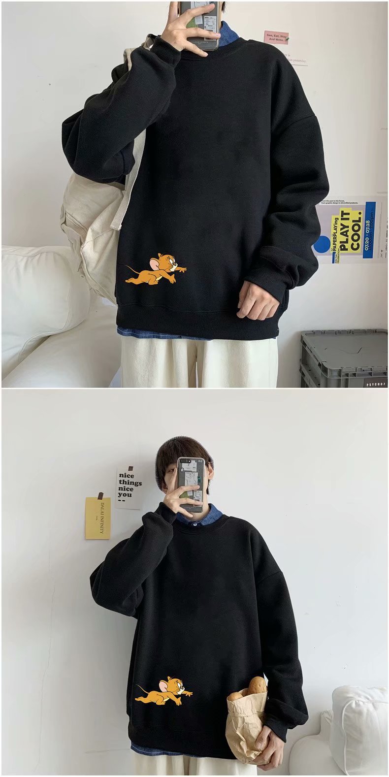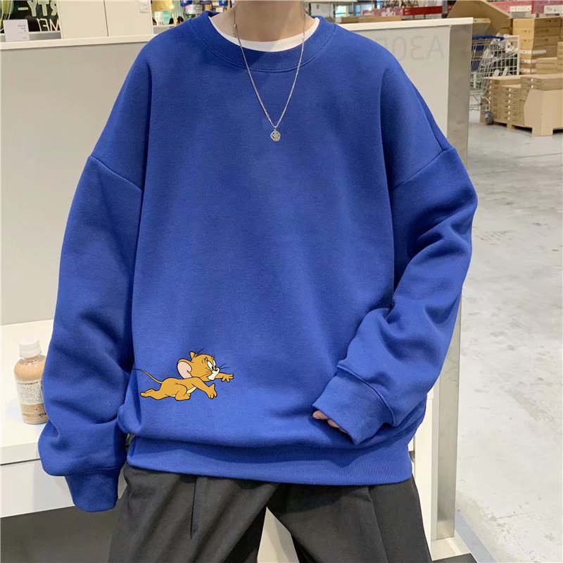 实拍 港风宽松街头纯色百搭圆领上衣男日系青年韩版休闲运动卫衣