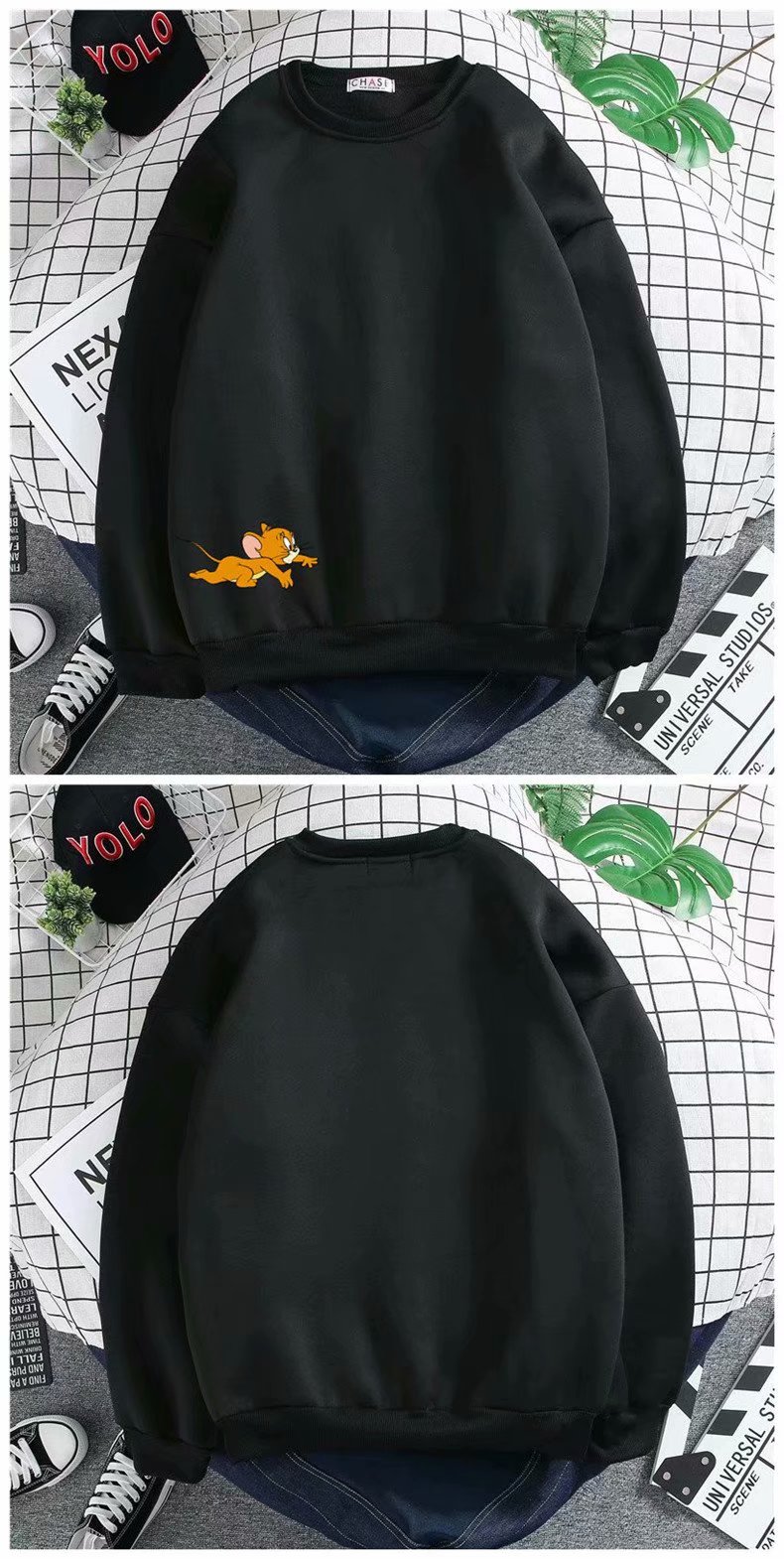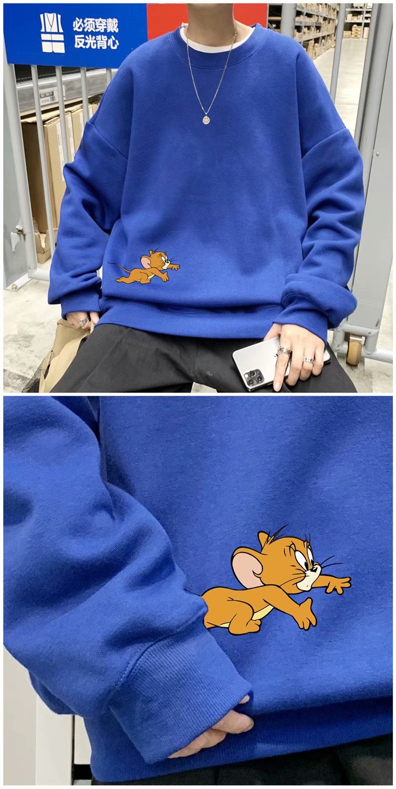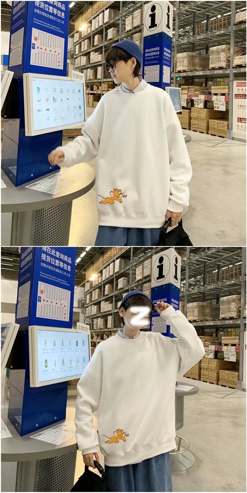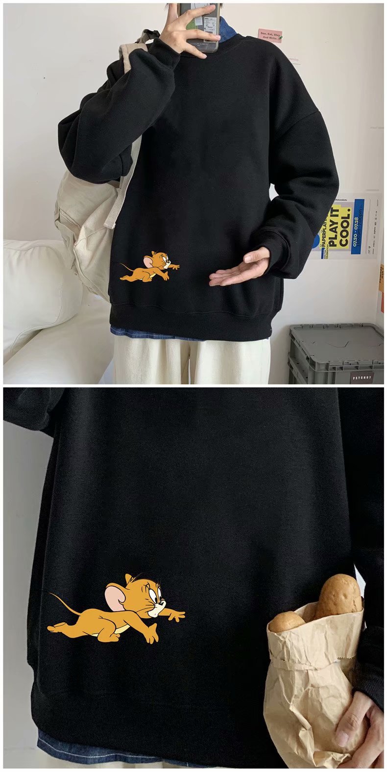 实拍 港风宽松街头纯色百搭圆领上衣男日系青年韩版休闲运动卫衣