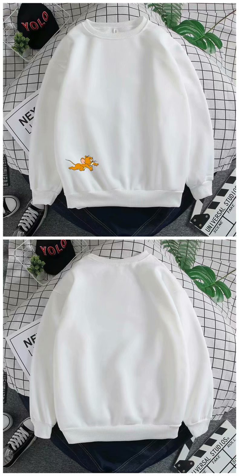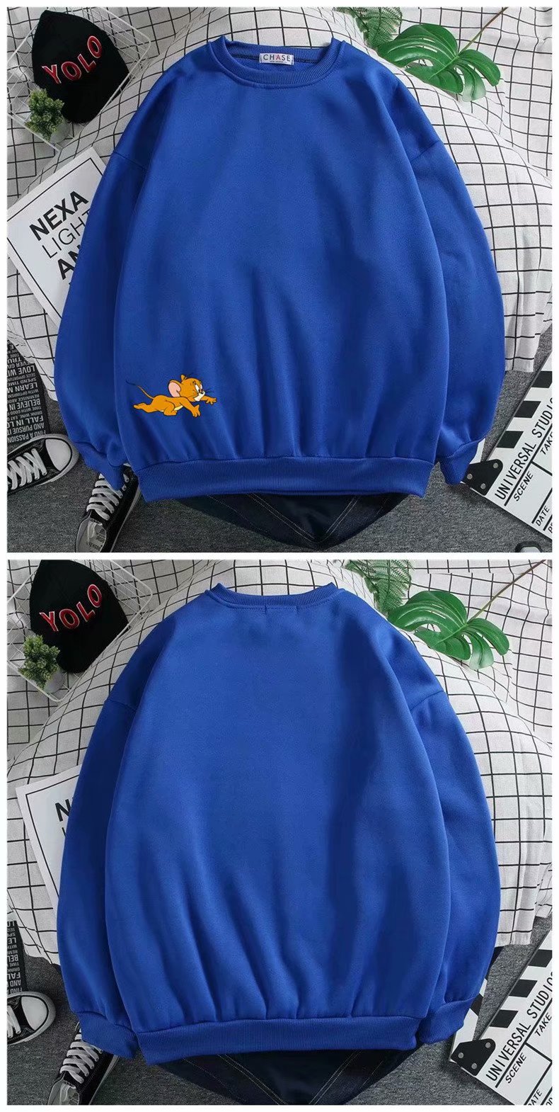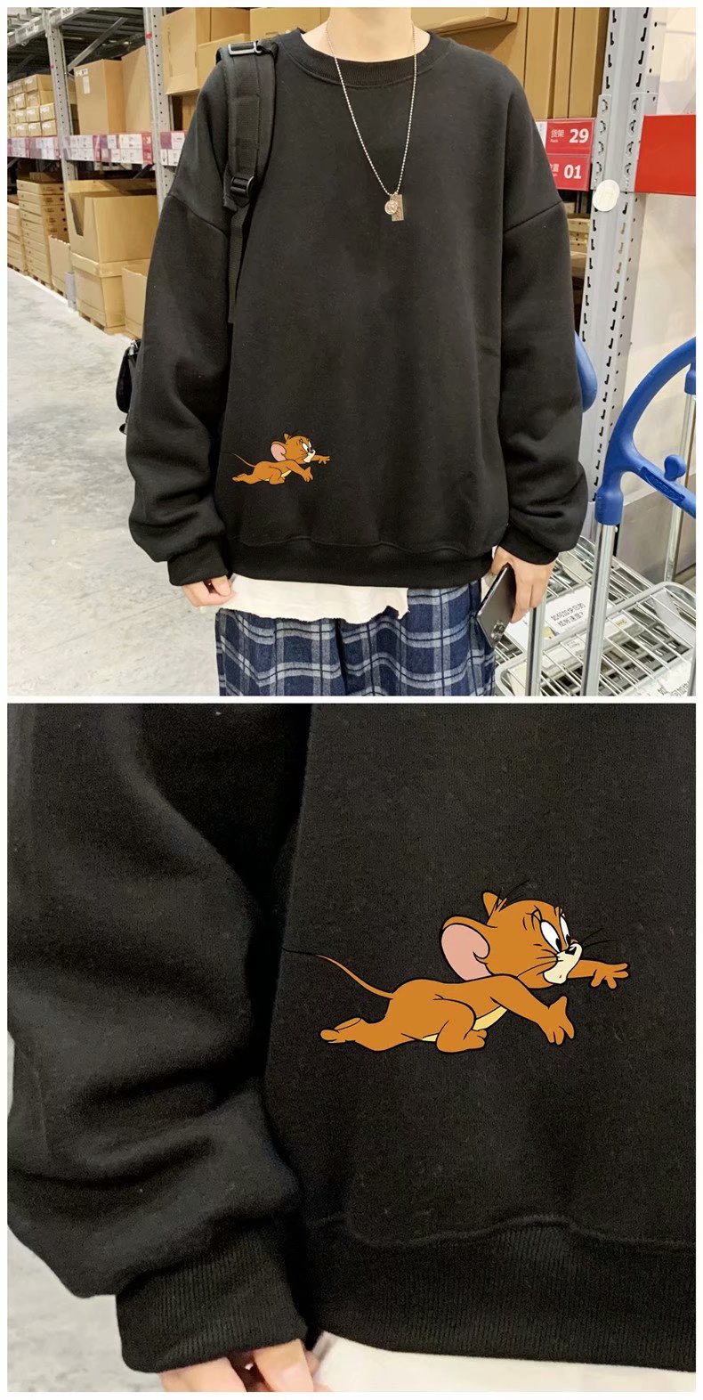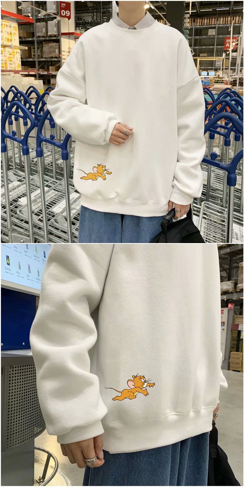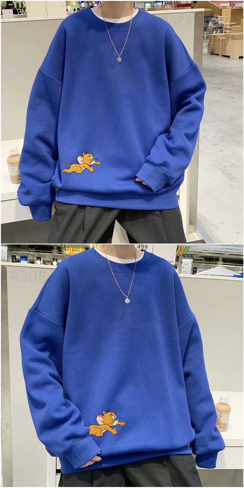 实拍 港风宽松街头纯色百搭圆领上衣男日系青年韩版休闲运动卫衣
