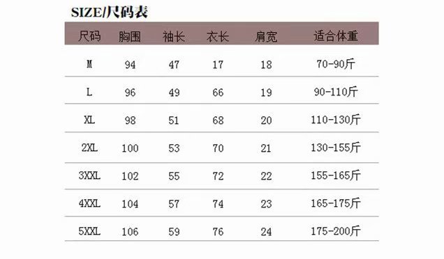 尺码:M L XL 2XL 3XL 4XL 5XL