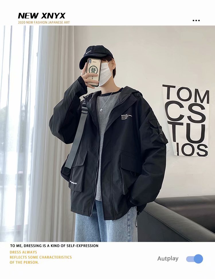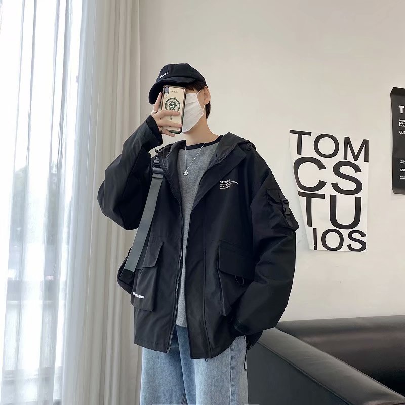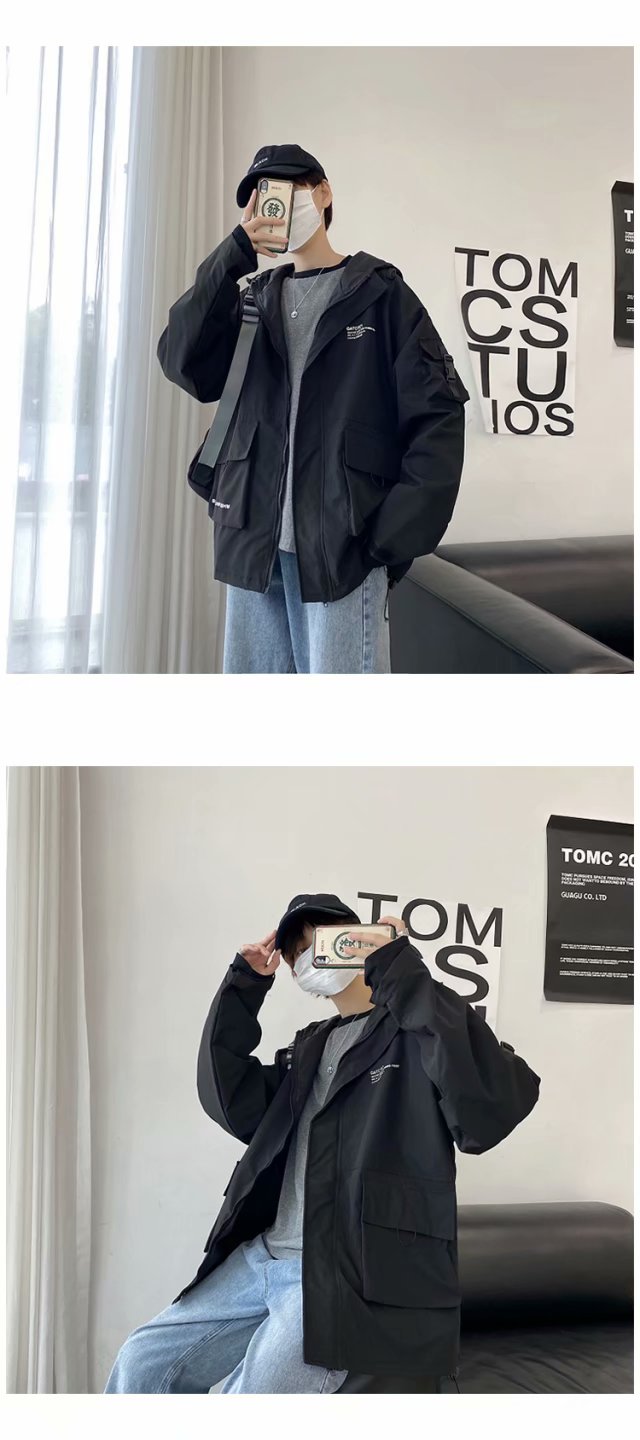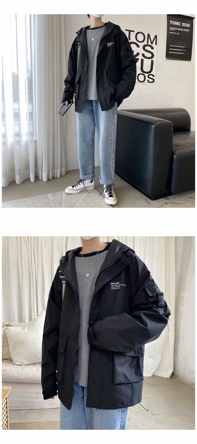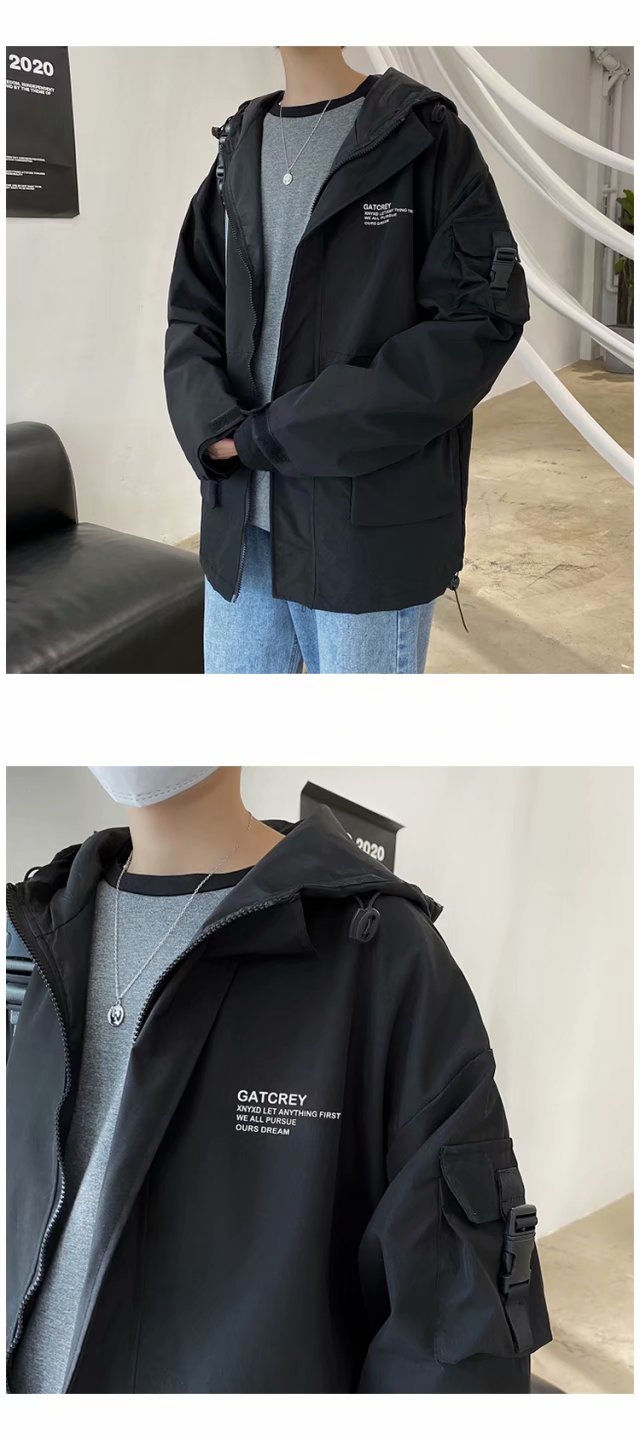 实拍 韩版男士工装外套潮流百搭夹克男港风街头休闲ins潮牌上衣