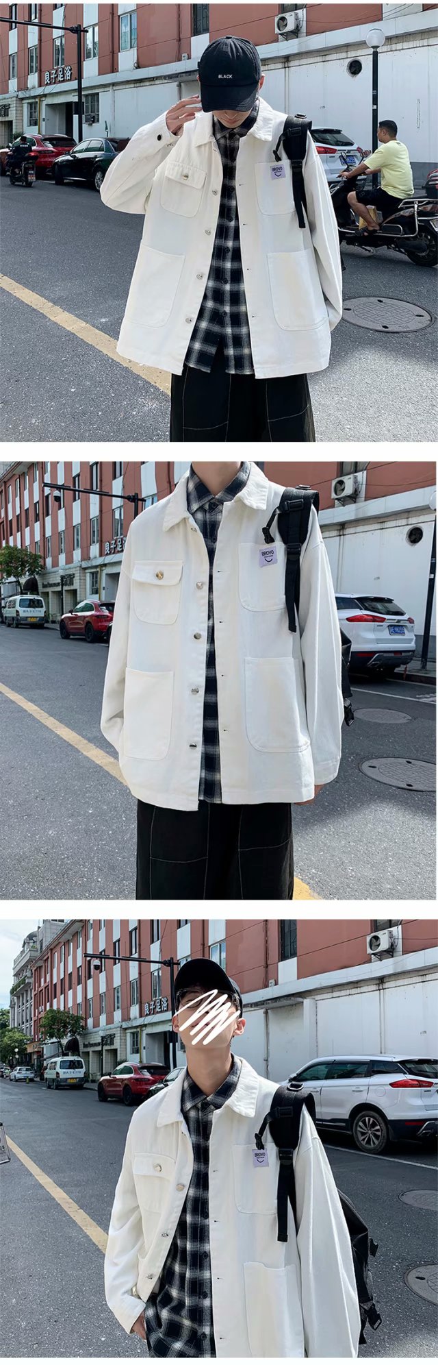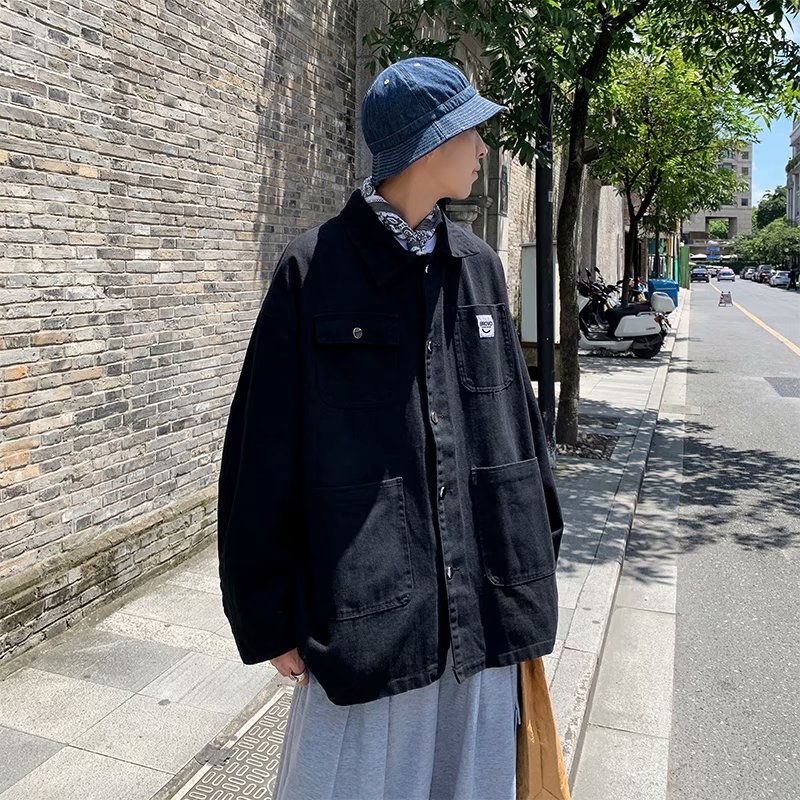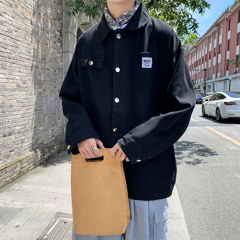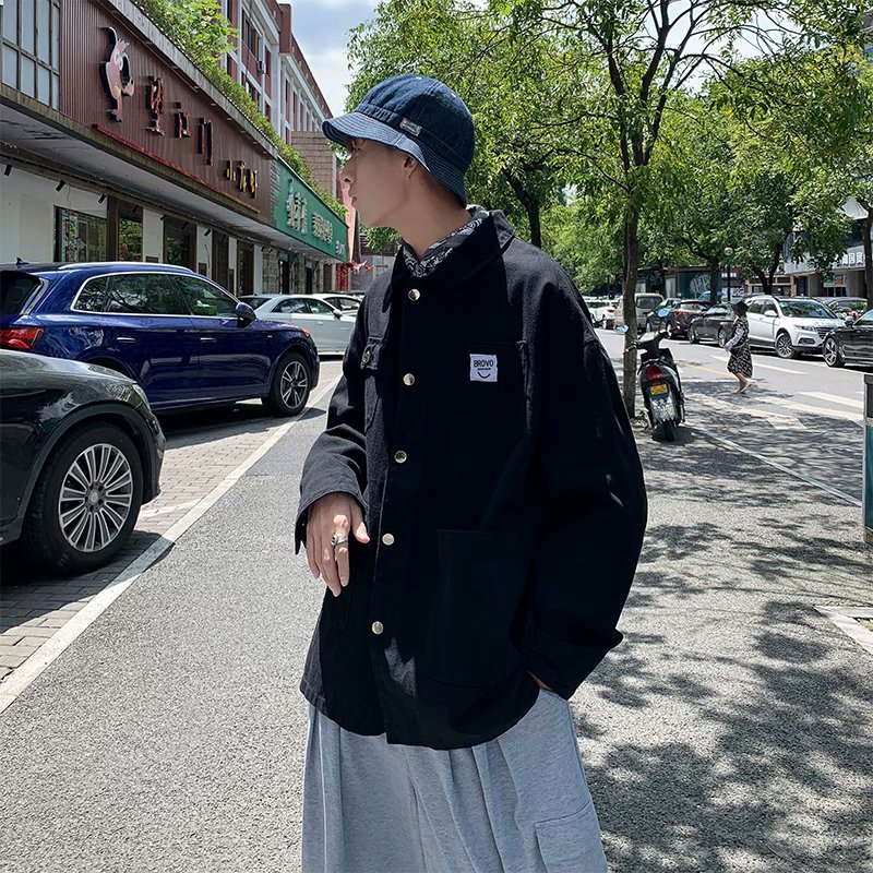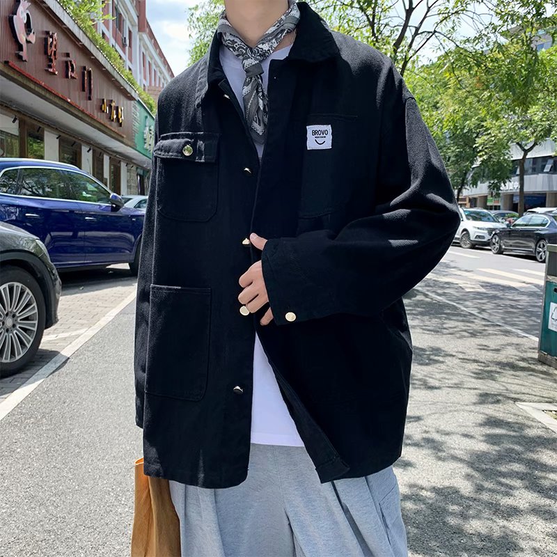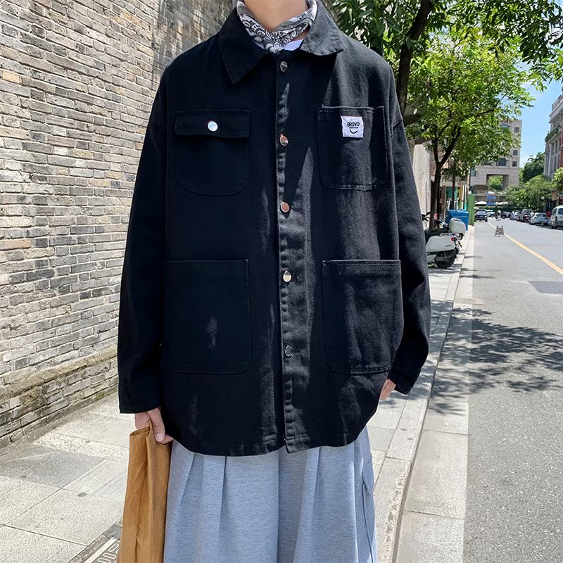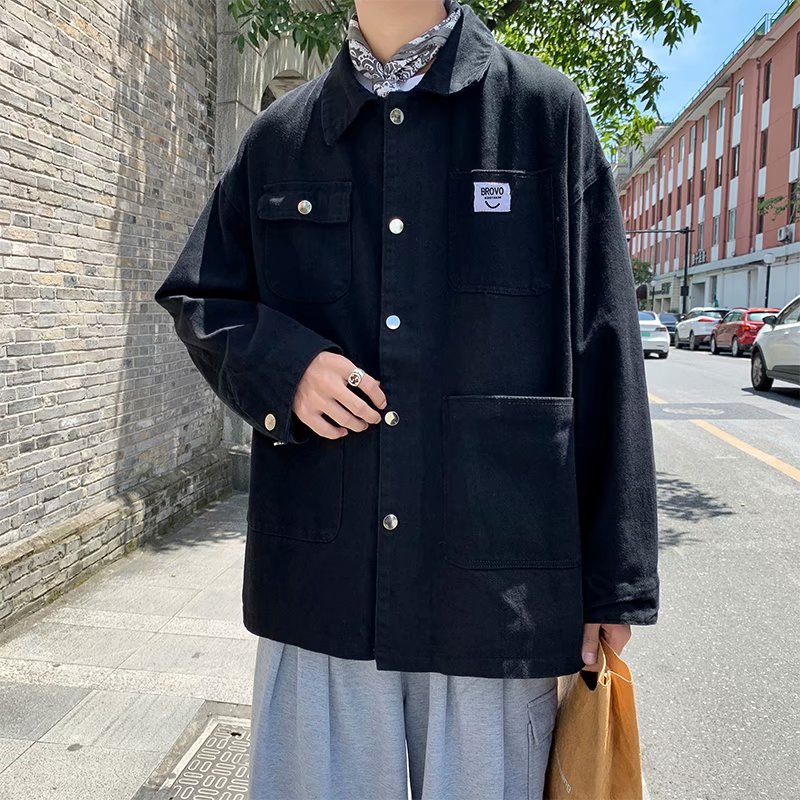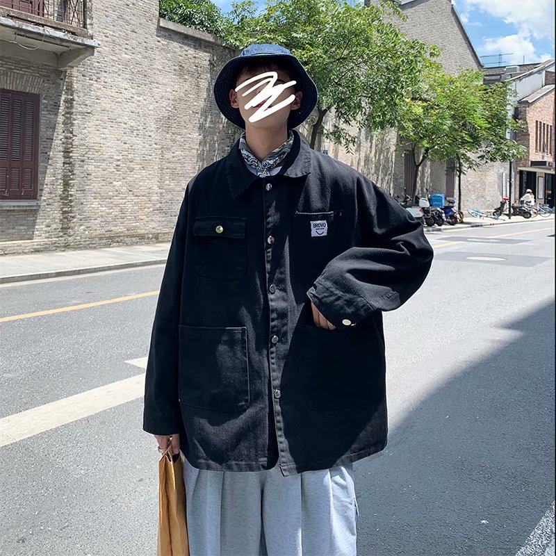 实拍 日系韩版简约宽松纯色百搭夹克上衣男港风休闲开衫潮流外套