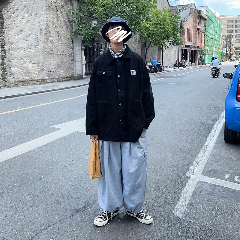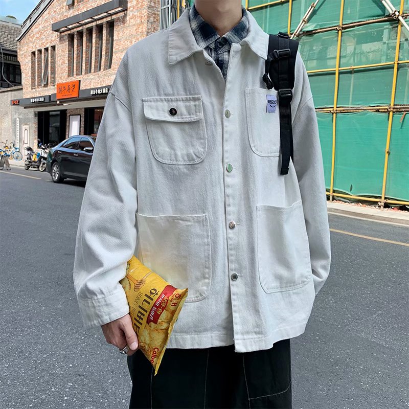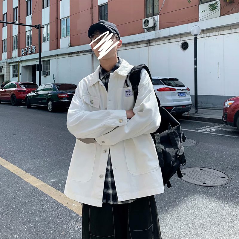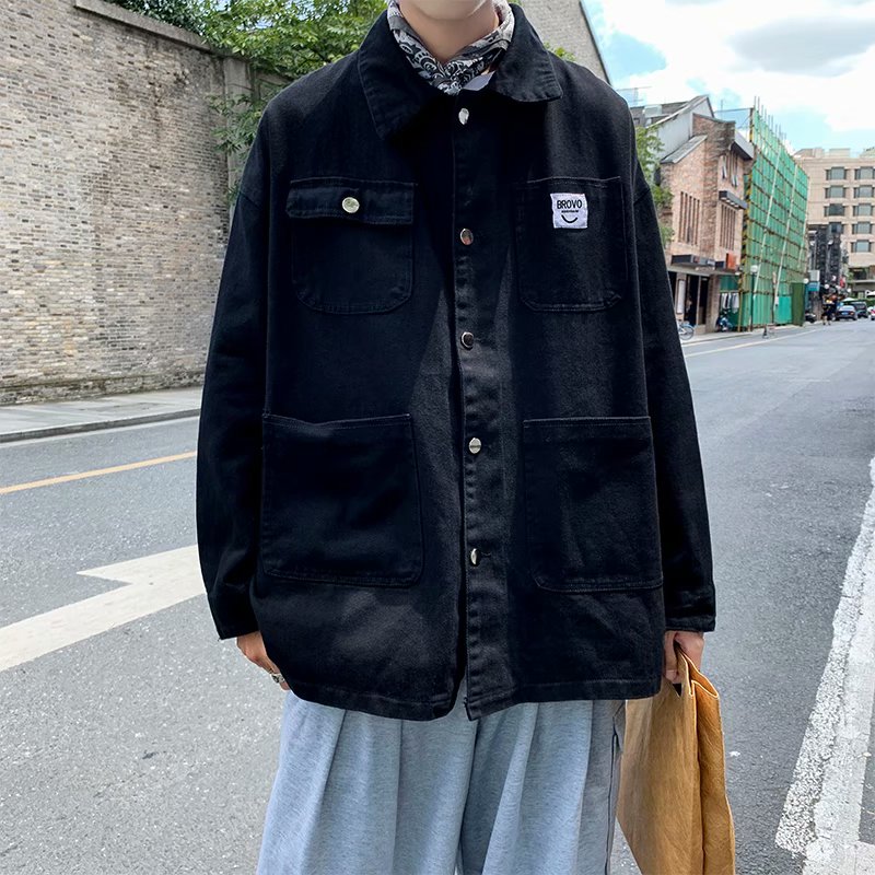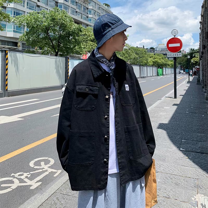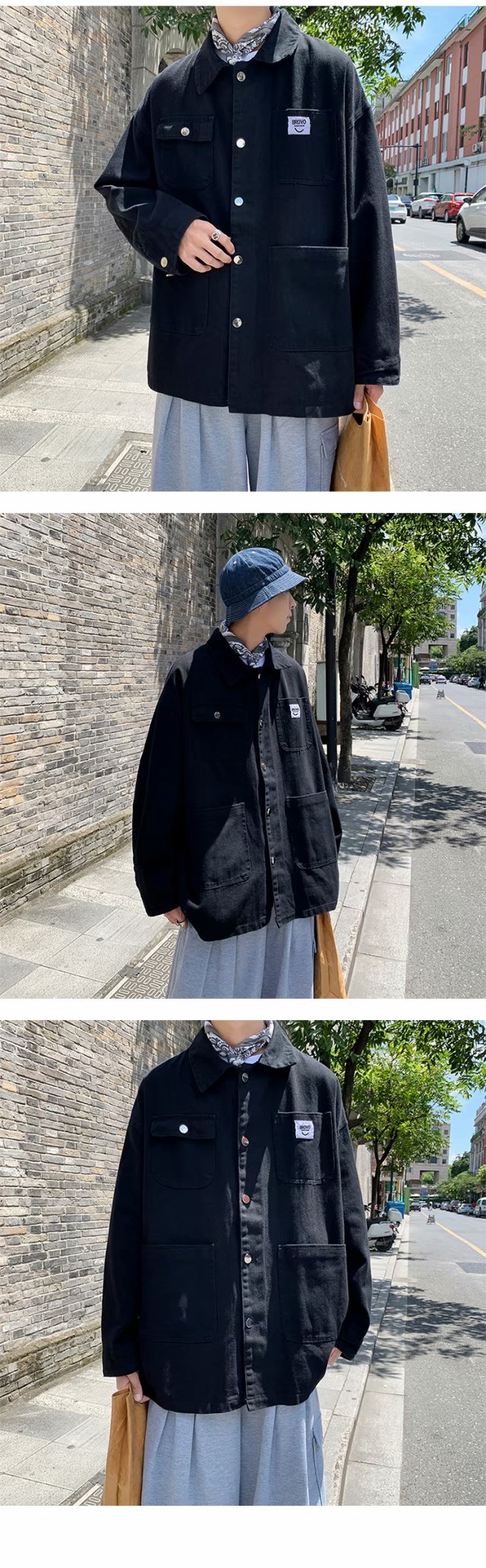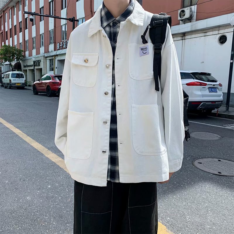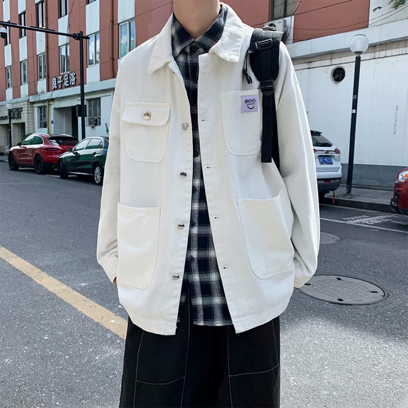 实拍 日系韩版简约宽松纯色百搭夹克上衣男港风休闲开衫潮流外套