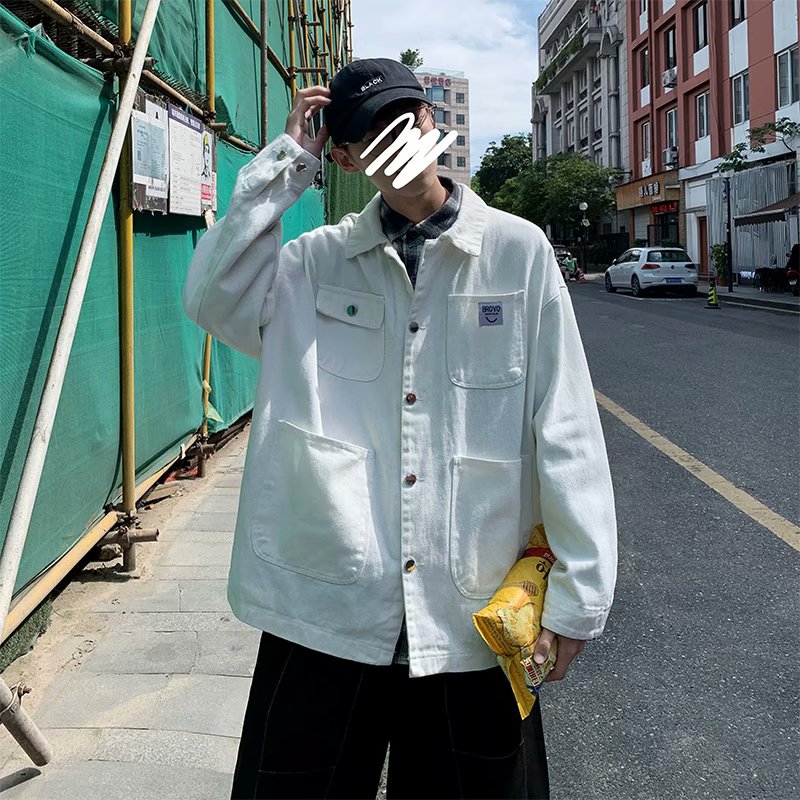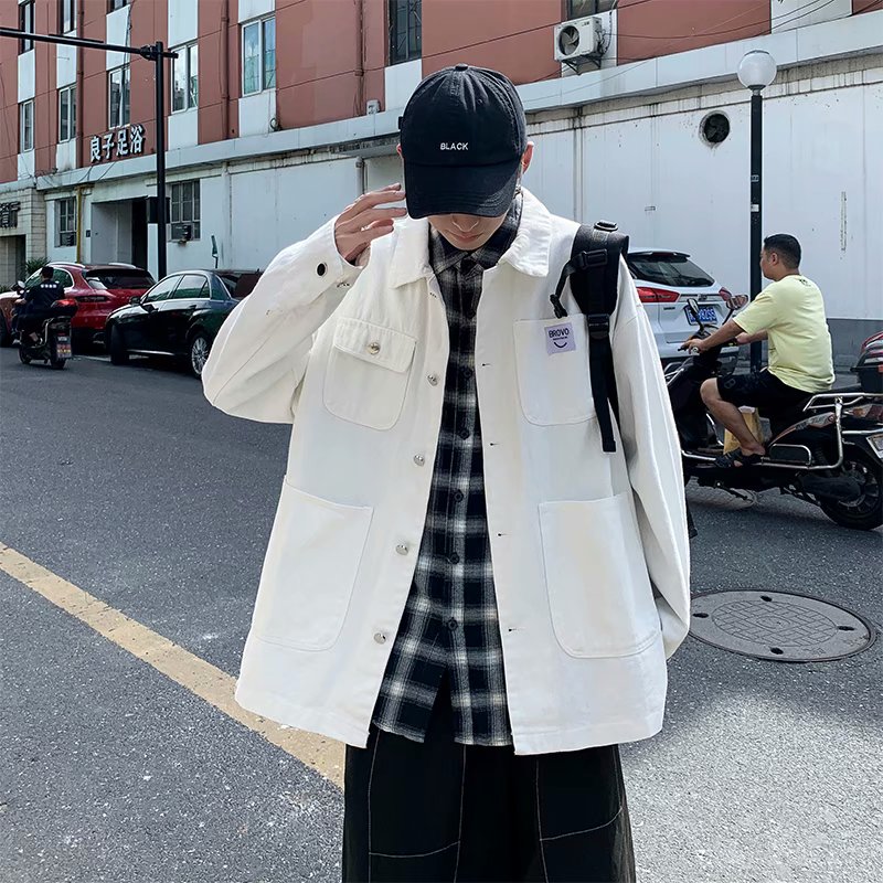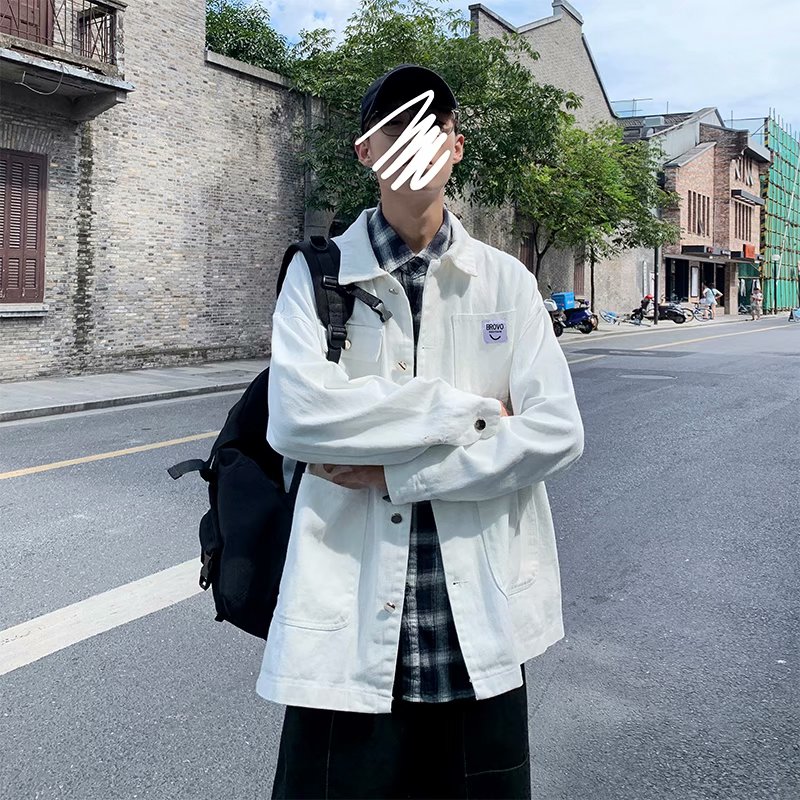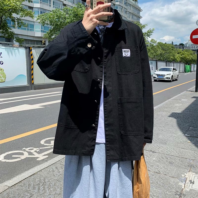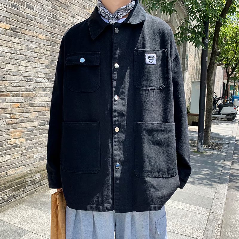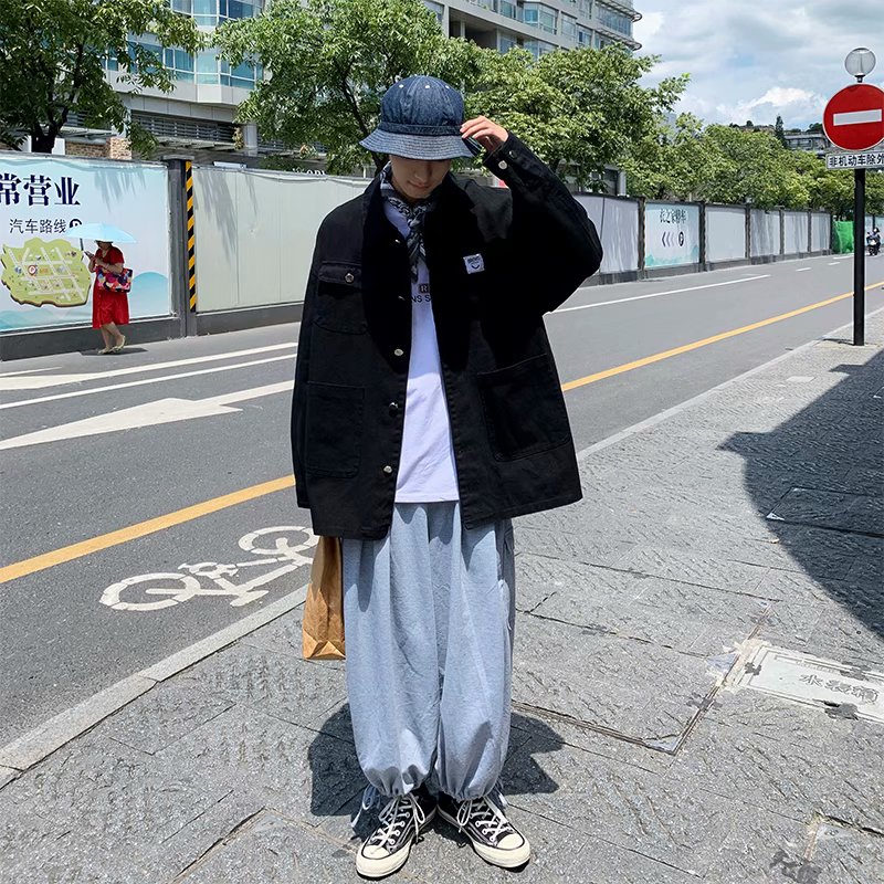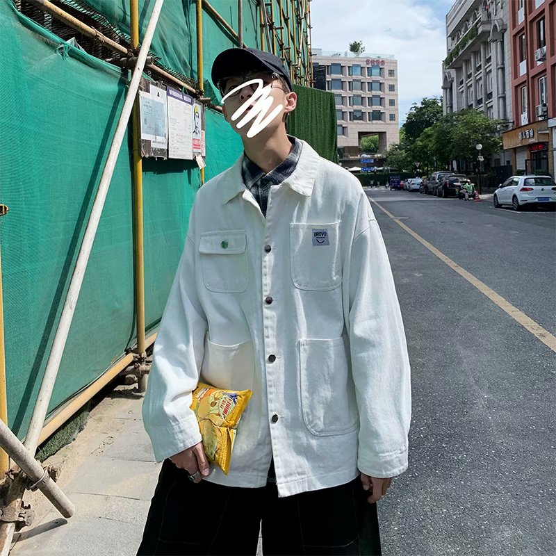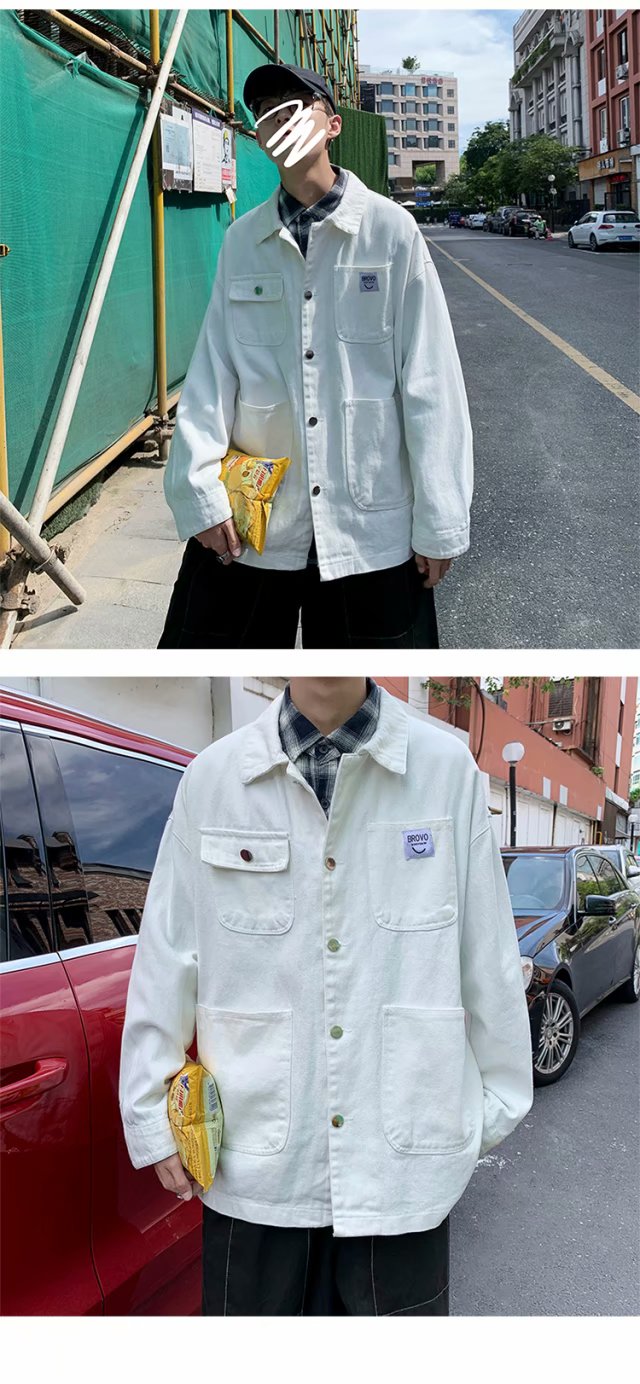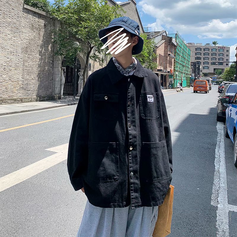 实拍 日系韩版简约宽松纯色百搭夹克上衣男港风休闲开衫潮流外套