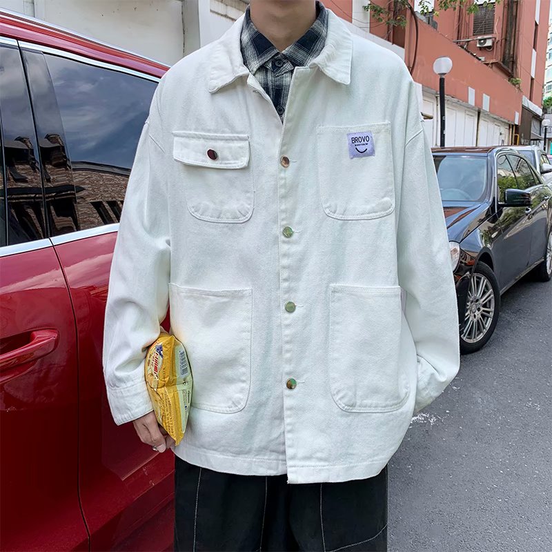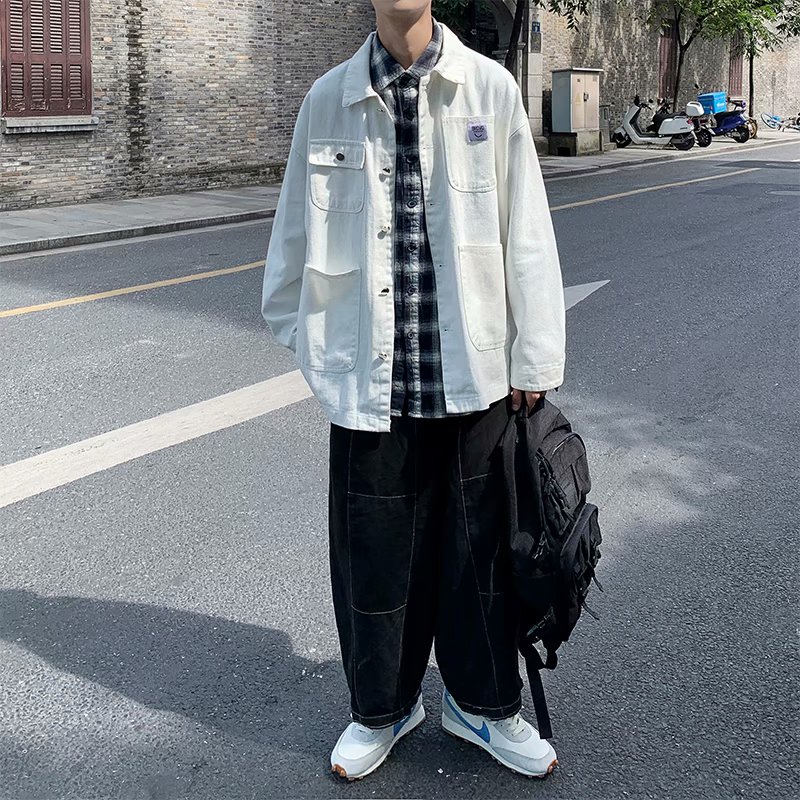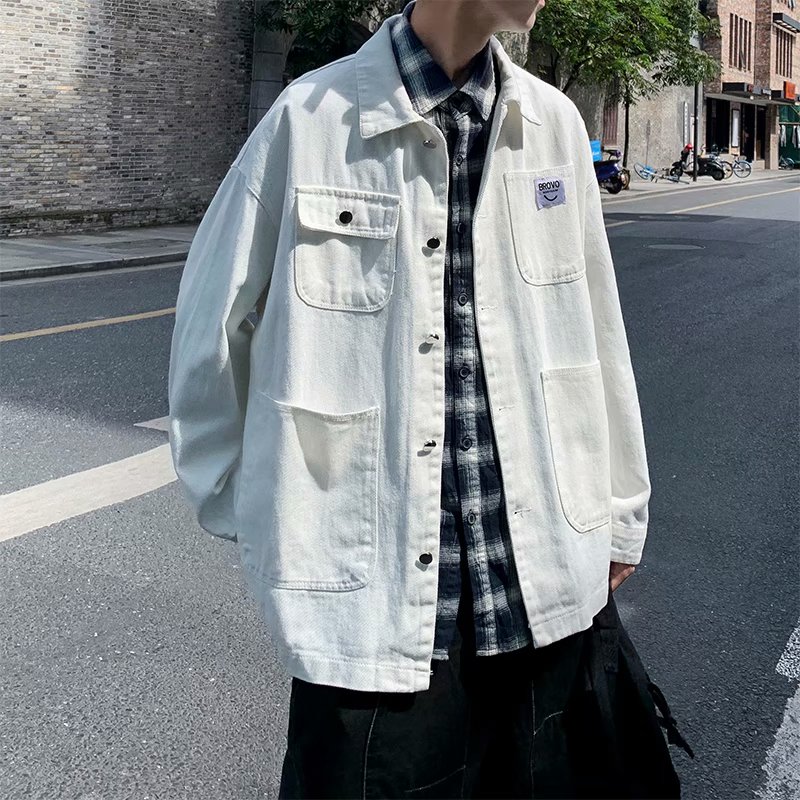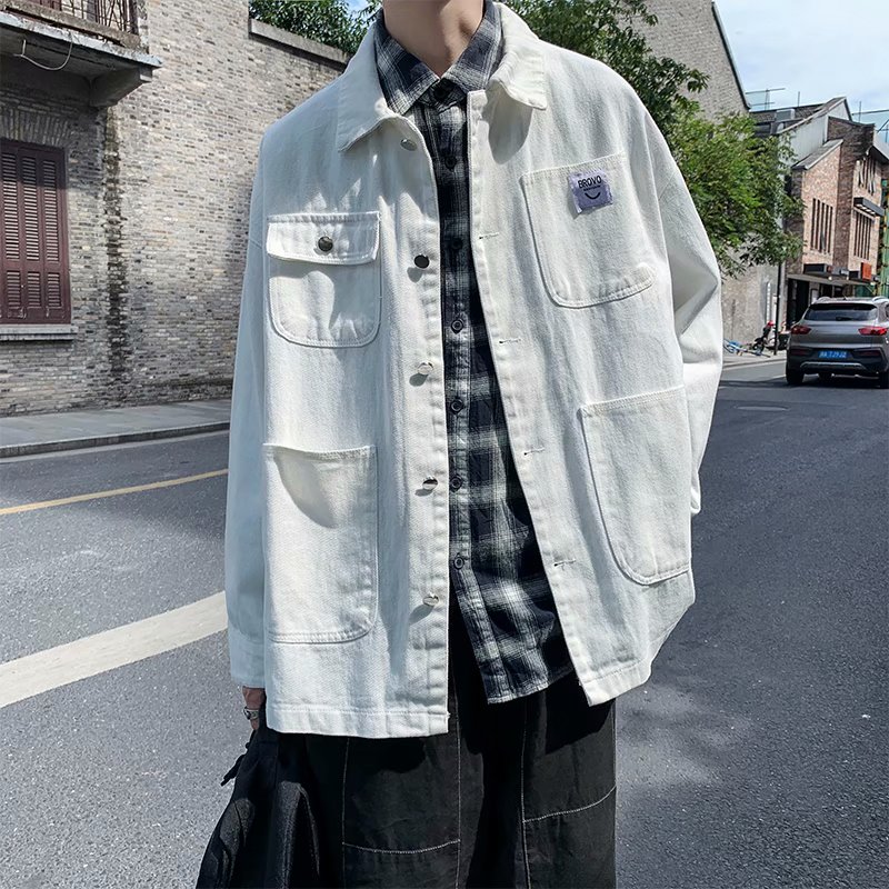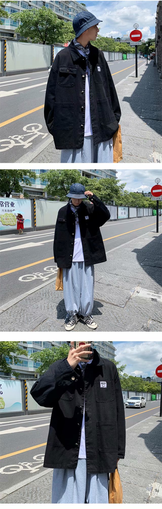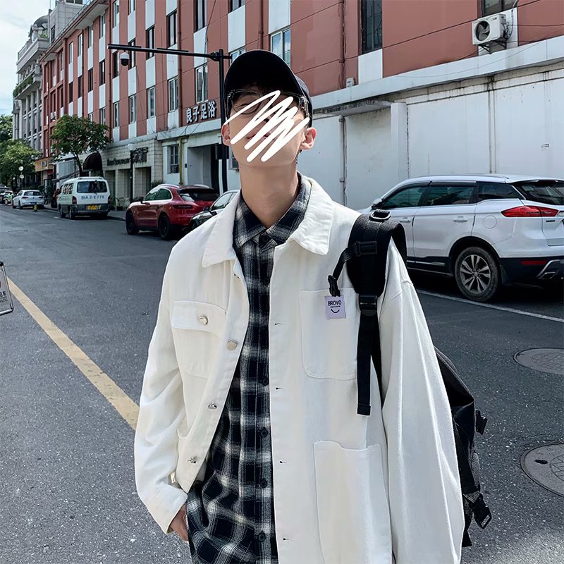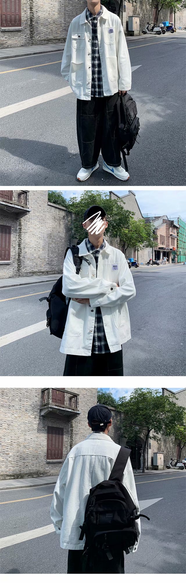 实拍 日系韩版简约宽松纯色百搭夹克上衣男港风休闲开衫潮流外套